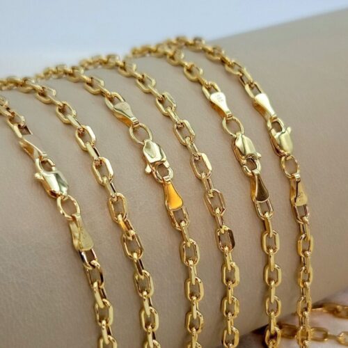 14K Solid Gold Cable Chain Necklace, Real 14K Gold Cable Link Diamond-cut Chain, 3.60MM Thick, Real 14K Gold Trending Chain for Men & Women!