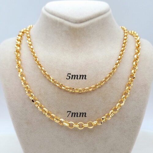 14K Solid Gold Rolo Chain Necklace, Real 14K Yellow Gold Rolo Chain For Men & Women, 4mm-7mm, 20″-27.5″ Rolo Links Chain, Gift for Him/Her!
