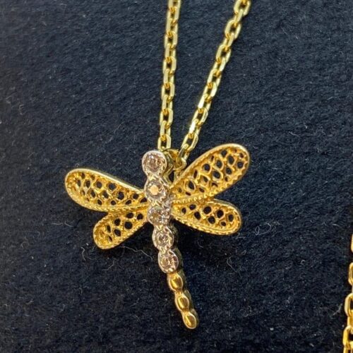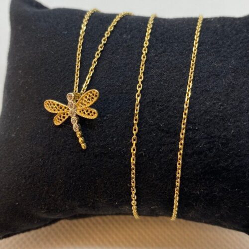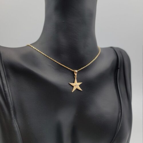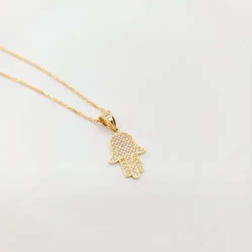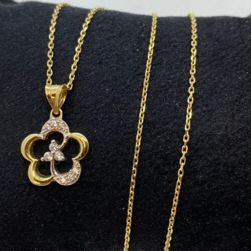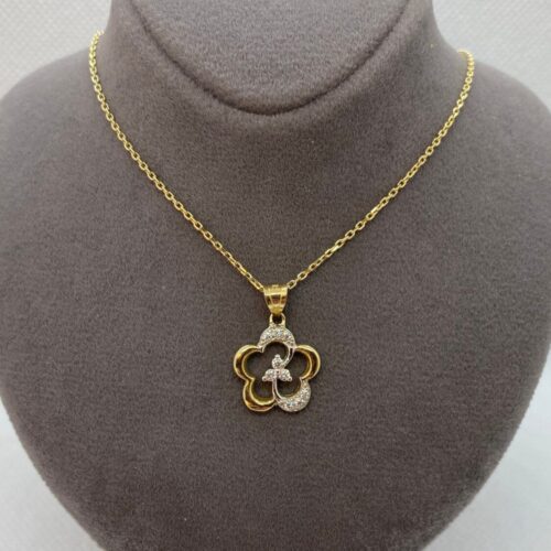 14k Solid Gold Flower Necklace with cubic zirconia 20 inches