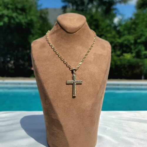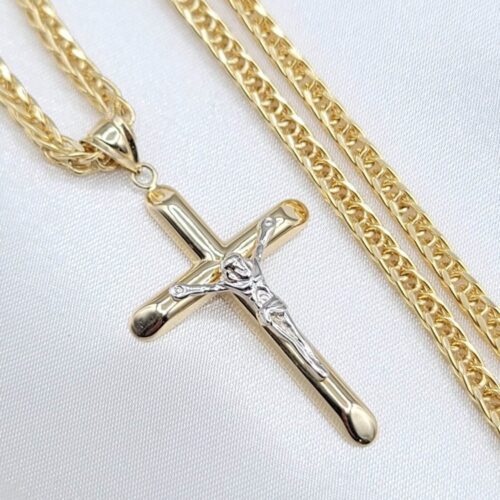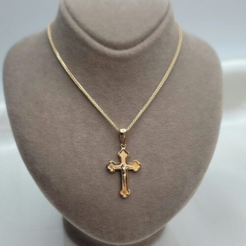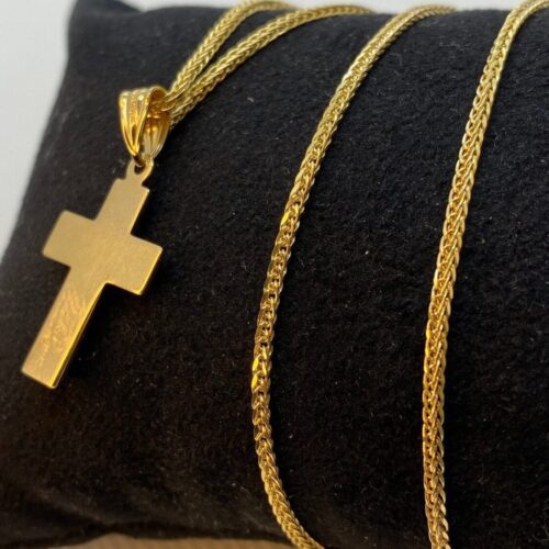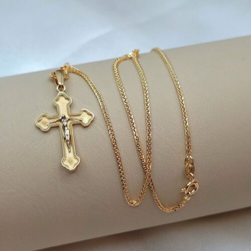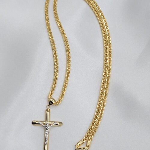 14k solid Gold Cross Necklace, Franco chain,21.5 inches,1.5mm
