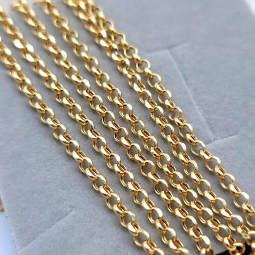 18KT Solid Gold Rolo Chain Necklace, Real 18-Karat Rolo Link Chain, 3.30mm_18″- 22″ Gold Chain for Men & Woman, Birthday Gift for Her/Him!
