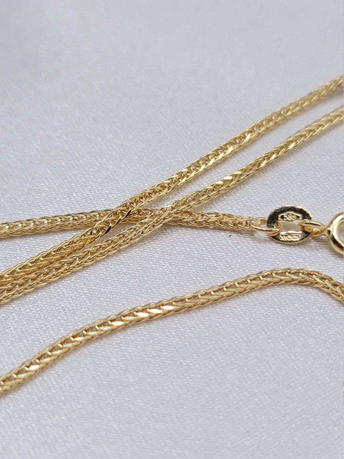 14K gold will be marked with a number such as 585, or 14K stamp denoting that the jewelry contains 58.5% gold (or 585 parts per thousand).