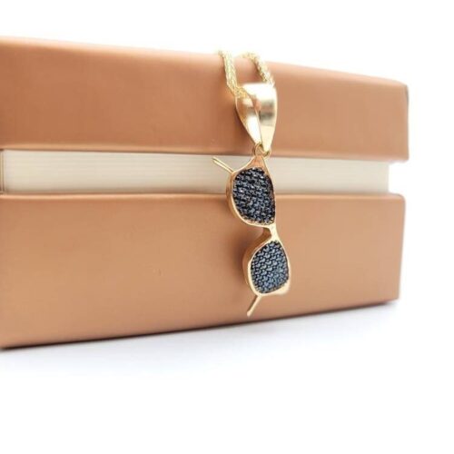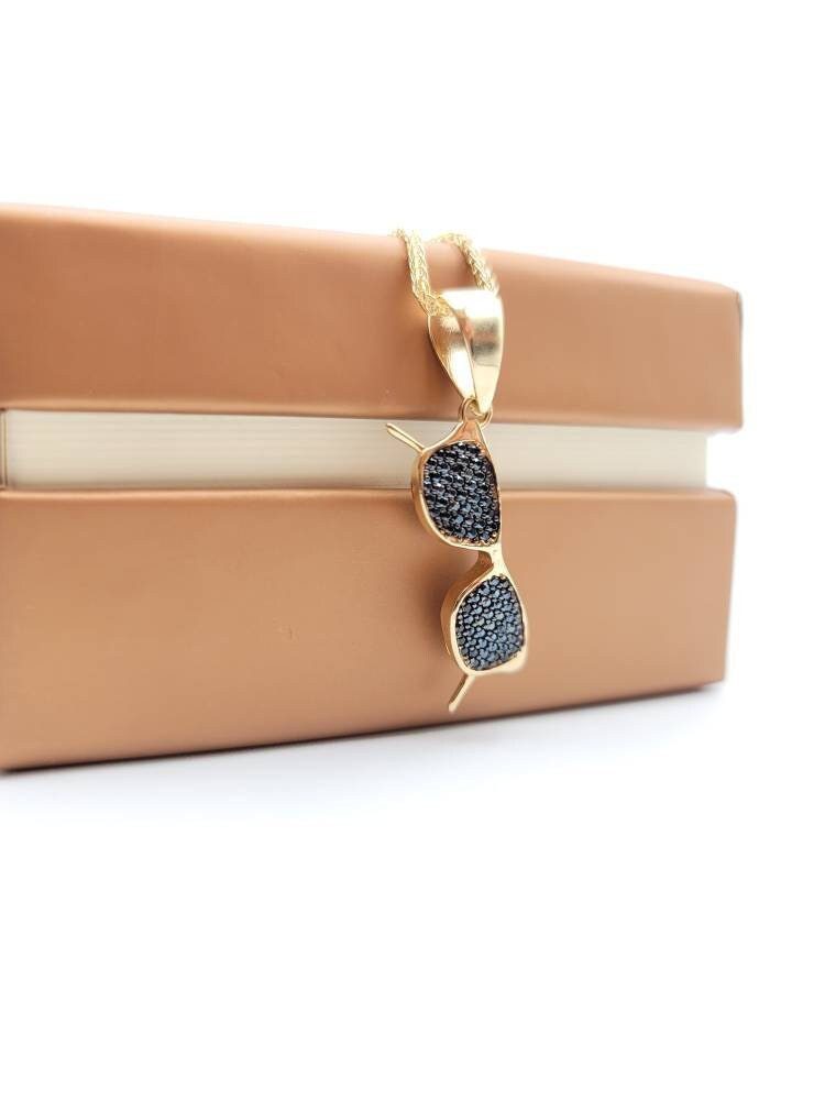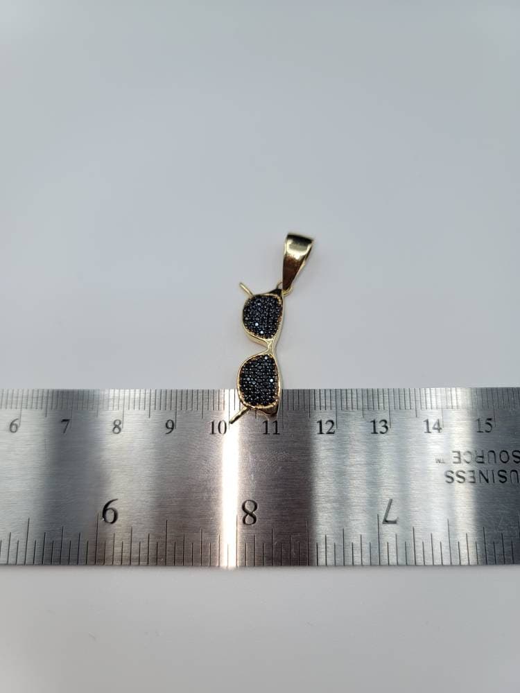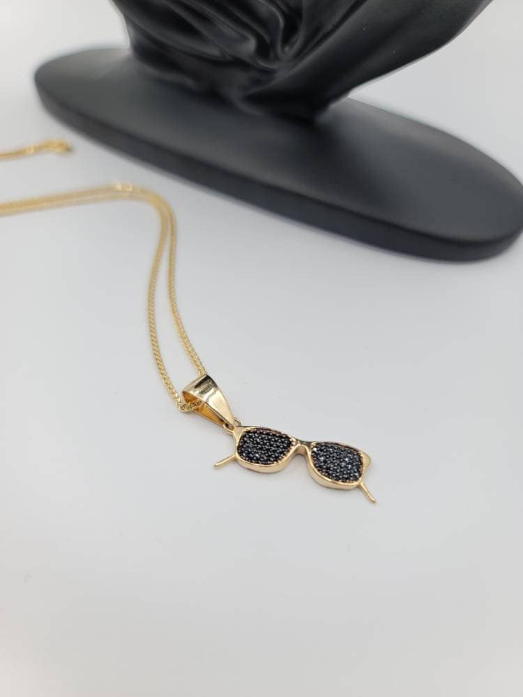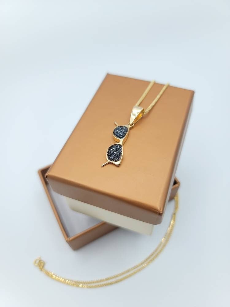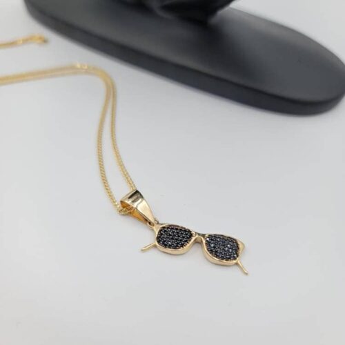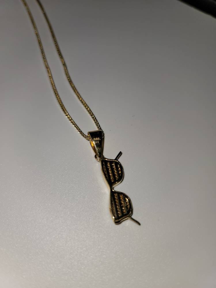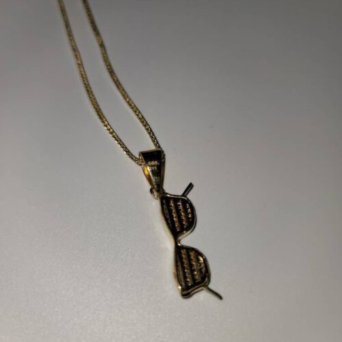 14K Solid Gold Foxtail Chain With This Stylish Sunglasses Pendant