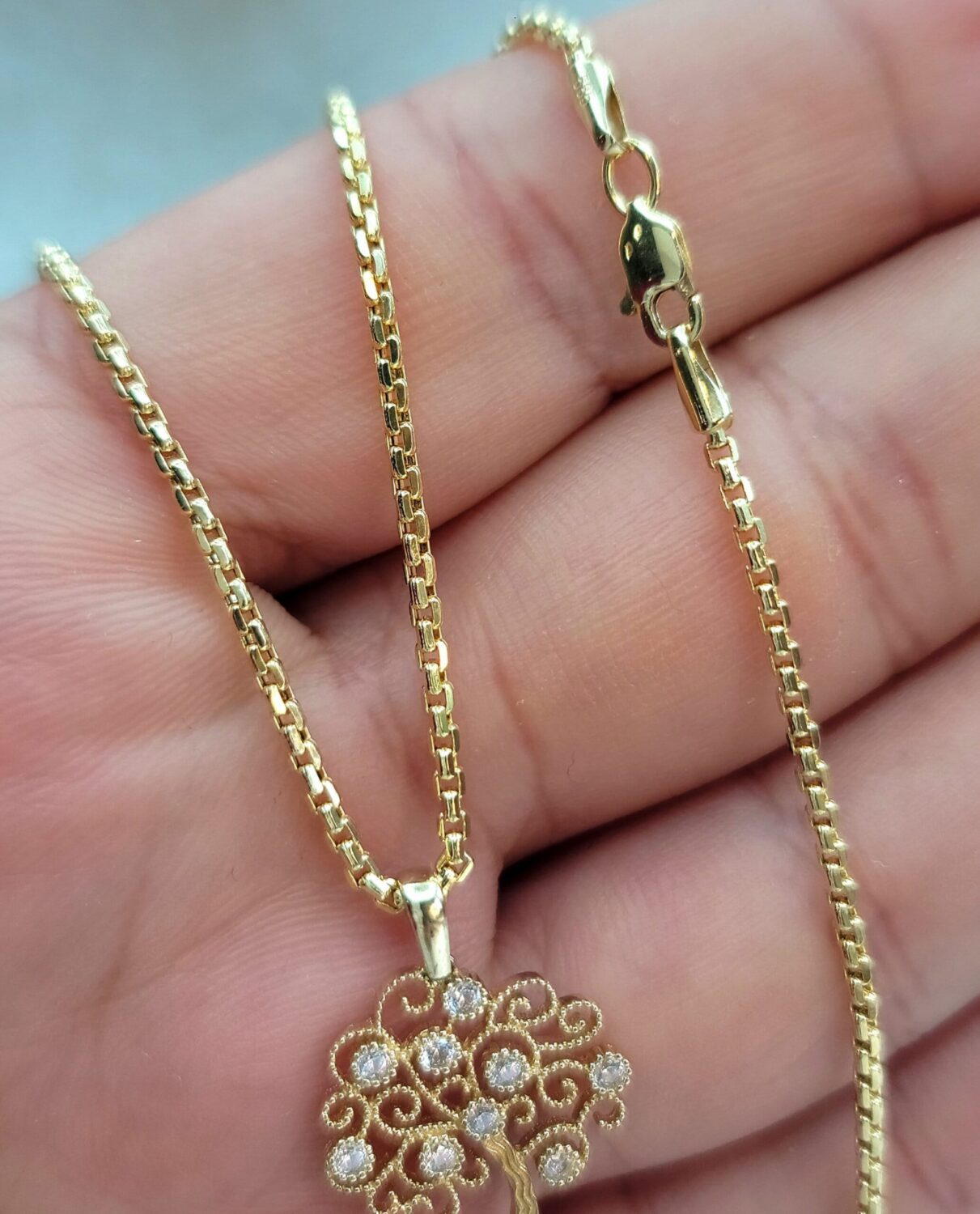 14K Real Gold Tree Of Life Pendant Necklace, 14K Solid Gold Box Chain, Real 14K Handmade Diamond-cut Tree of Life Necklace 21.5″, For Her!