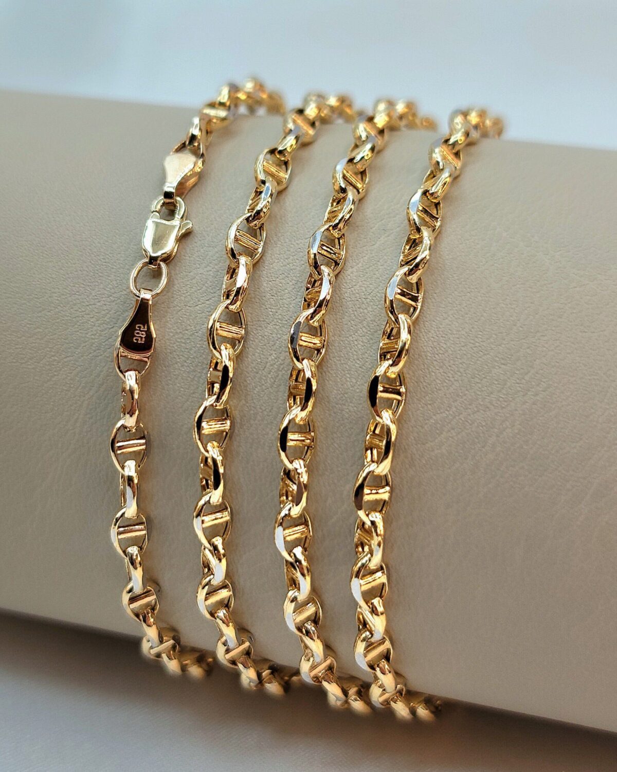 Chain style: Anchor chain – Diamond-cut – 14K Gold