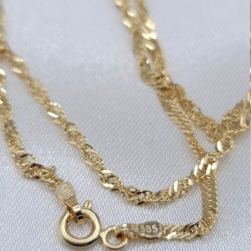 * 14K gold will be marked with a number such as 585, or 14K stamp denoting that the jewelry contains 58.5% gold (or 585 parts per thousand).