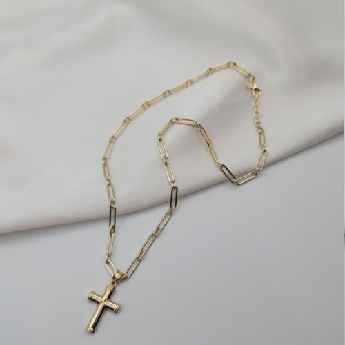 This design sparkles with a diamond-cut double sided pendant centred along an 18.5-inch (including jump rings) Paperclip chain that secures with a Lobster claw clasp.