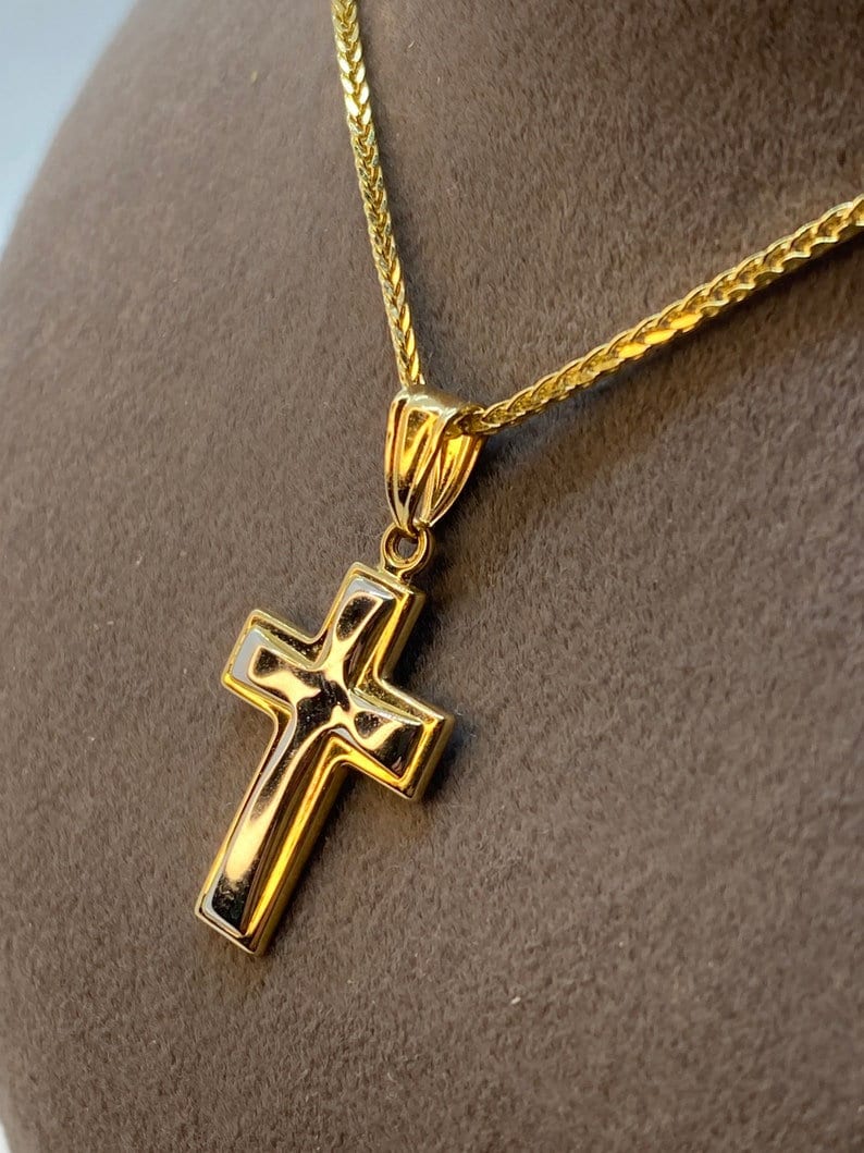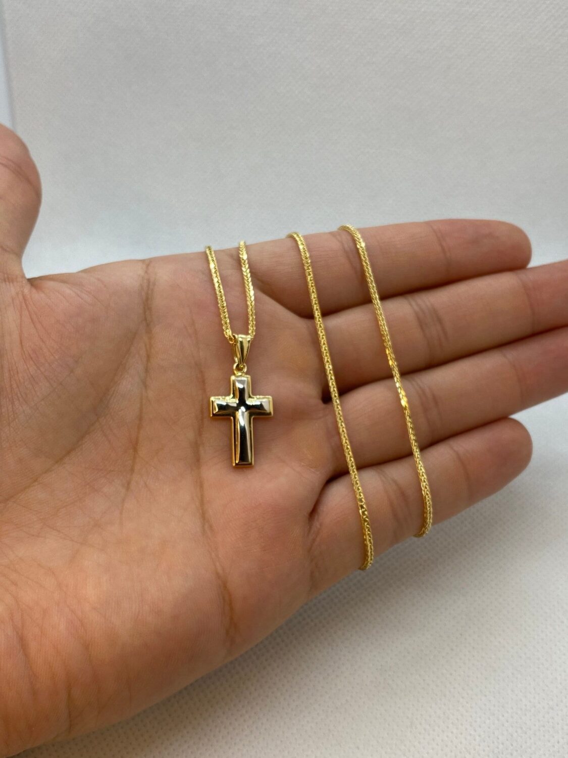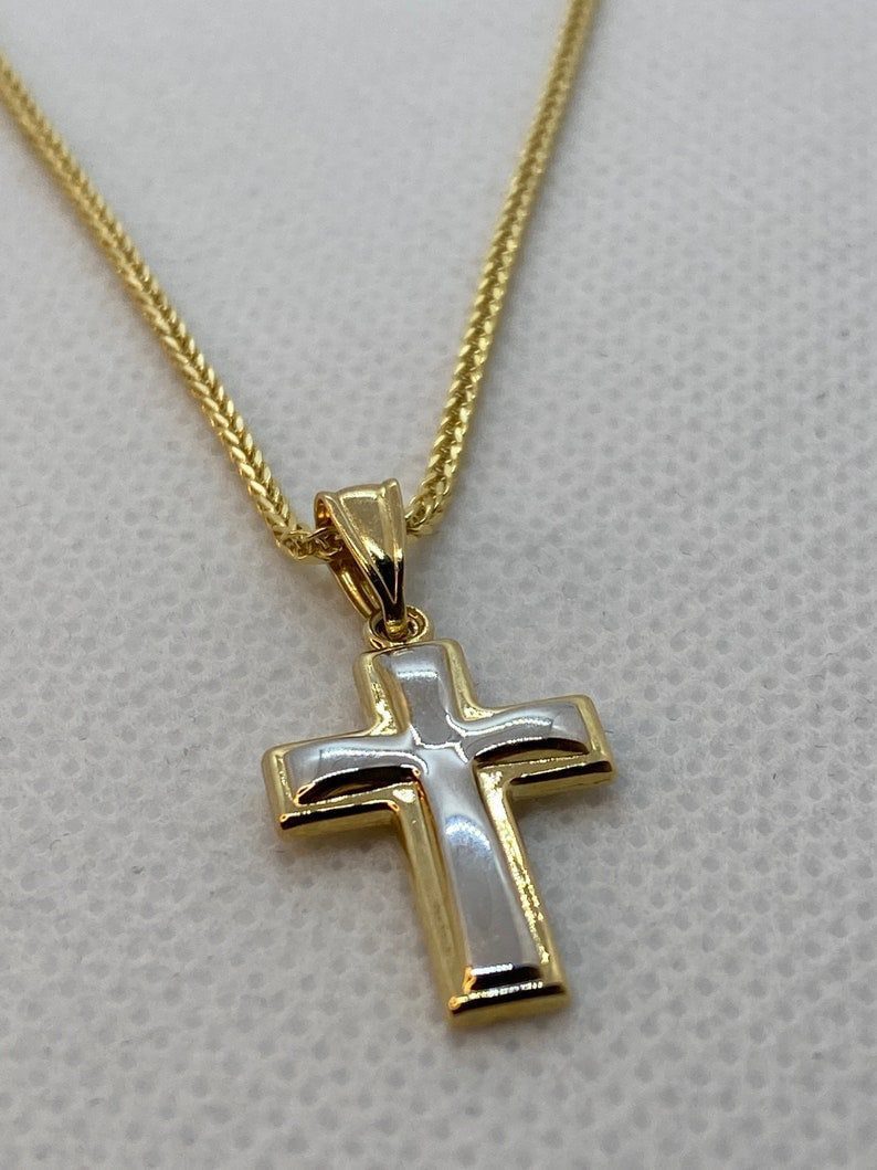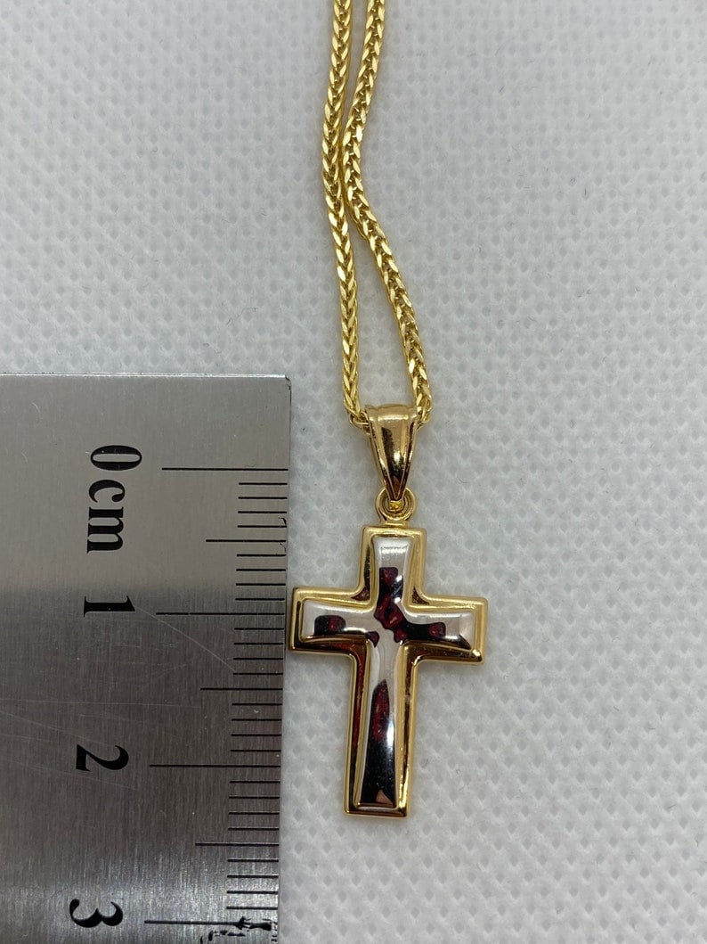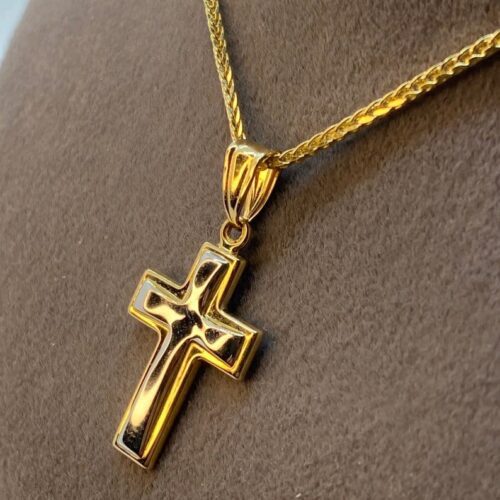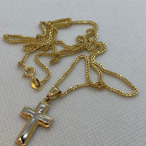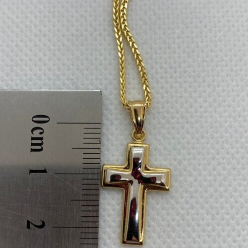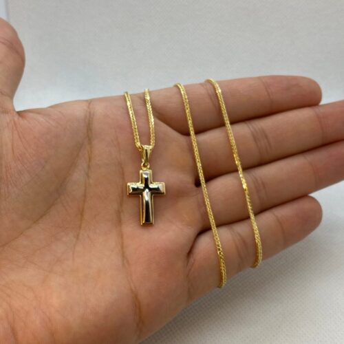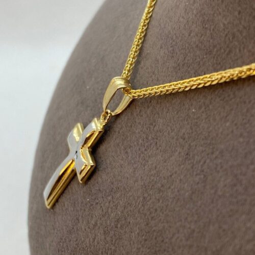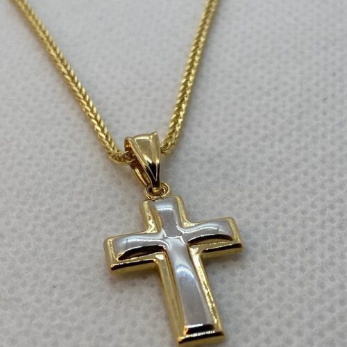 14kGold Cross Necklace with Franco chain 21.5 inches , 1.5 mm , 3.41gr