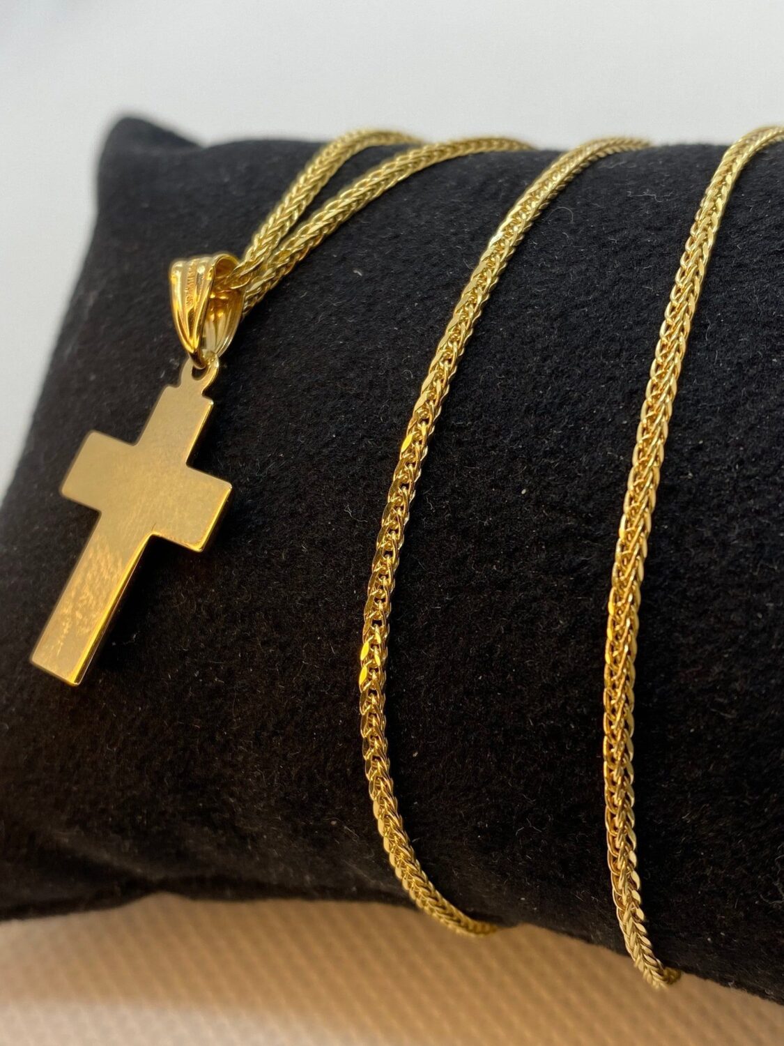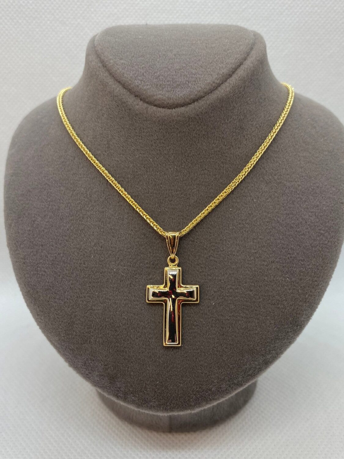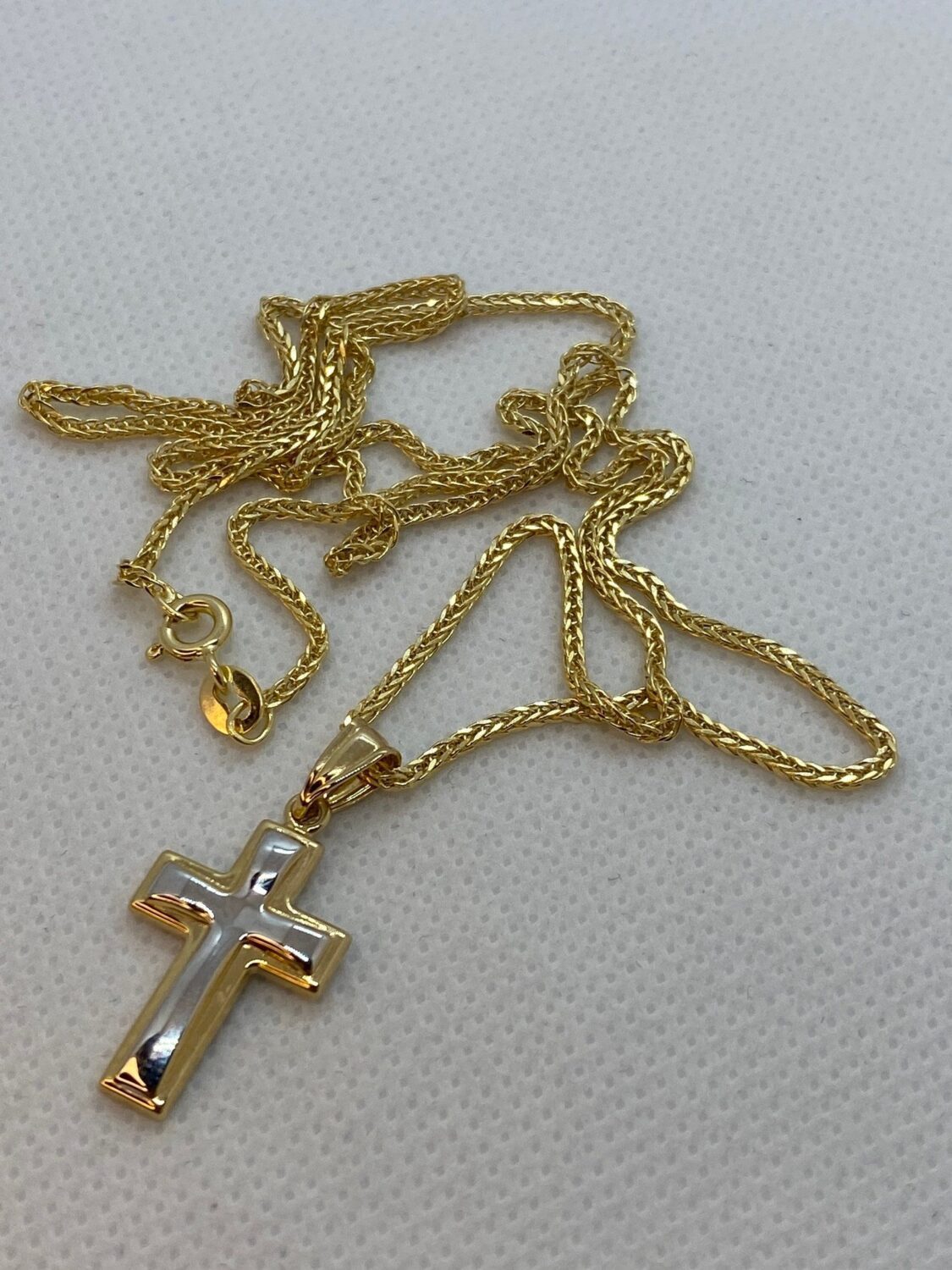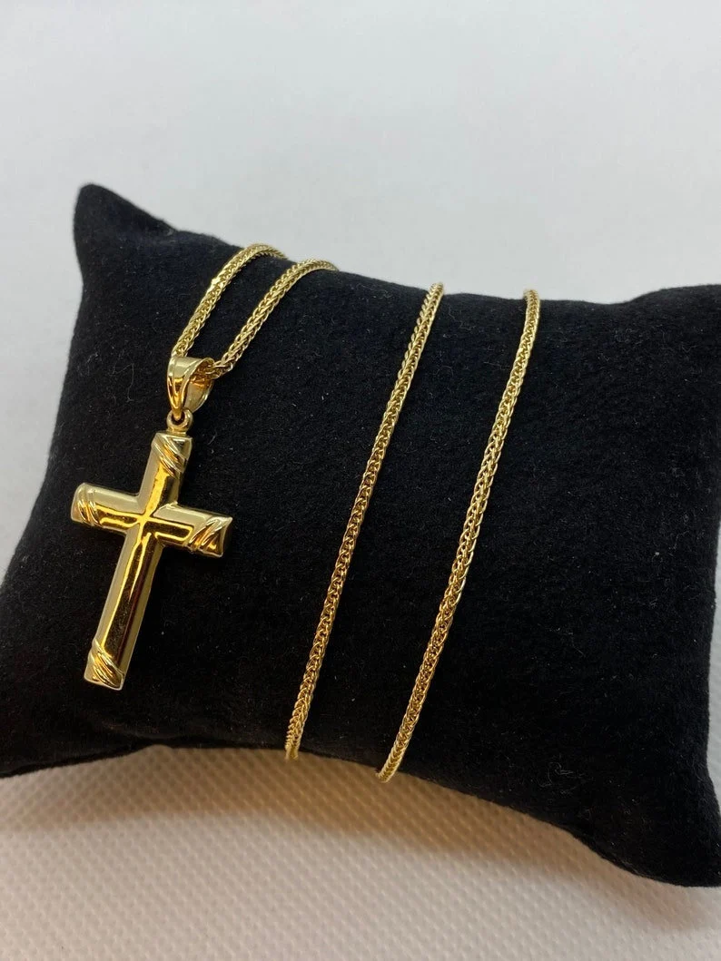 14kGold Cross Necklace with Franco chain 21.5 inches , 1.5 mm , 3.41gr