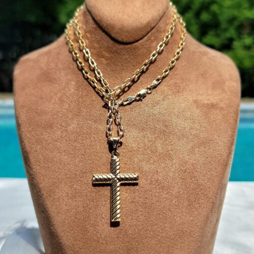 Be the first to review “14K Solid Gold Cross Pendant Necklace, 14K Real Gold Twisted Jesus Cross Pendant, 14K Gold Cable Chain, 4mm-26″ Cross Necklace for Him,Her!”