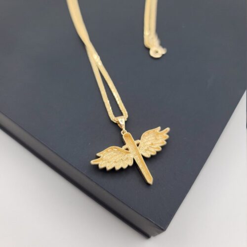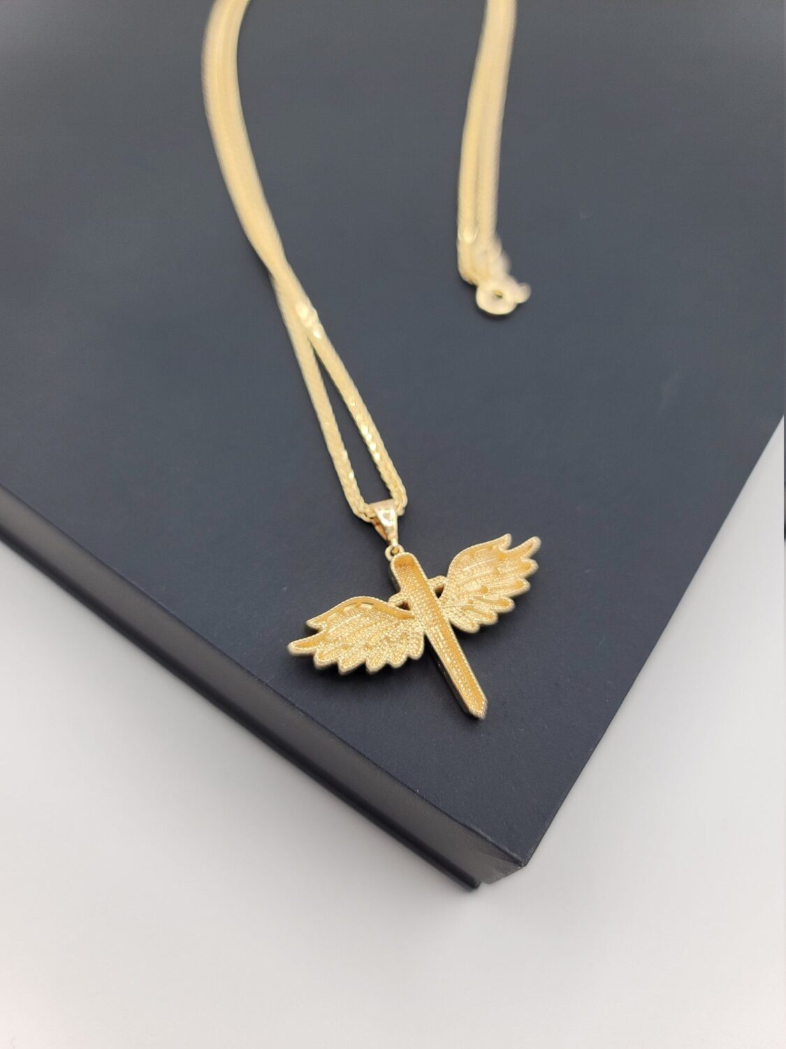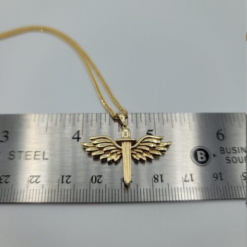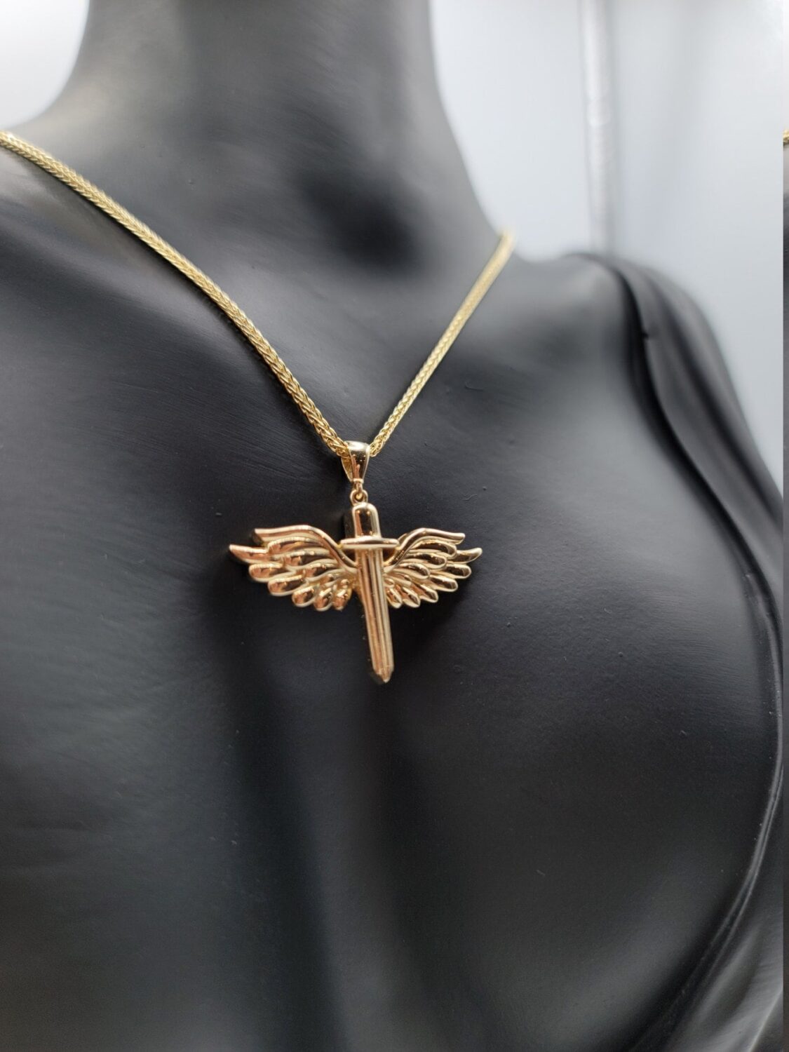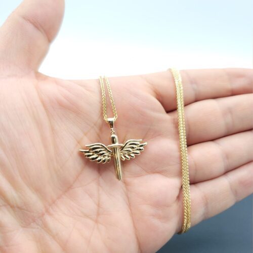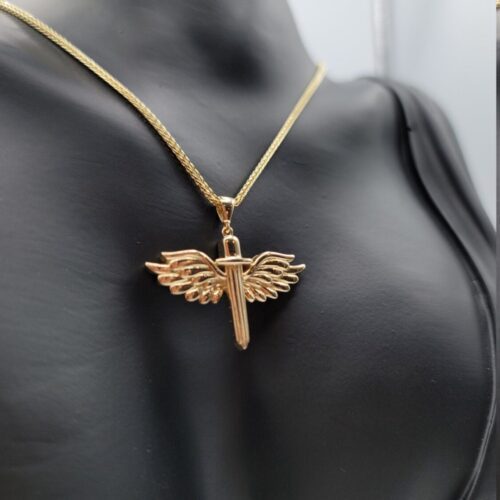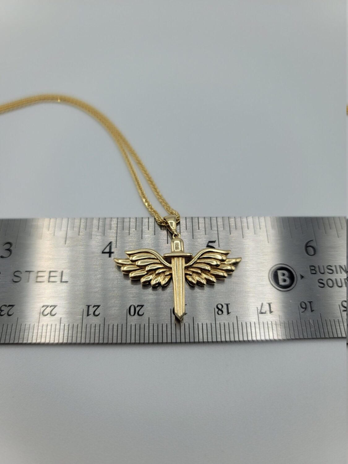14K Solid Gold Foxtail Chain With Stylish Winged Sword Pendant. This Pendant Symbolizes For Strength, Courage and Valor. This Necklace is a Perfect Gift For The Hero in Your Life.