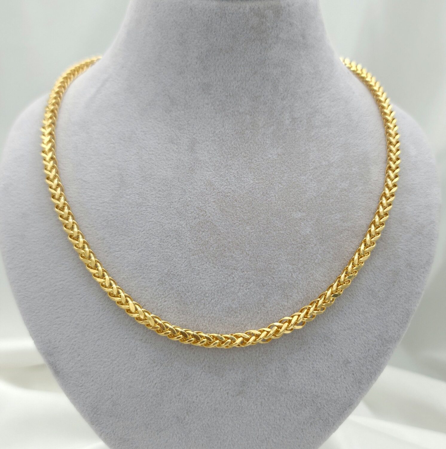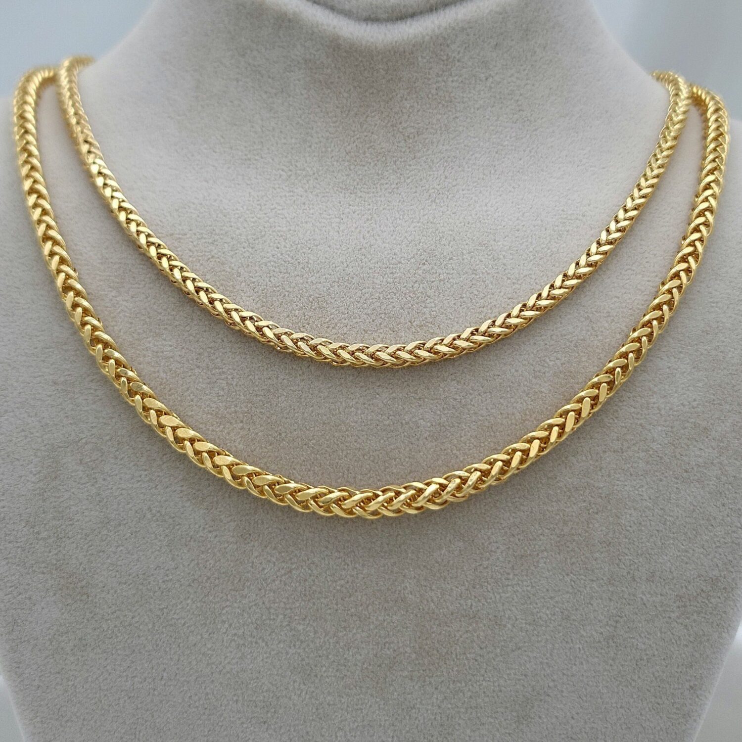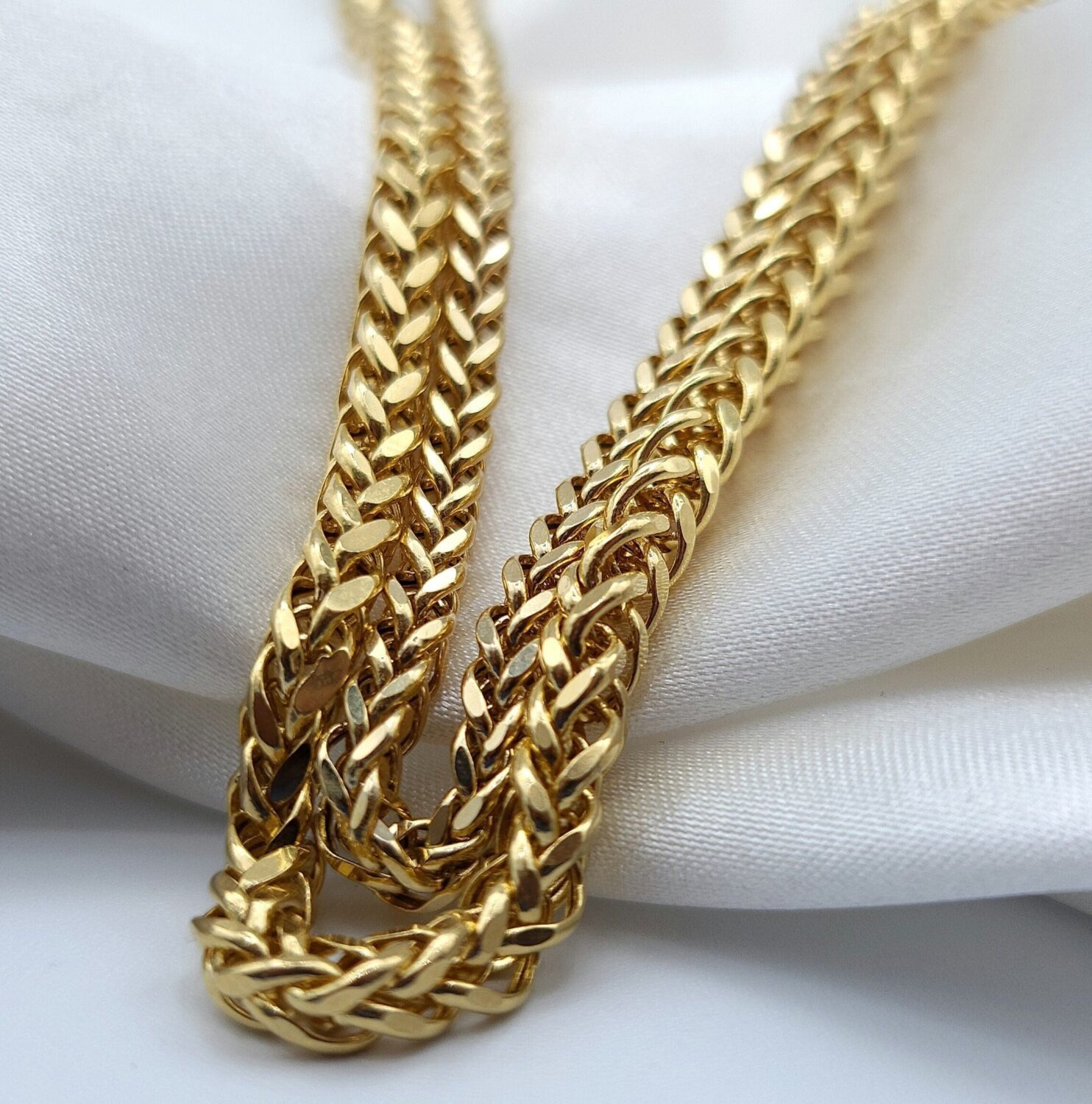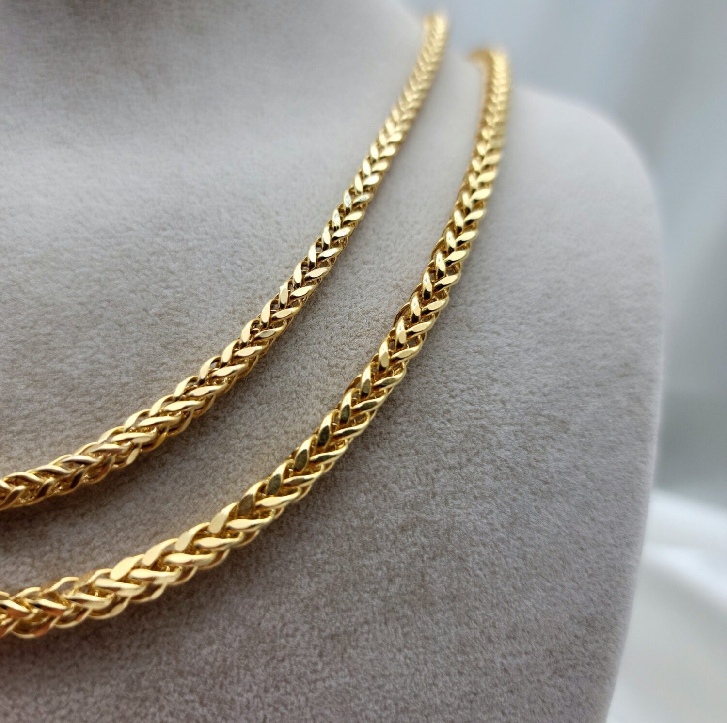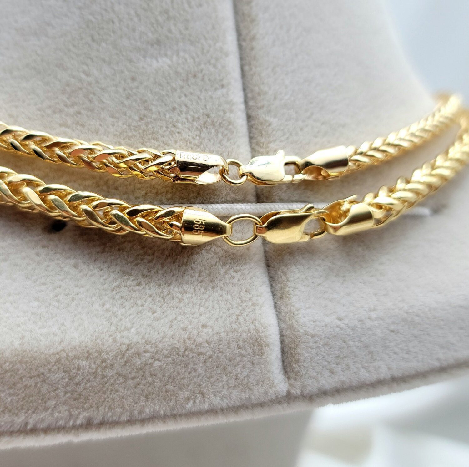 14K Solid Gold Franco Chain Necklace, Real 14K Gold Foxtail Wheat Chain, 4-4.5mm _ 20″-27.5″ Solid Gold Chain for Men/Women, Birthday Gift!