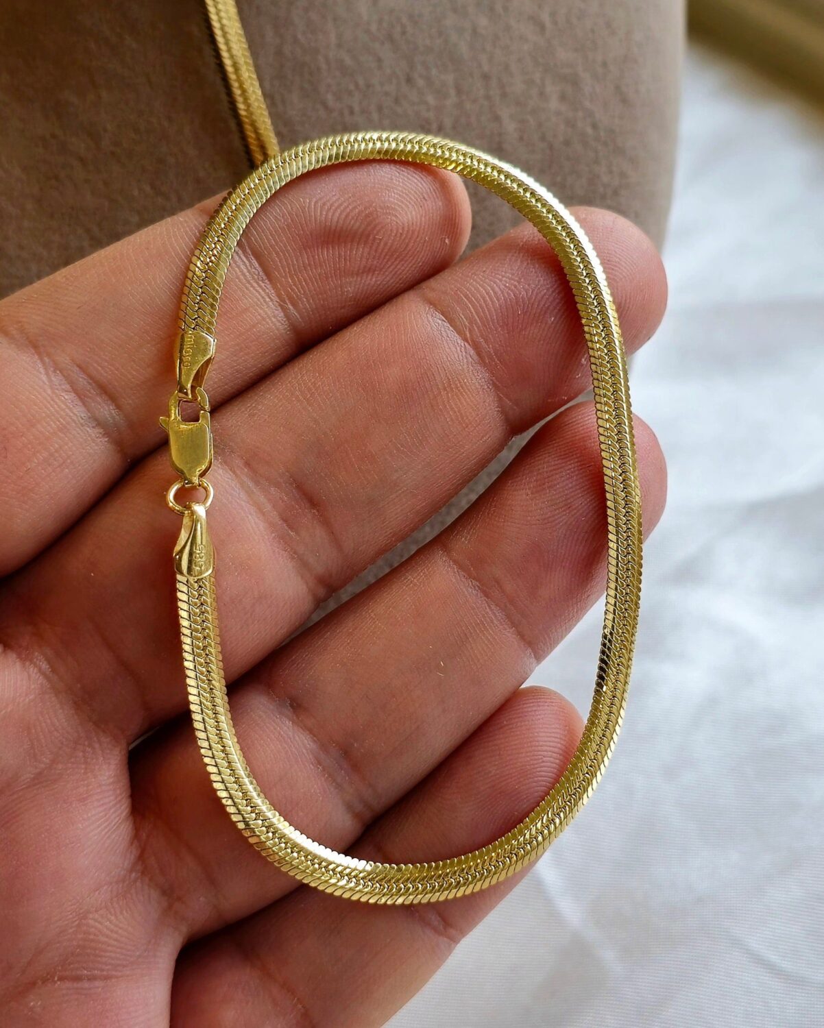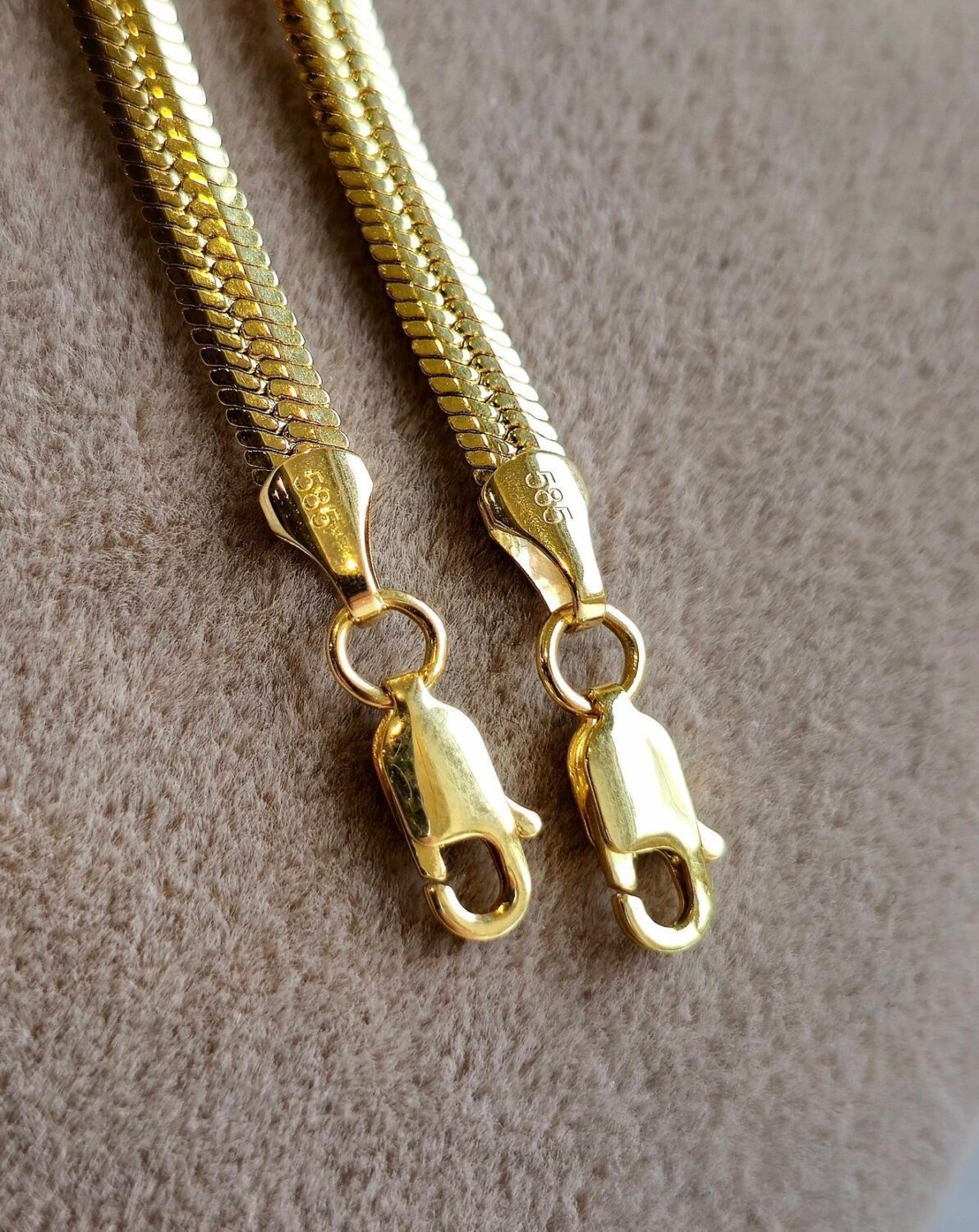 Be the first to review “14K Solid Gold Herringbone Bracelet, Real 14K Gold Bracelet For Men & Women, Snake Herringbone Chain Bracelet, 4MM Thick, Gift For Her/Him!”