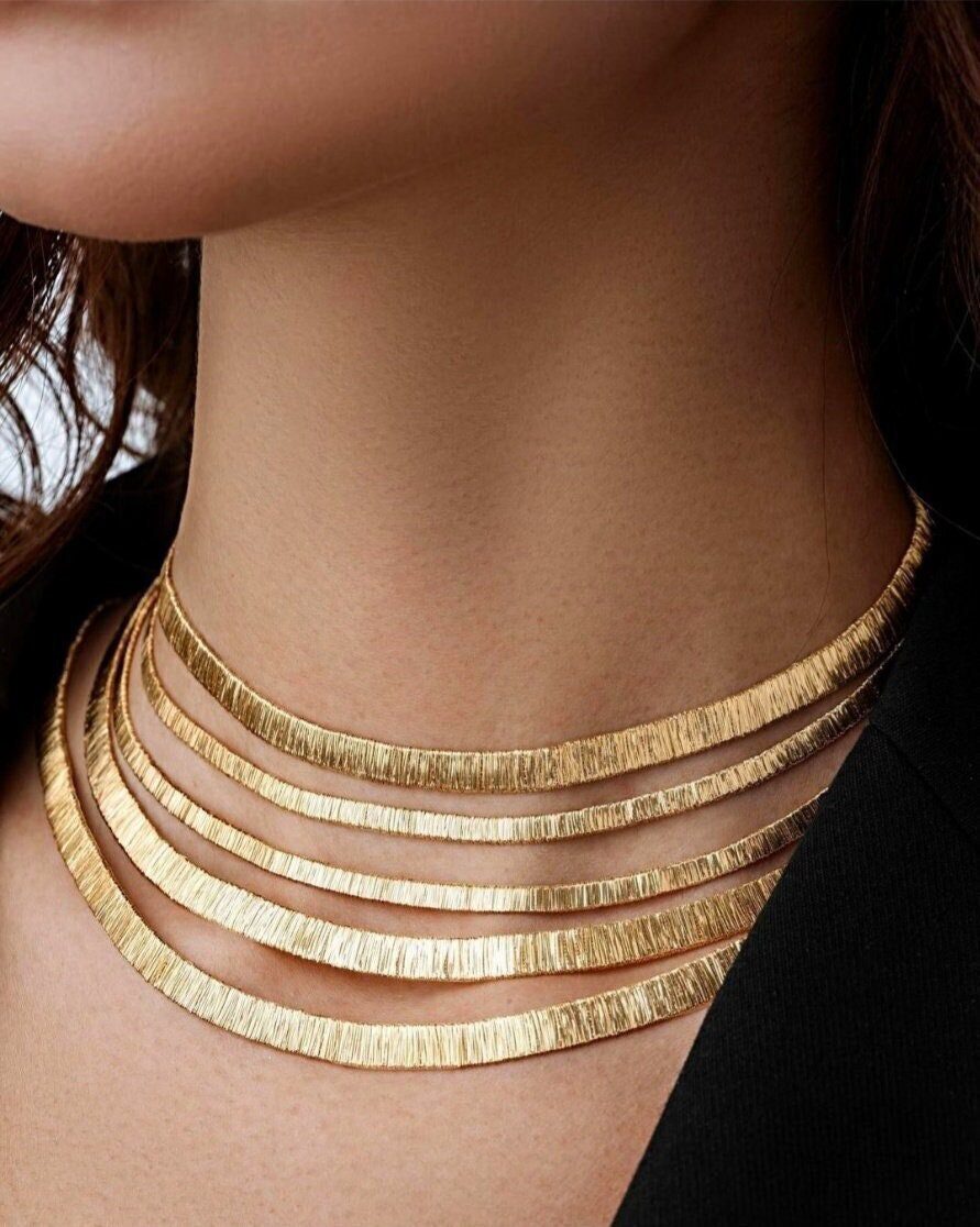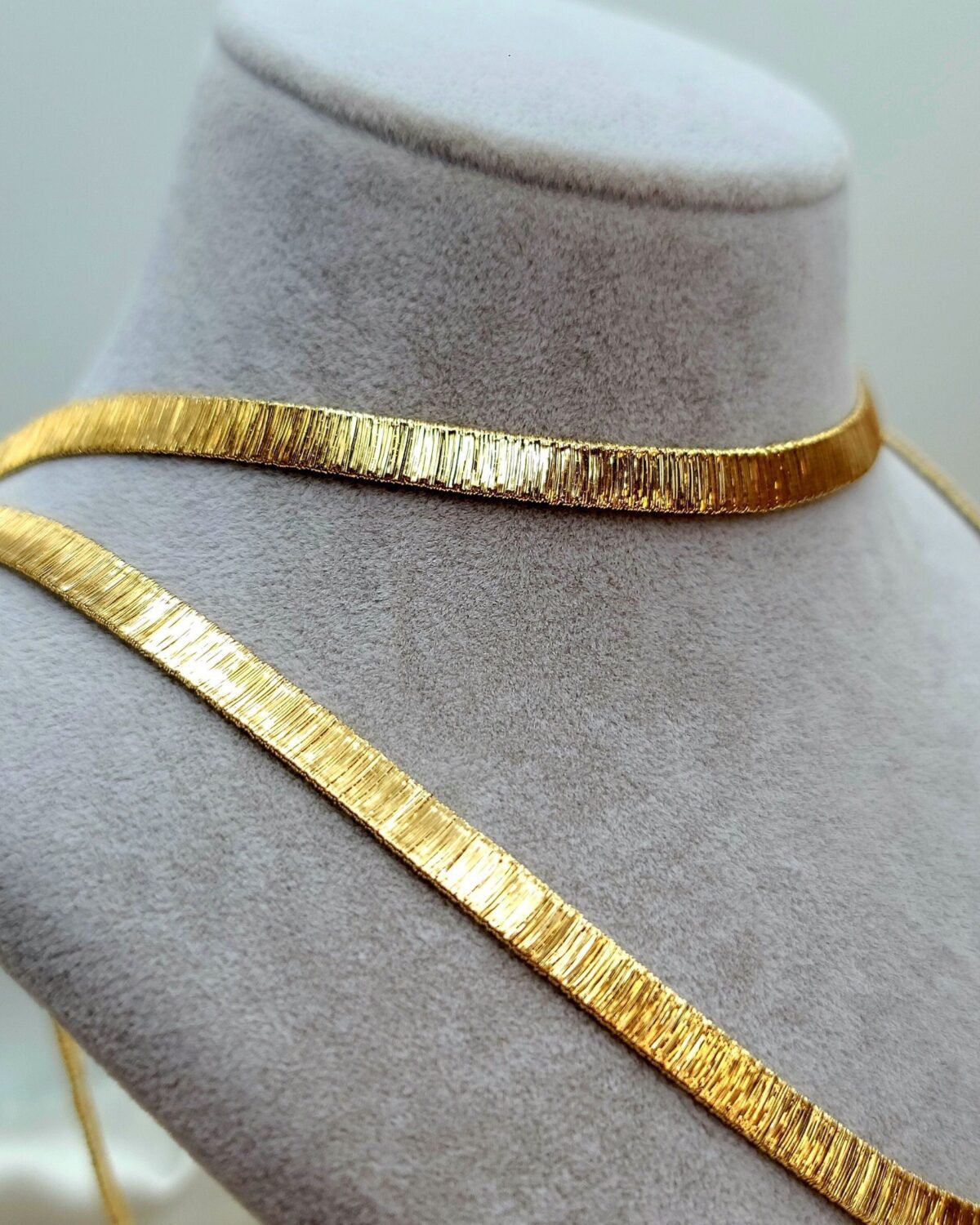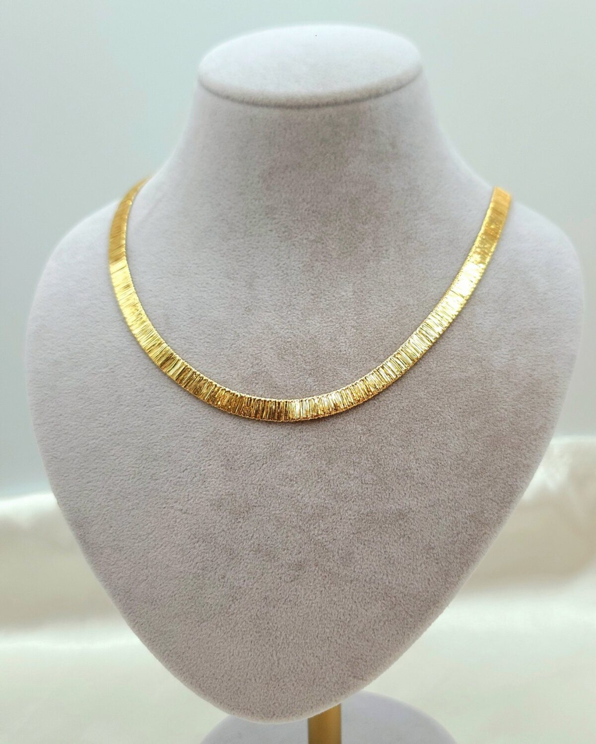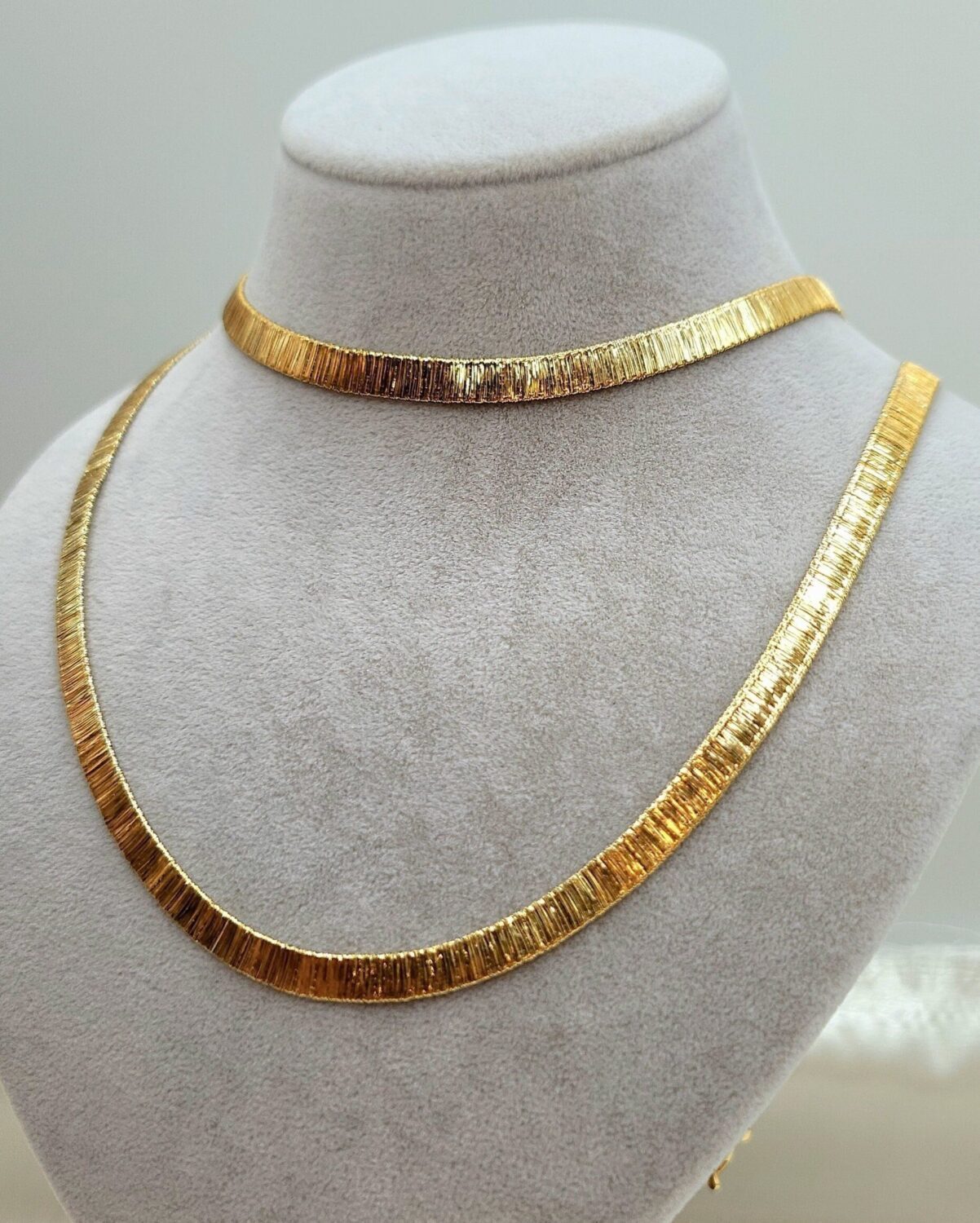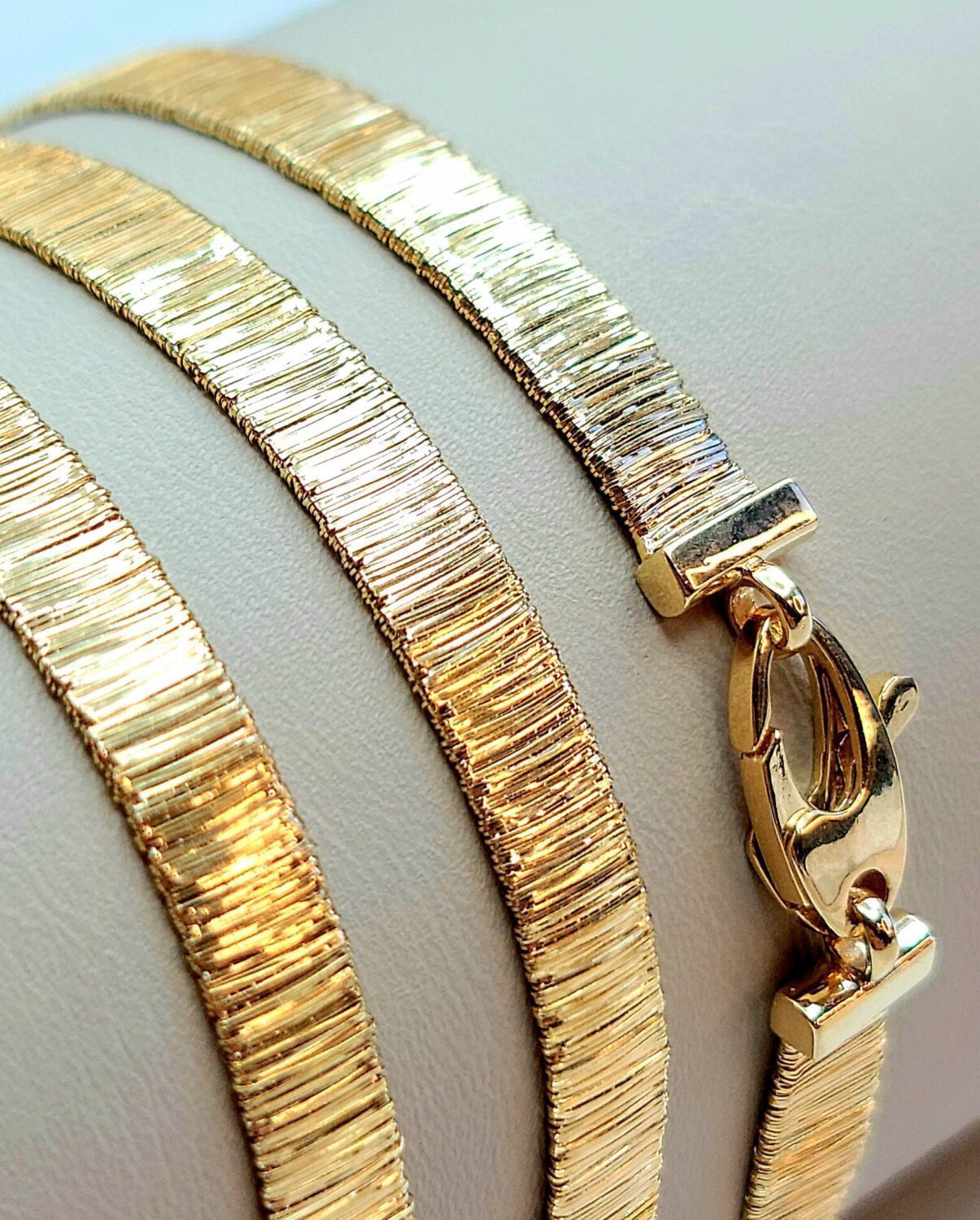 * Wear it all day, Everyday. This is a new version of the herringbone chain, which is more flexible and comfortable on the neck. It is an excellent choice for you daily go-to. Crafted with authentic genuine 14K yellow gold. A perfect gift for her and suitable for every stylish woman!