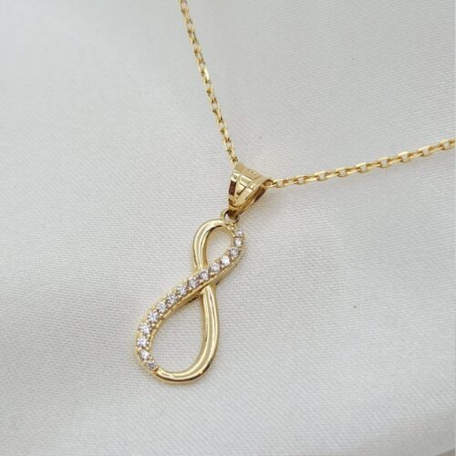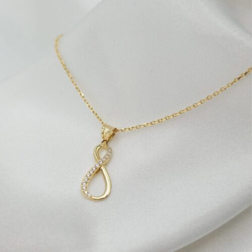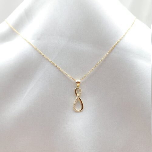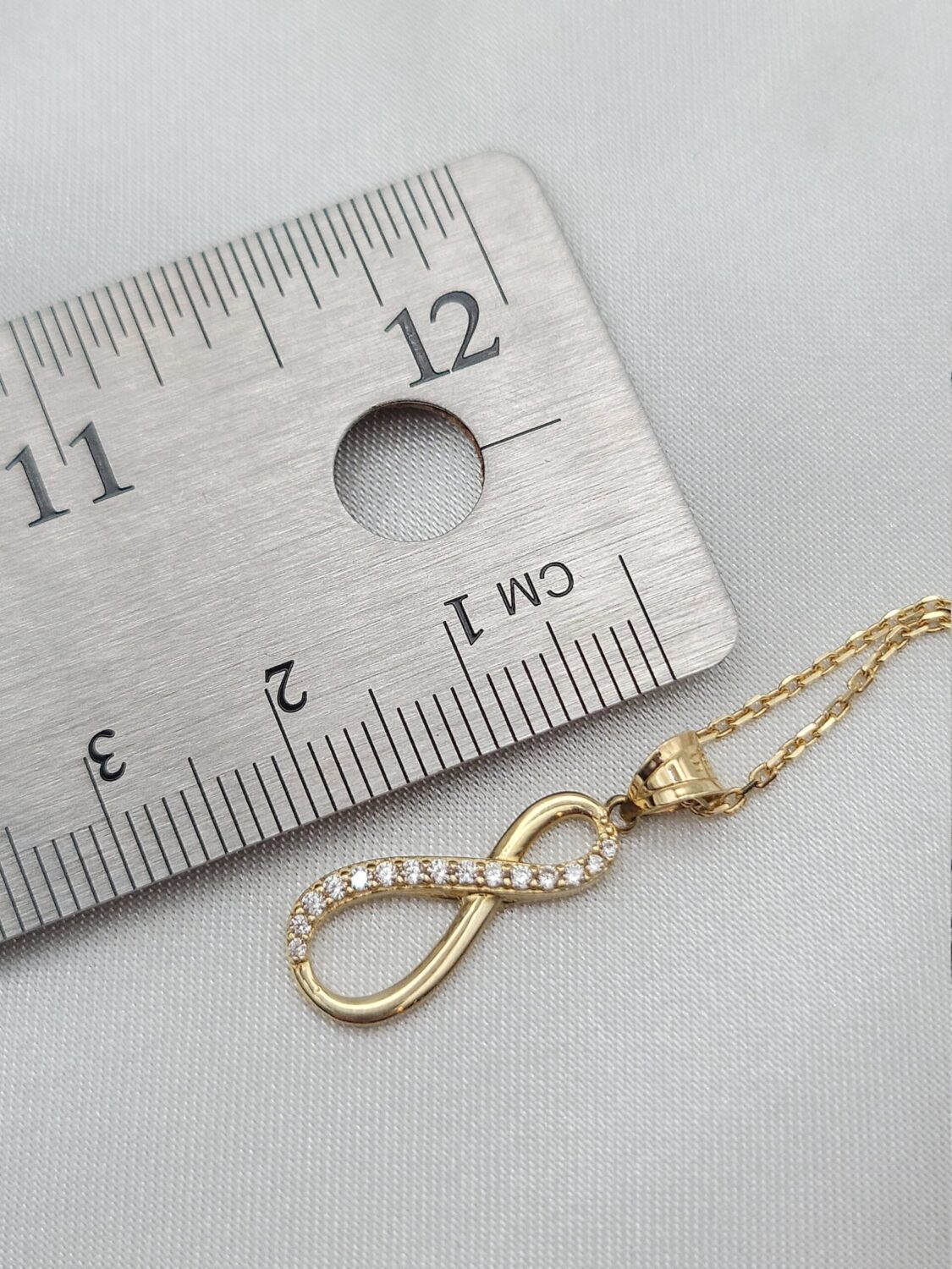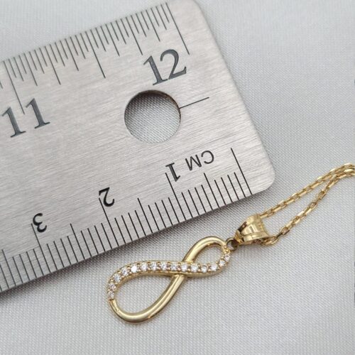 Be the first to review “14K Solid Gold Infinity Necklace – 14K Dimond-Cut Cubic Zirconia Pendant centred with 17 3/4″ Flat Cable Chain – Gift For Her/Him!”