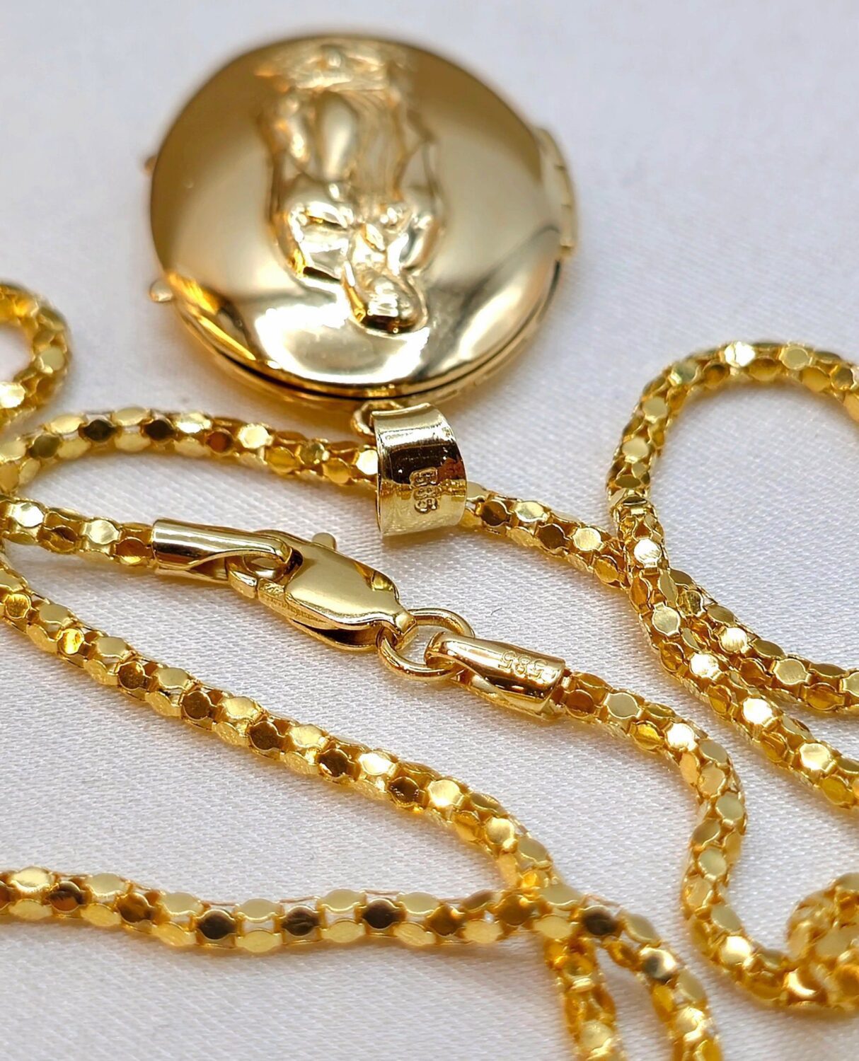 * 14K gold will be marked with a number such as 585, or 14K stamp denoting that the jewelry contains 58.5% gold (or 585 parts per thousand).