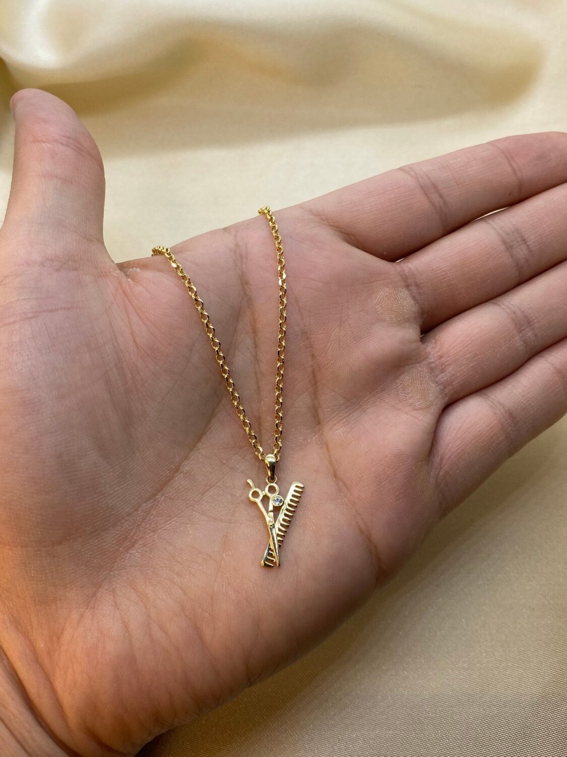 Be the first to review “14k solid gold scissor pendant with 18k necklace 19.5 inches Scissor Necklace – 14k Gold Scissor jewelry Hairstylist”