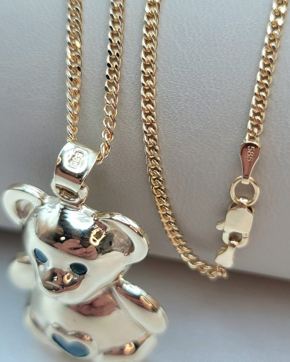 * 14K gold will be marked with a number such as 585, or 14K stamp denoting that the jewelry contains 58.5% gold (or 585 parts per thousand).