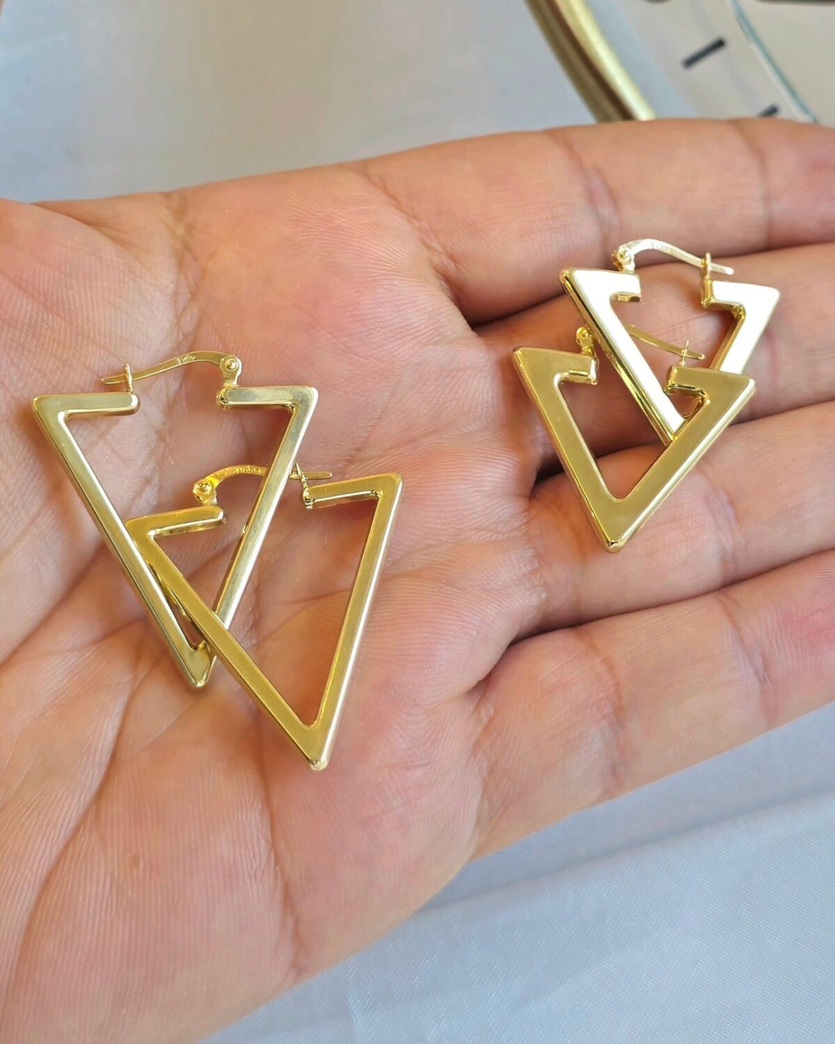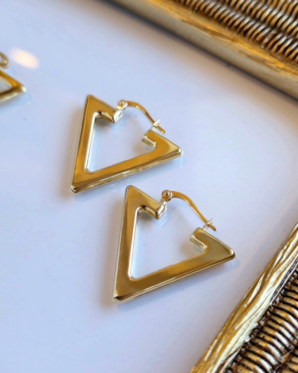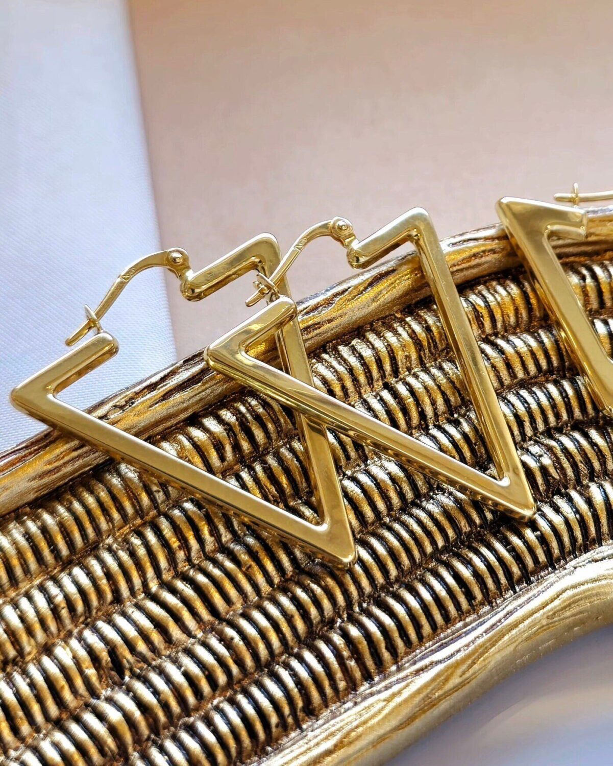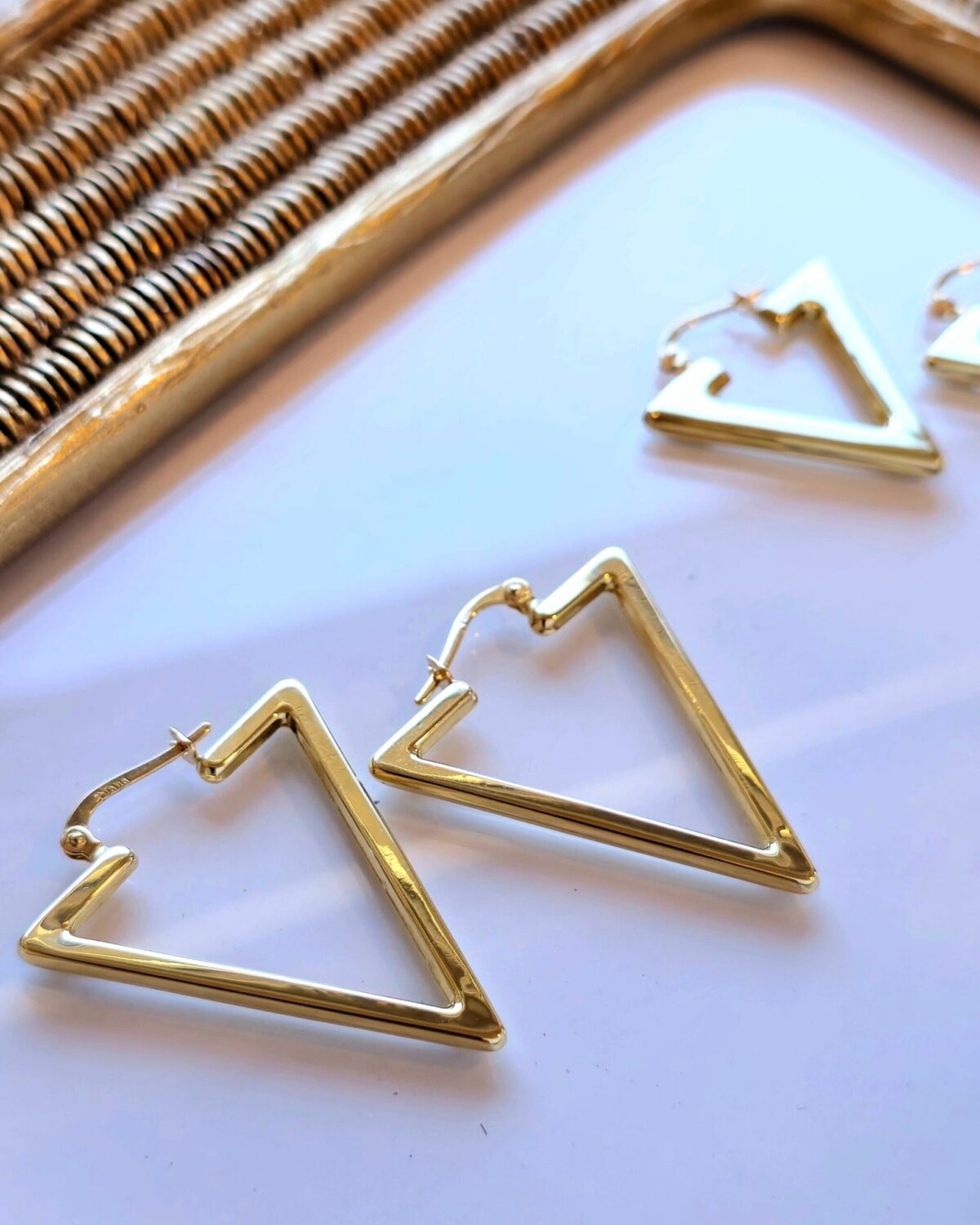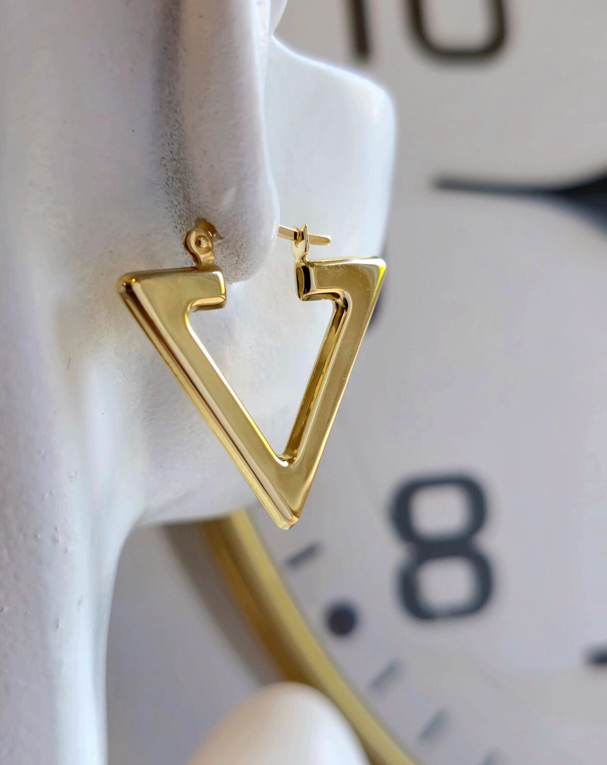 * Elevate your everyday style with these triangular 14K gold earrings. They offer a touch of subtle elegance, ideal for daily wear. Step into the latest fashion with assurance and flair.
