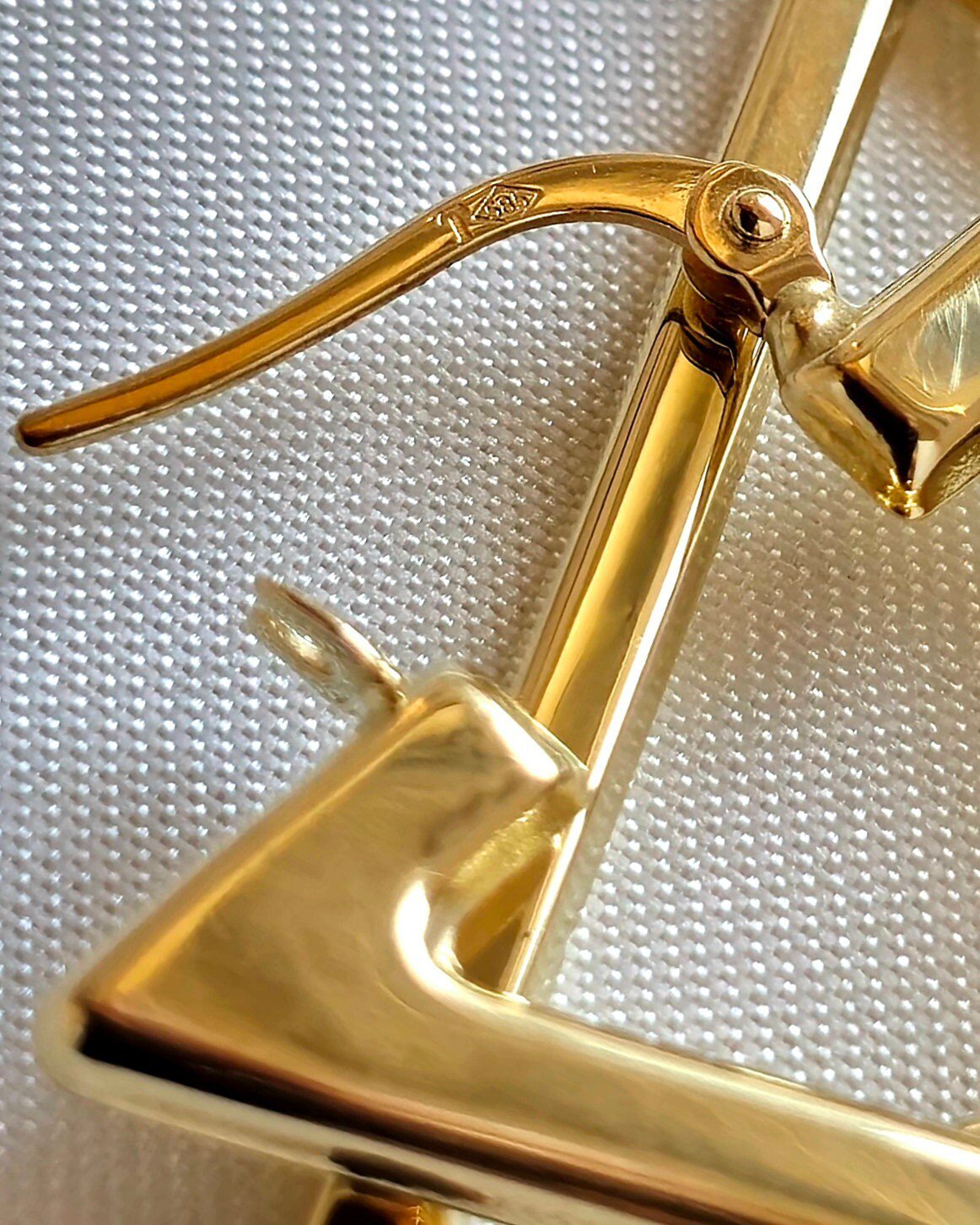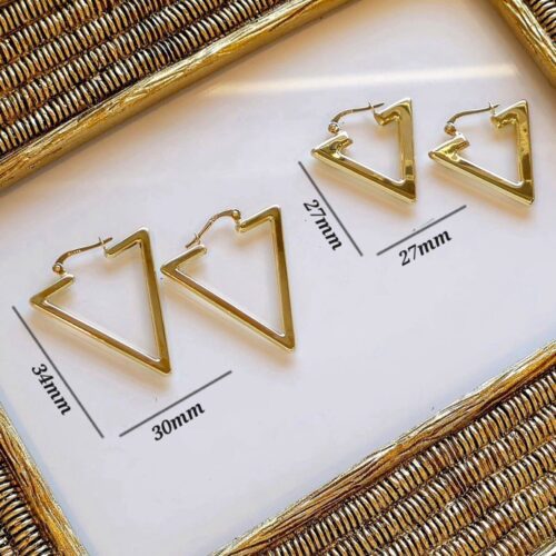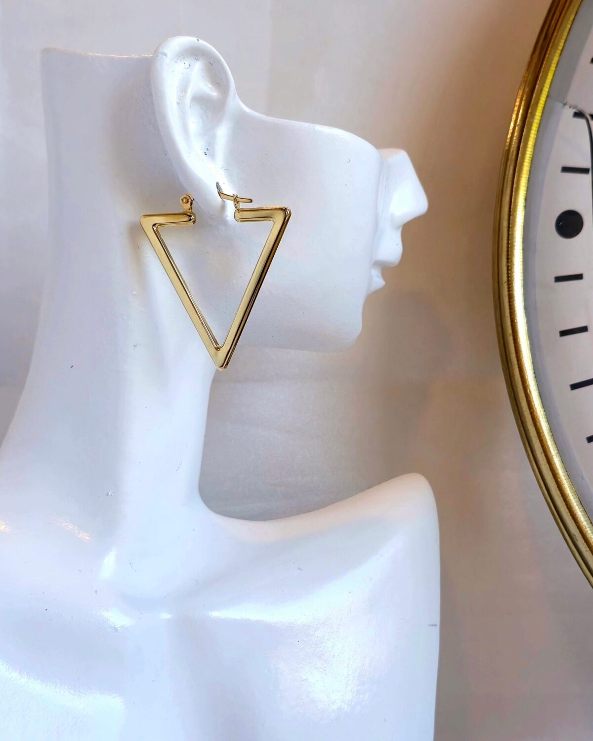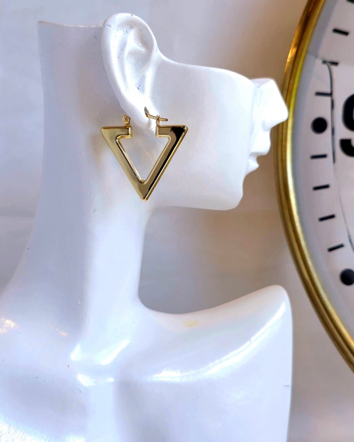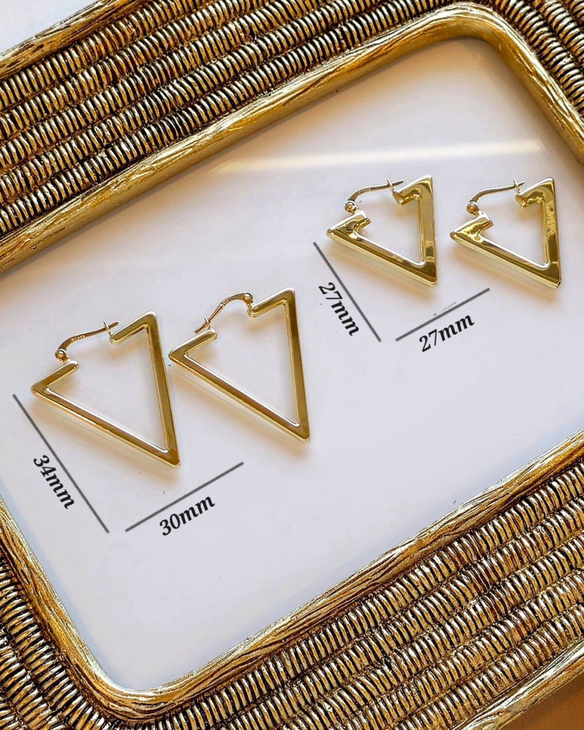 * Elevate your everyday style with these triangular 14K gold earrings. They offer a touch of subtle elegance, ideal for daily wear. Step into the latest fashion with assurance and flair.