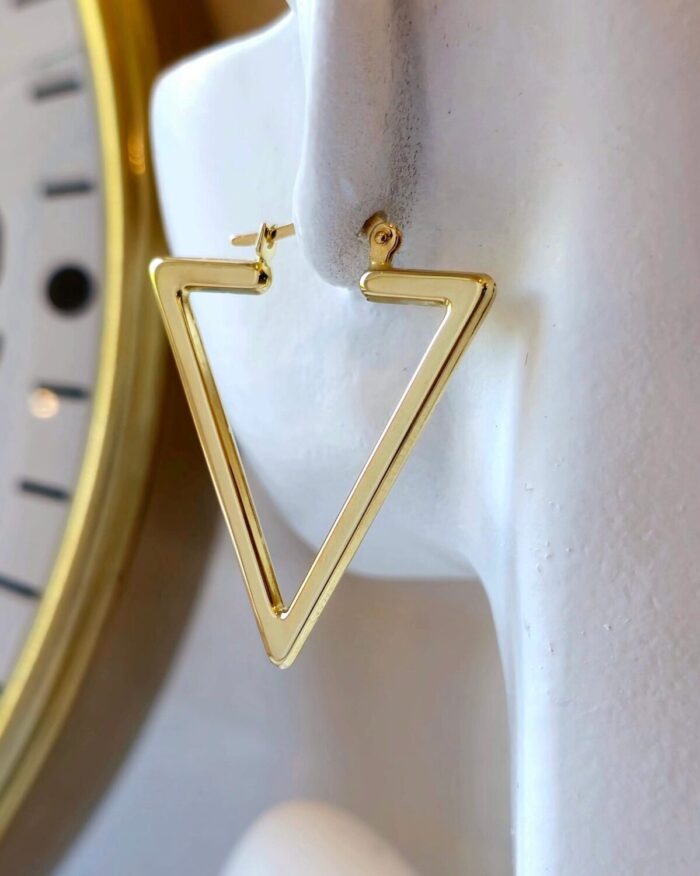 * Elevate your everyday style with these triangular 14K gold earrings. They offer a touch of subtle elegance, ideal for daily wear. Step into the latest fashion with assurance and flair.