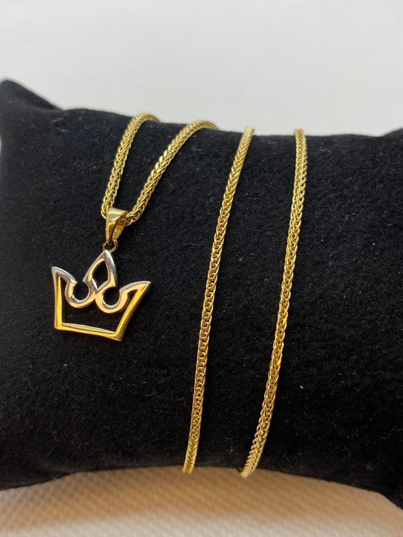 14k Gold crown Necklace 3.38 gr 21.5inches 1.5mm