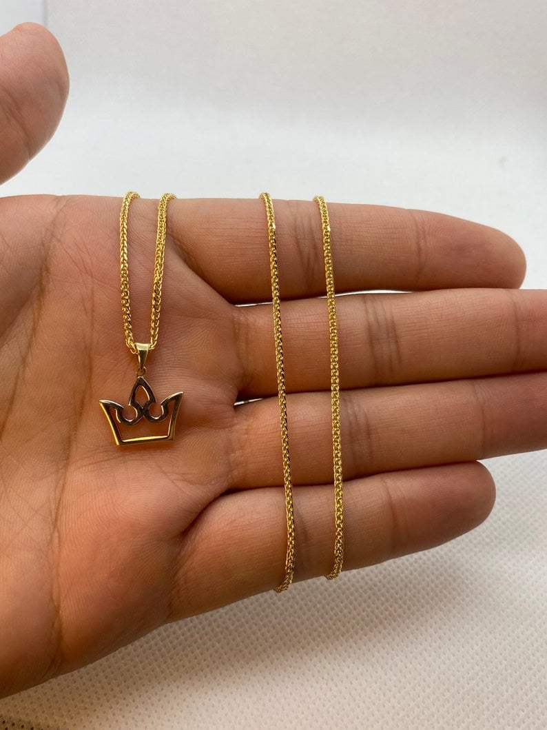 Solid 14k Yellow Gold Crown necklace. This Piece Is About Pride And Leadership. Show Yourself As The King You Are With This Symbol Of Royalty: Draw Strength, Honor And Pride From Your Crown. Perfect Gift For Yourself And For Others.