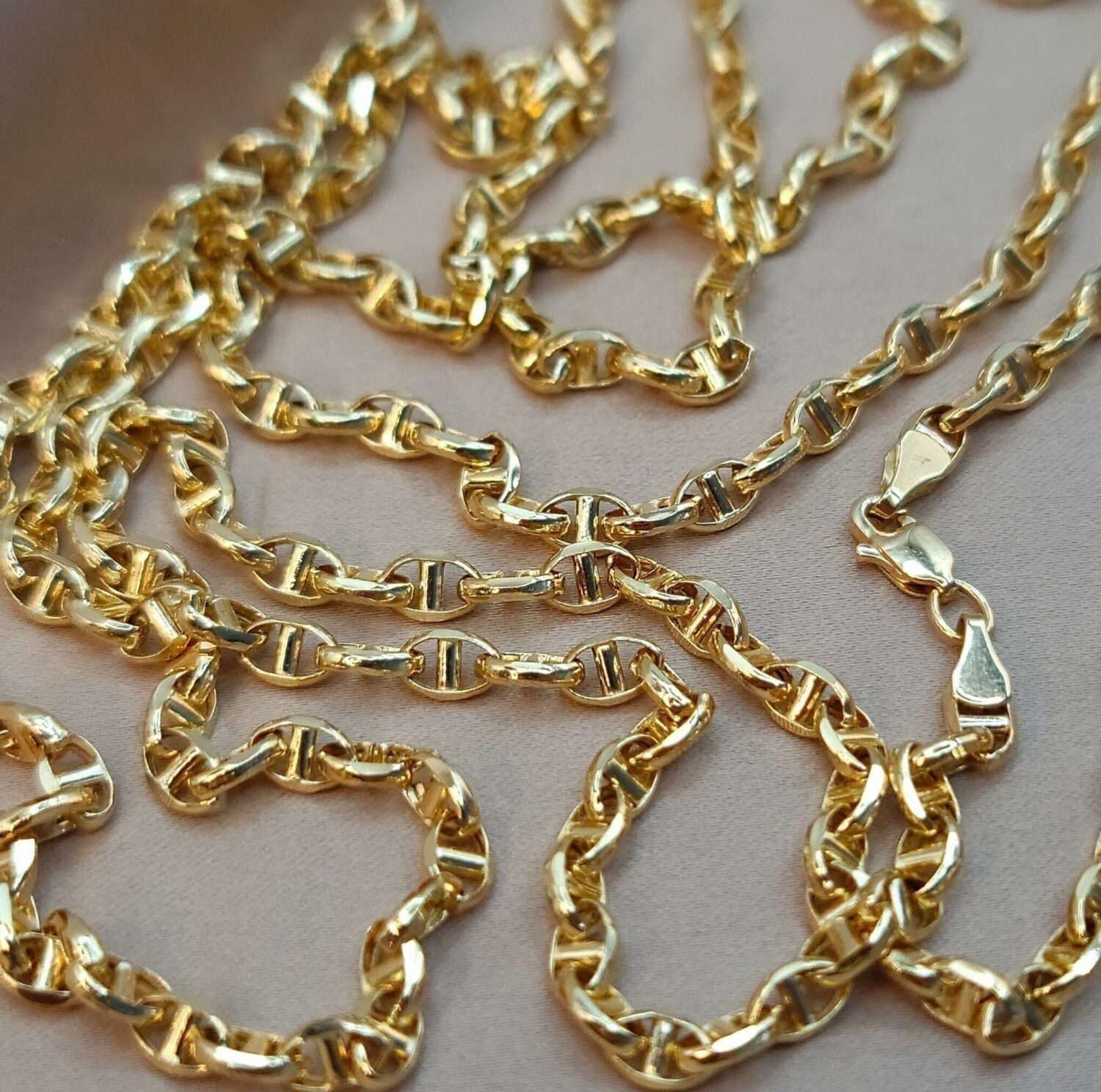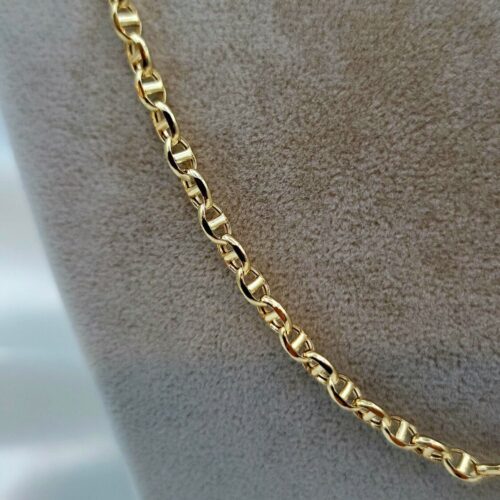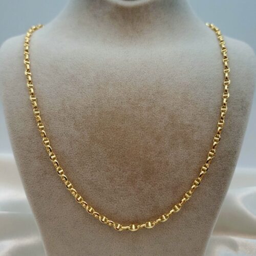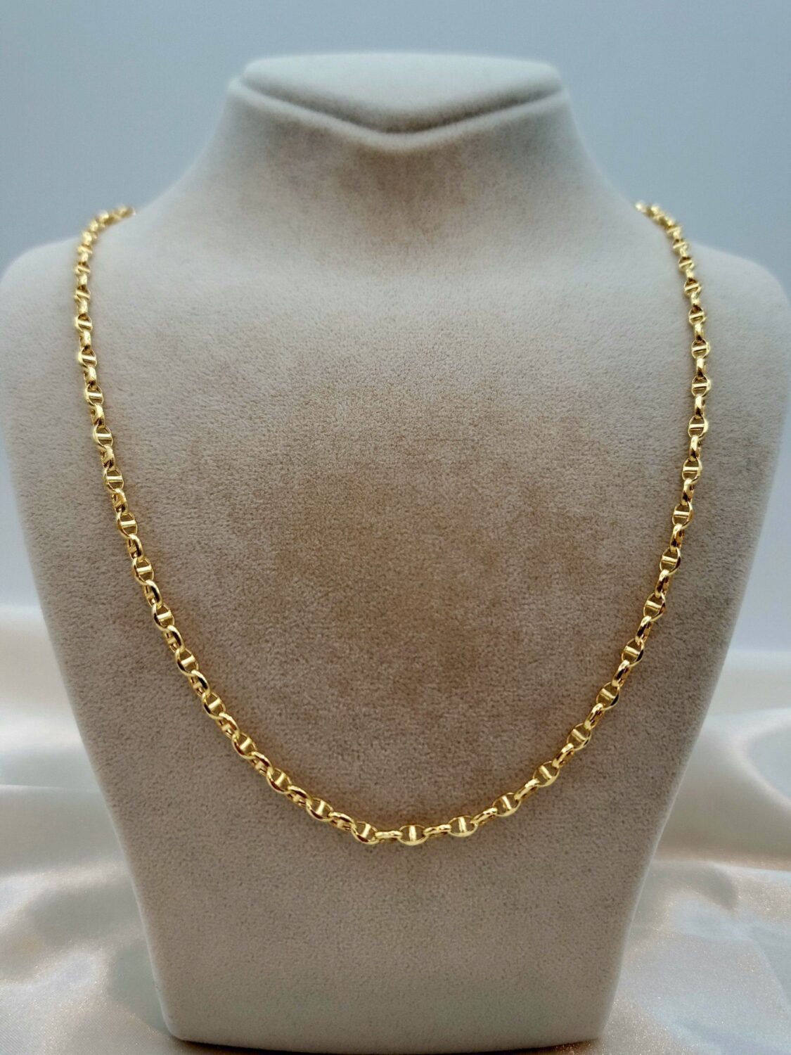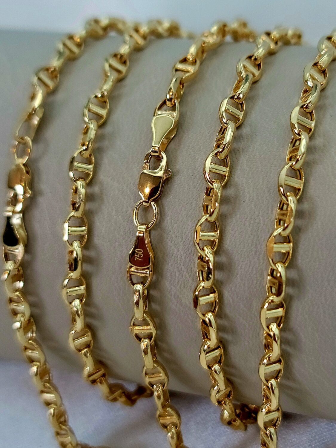 * ANCHOR CHAIN: Is characterized by uniformly sized repeating oval links which are arranged alternatively in a horizontal and then vertical orientation, traditionally with a vertical bar in the middle of each link creating a flexible ligament giving the chain strength, durability and an eye-catching style. This chain is also very study to hold your favorite pendant or ring. 18k gold will not oxidize or discolor, so you can wear your jewelry every day, everywhere. A perfect gift for every occasion!
