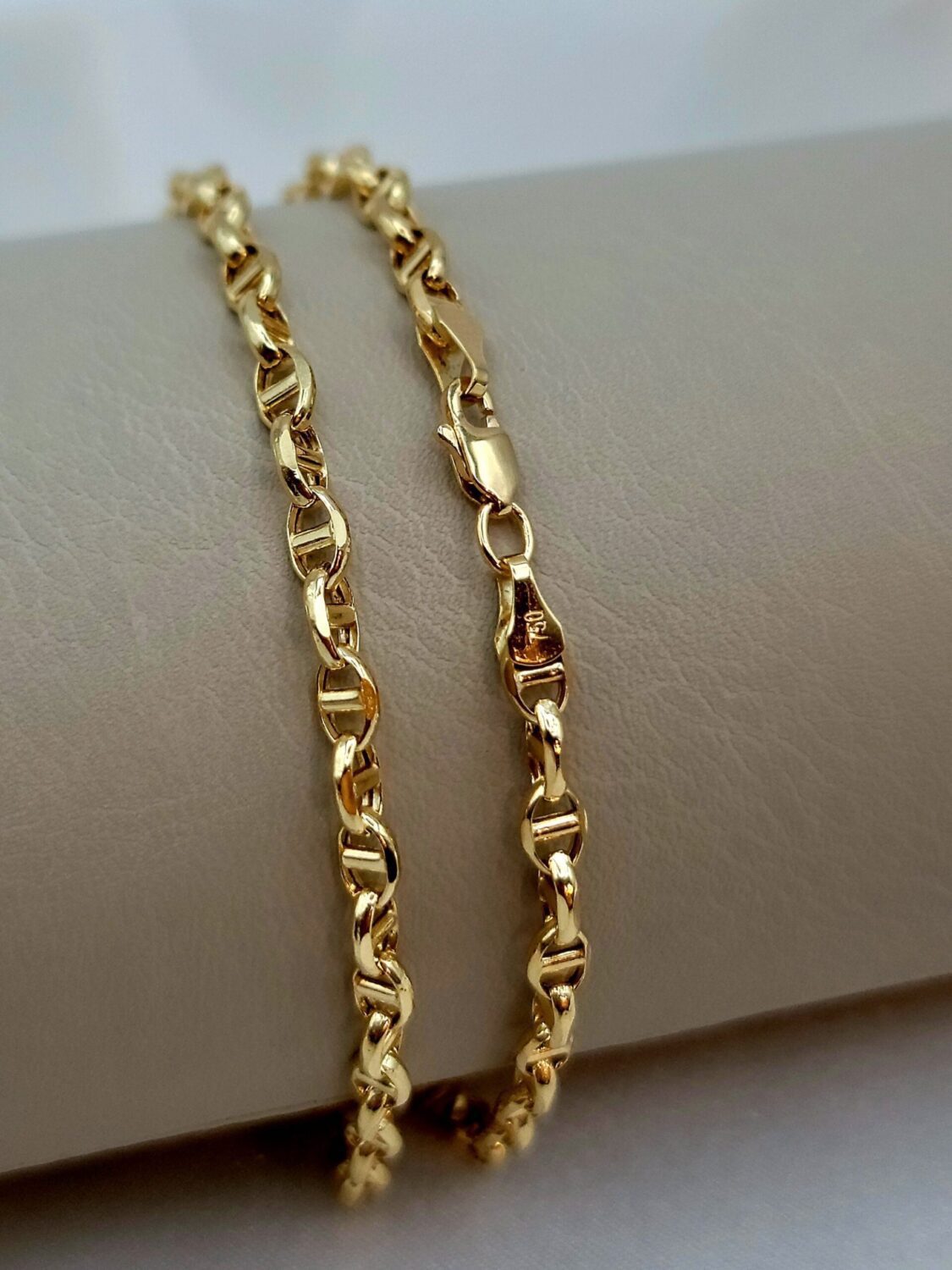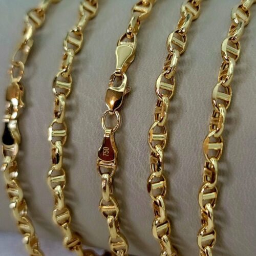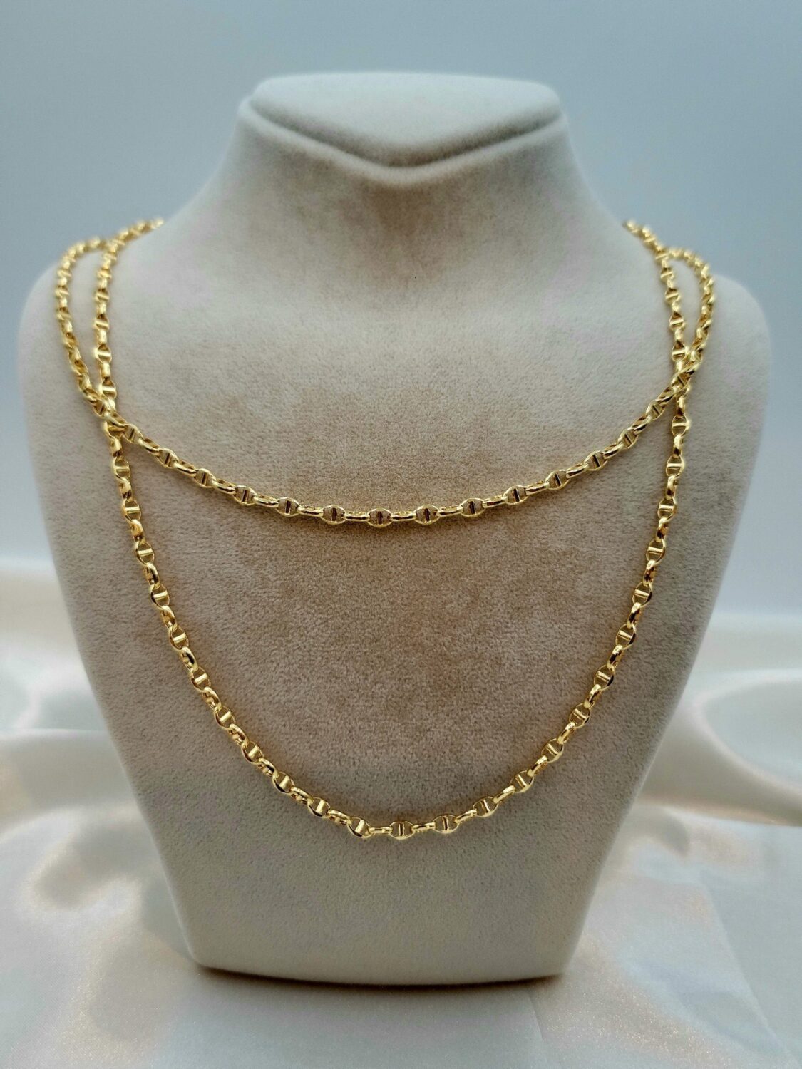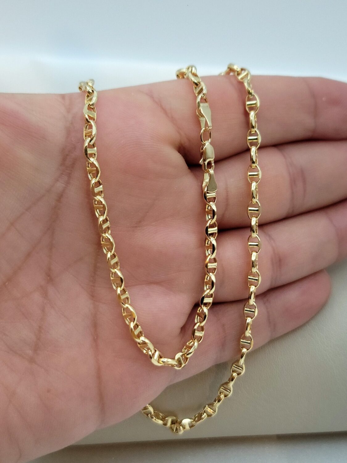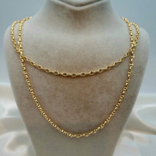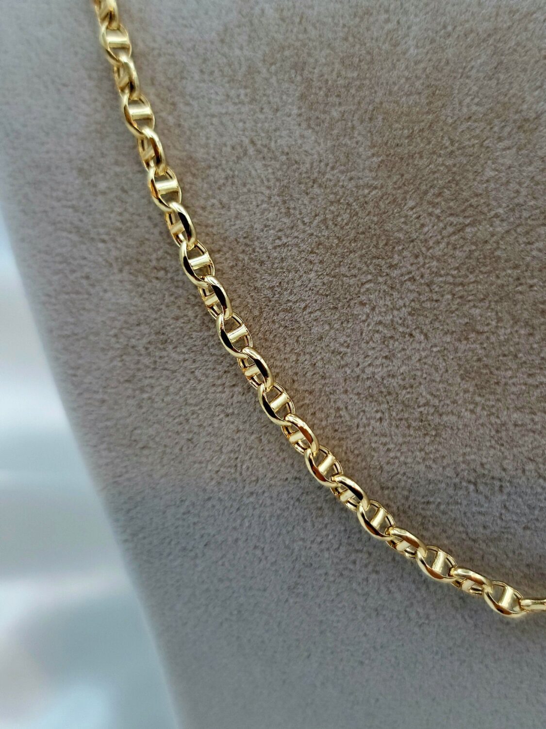 * ANCHOR CHAIN: Is characterized by uniformly sized repeating oval links which are arranged alternatively in a horizontal and then vertical orientation, traditionally with a vertical bar in the middle of each link creating a flexible ligament giving the chain strength, durability and an eye-catching style. This chain is also very study to hold your favorite pendant or ring. 18k gold will not oxidize or discolor, so you can wear your jewelry every day, everywhere. A perfect gift for every occasion!