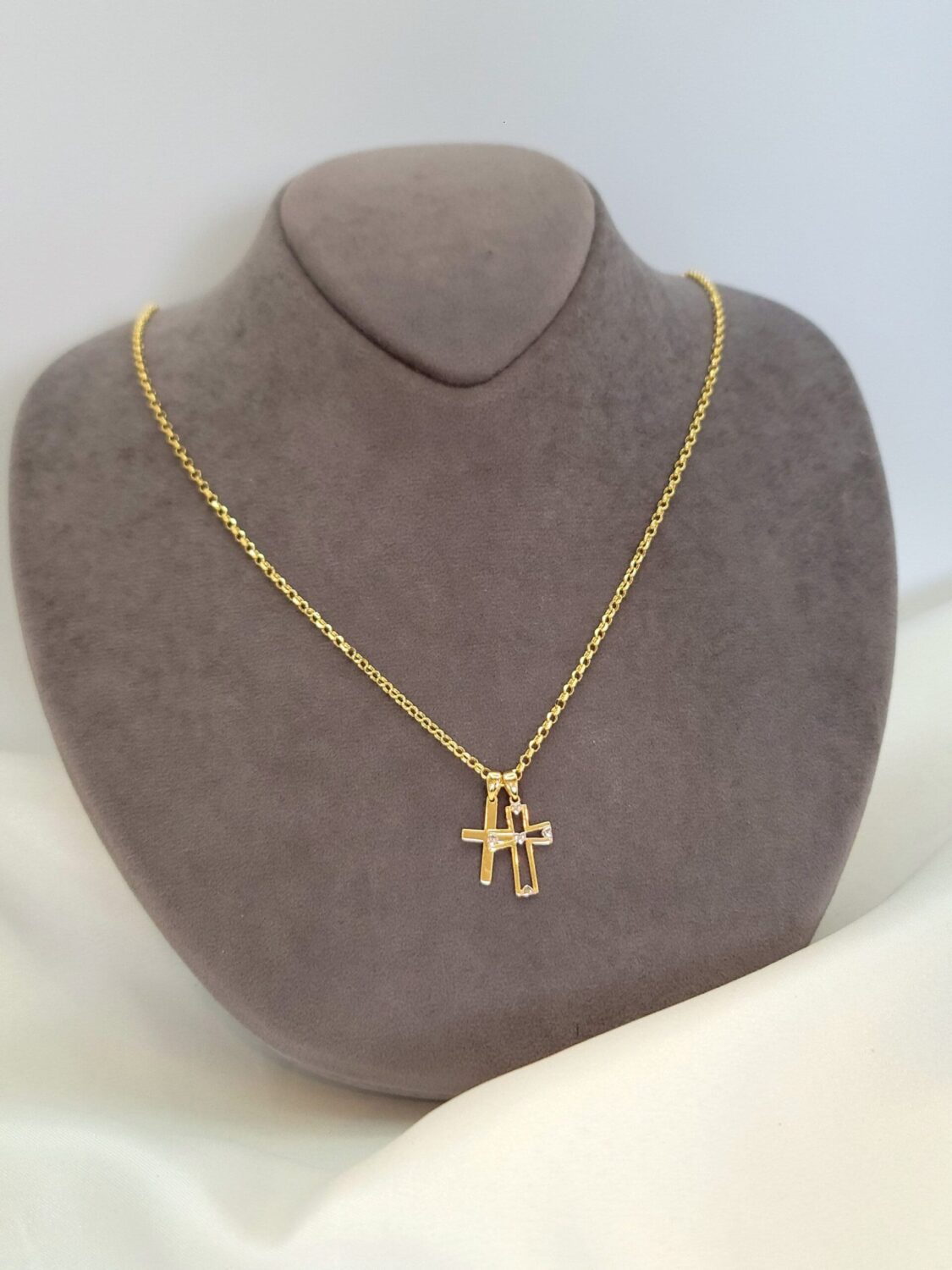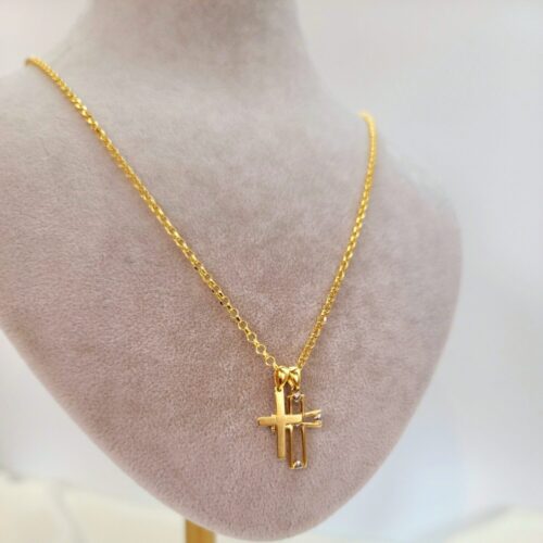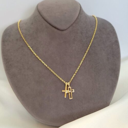 This magnificent double cross necklace sparkles with a 20 inches Rolo chain that secures with a spiring ring clasp. This perfect jewelry makes you become the center of attention.