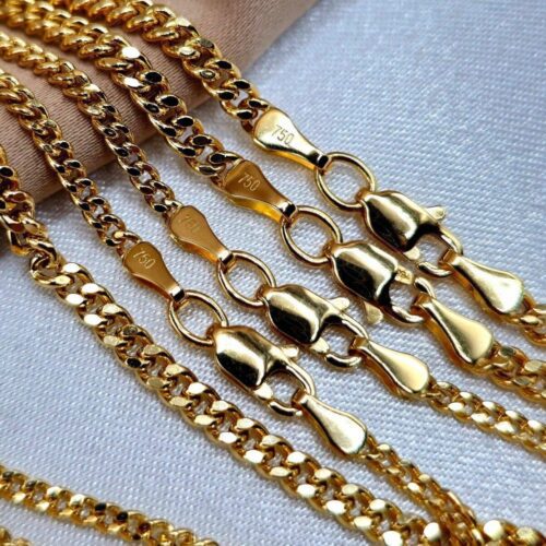 Stamped with “18K” or “750” markings, guaranteeing authenticity and purity.