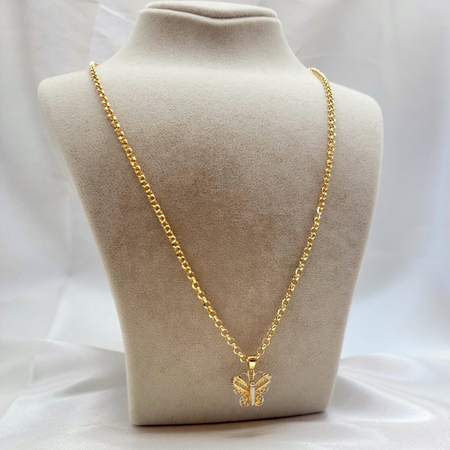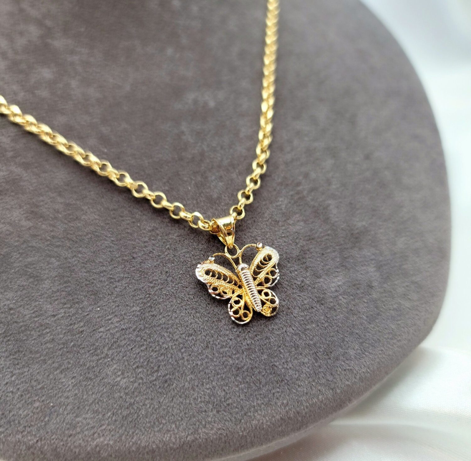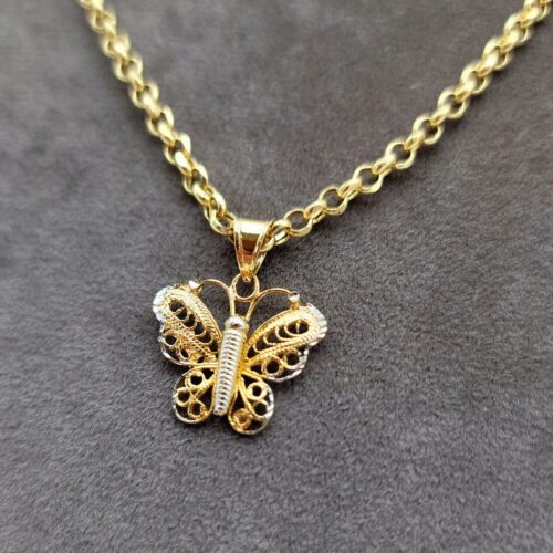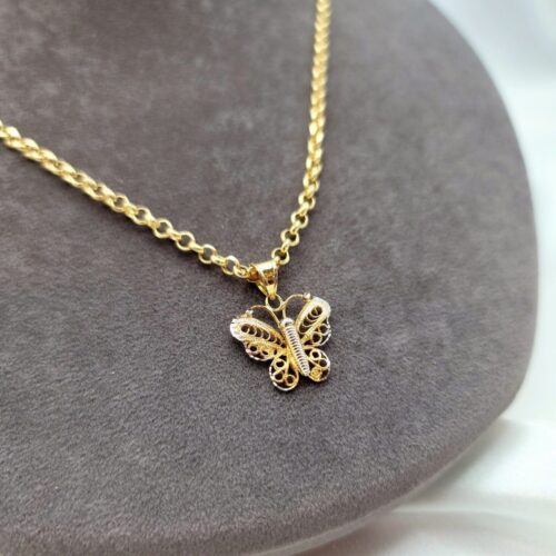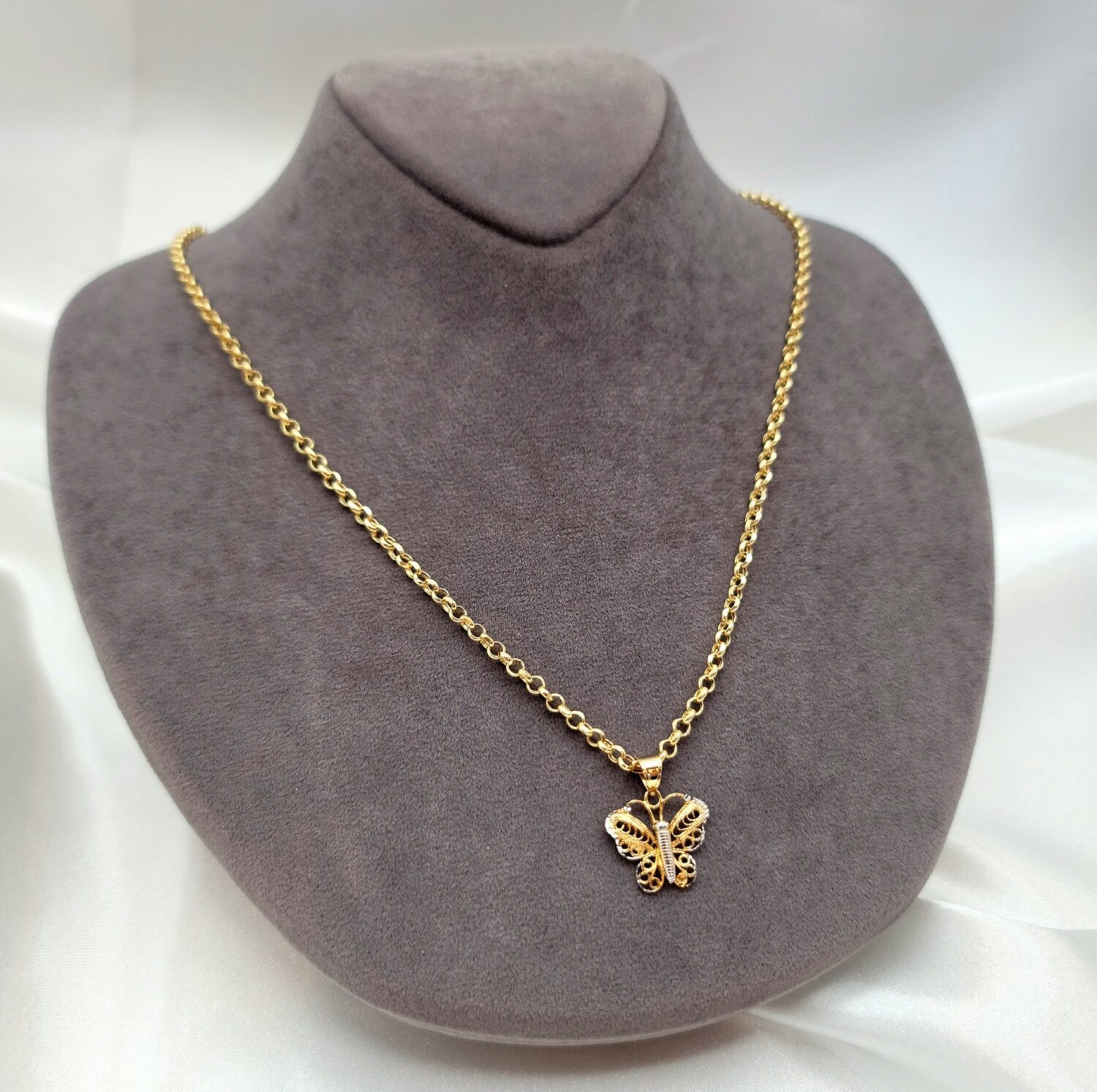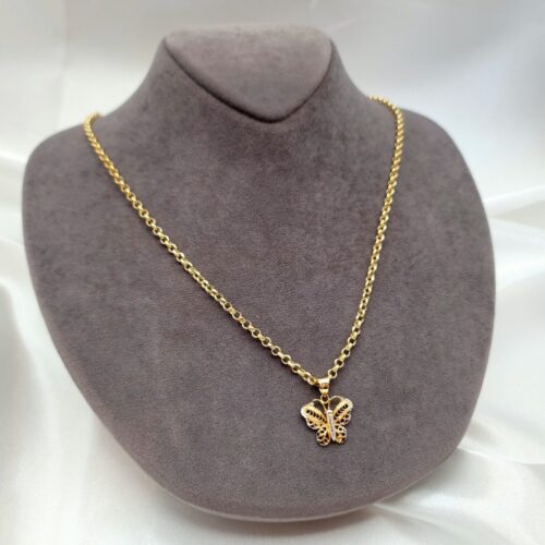 This magnificent Diamond-cut Butterfly Necklace sparkles with an 21 3/4 inches Rolo chain that secures with a spiring ring clasp. This perfect jewelry makes you become the center of attention.