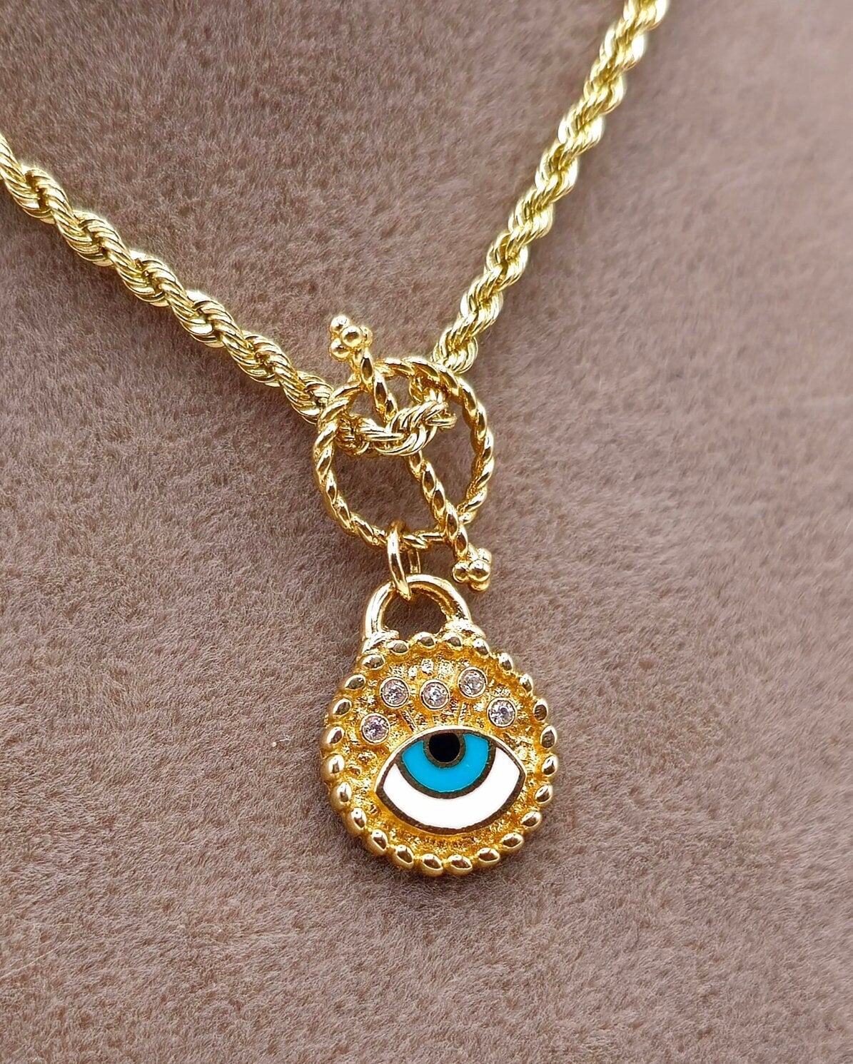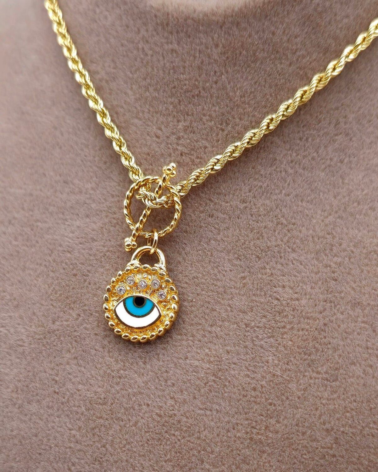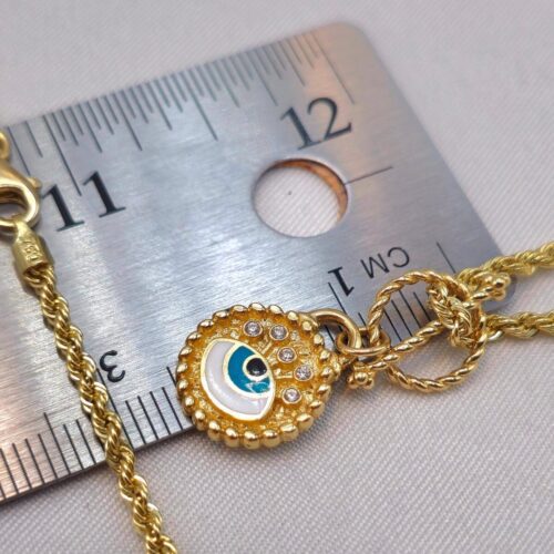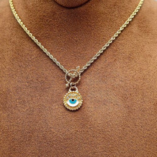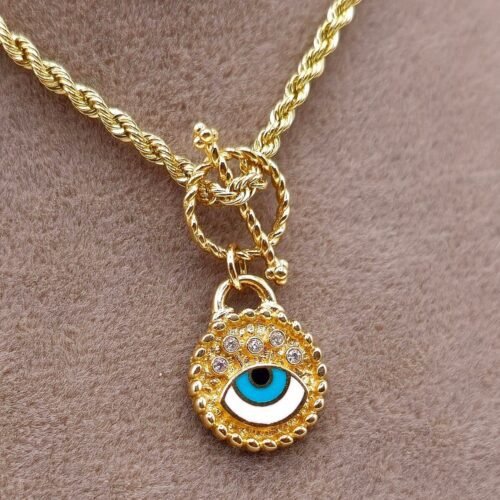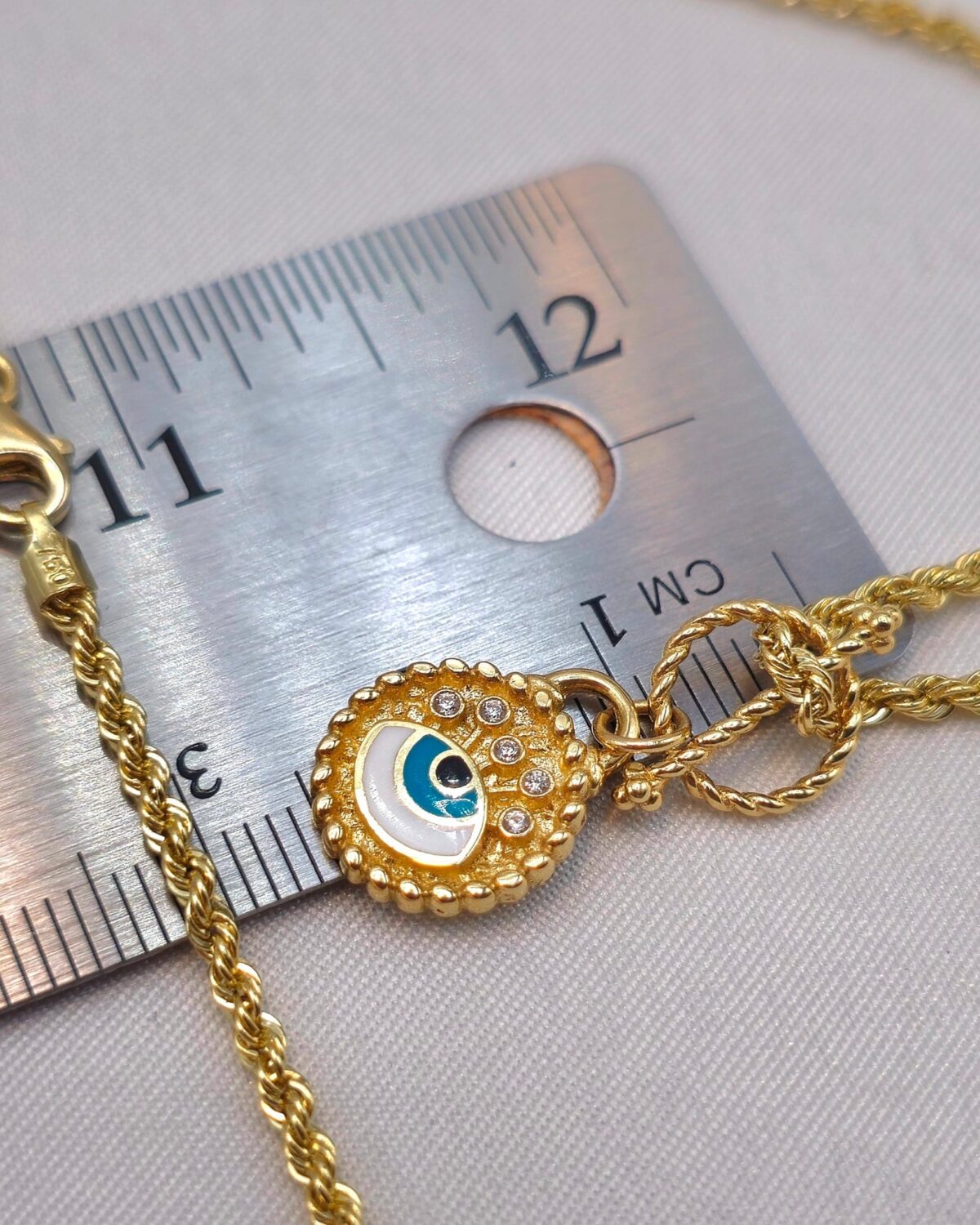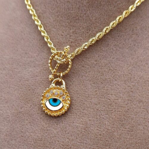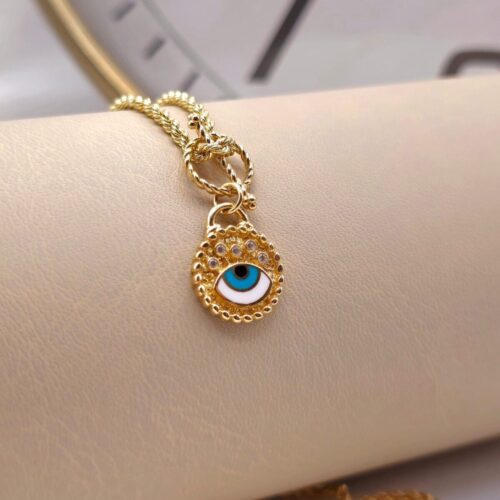 Protect yourself from negative energies with our stunning handcrafted authentic 18K gold evil eye pendant necklace. Intricate detailing enhances the elegance of this piece, making it a beautiful and meaningful gold jewelry accessory for everyday wear. A valuable gift idea for Mother’s day, Christmas, anniversaries, birthdays, or any occasion that deserves a touch of elegance and sophistication. The perfect gift for her! She’ll love it!