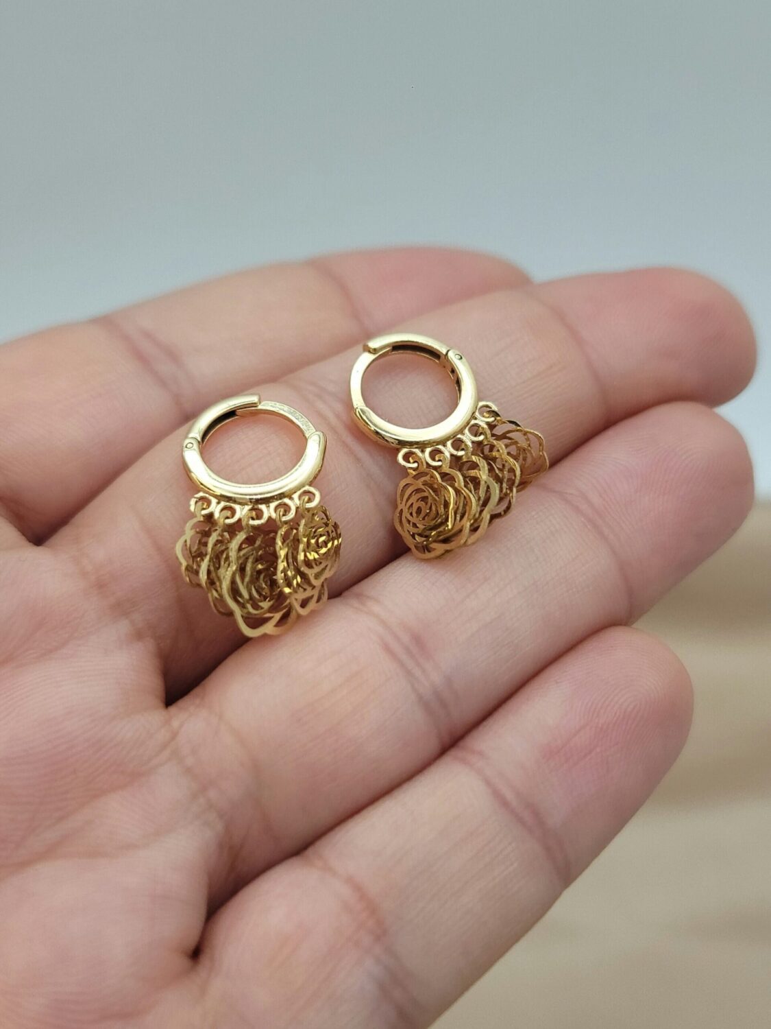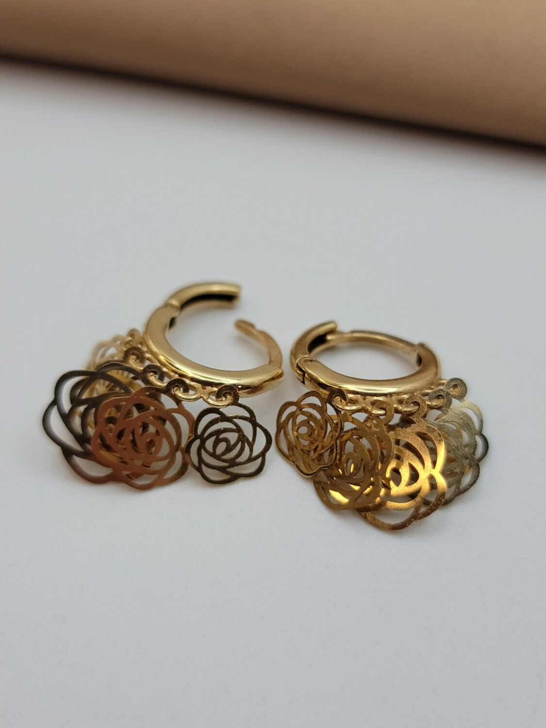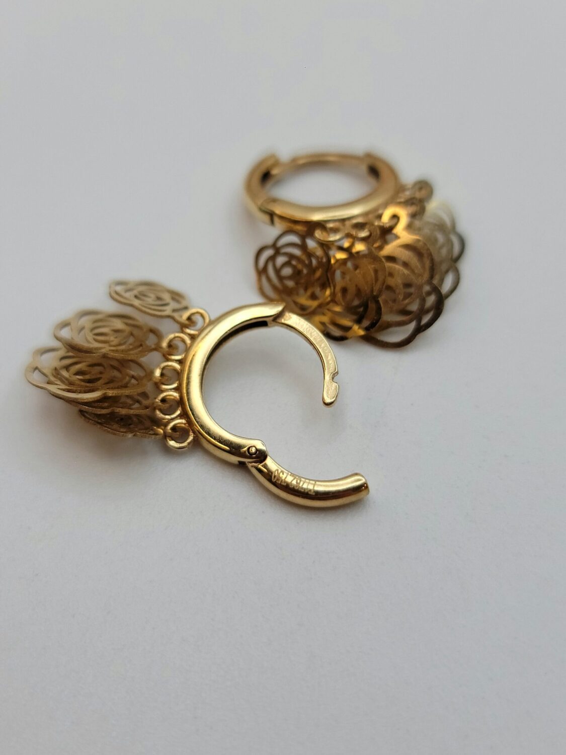These 18k Gold Flower Dangle Earrings are the perfect gift for the special woman in your life. Crafted from real 18k gold, these earrings feature delicate flower designs that will add a touch of elegance to any outfit. Perfect for any occasion, these earrings will be cherished for years to come. Made in Italy.
