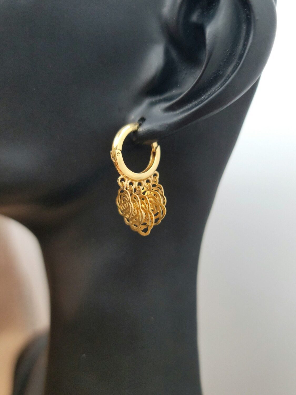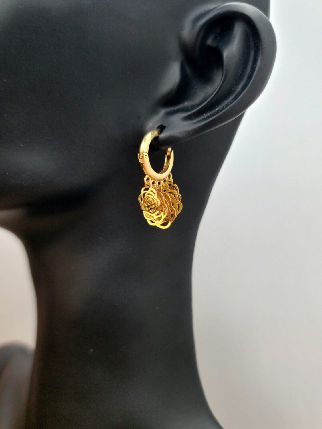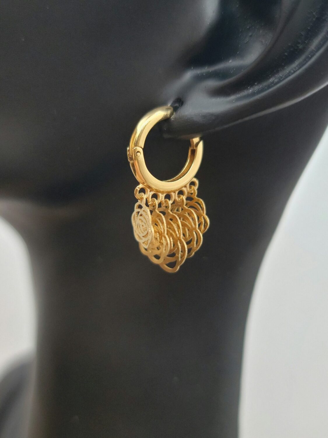 These 18k Gold Flower Dangle Earrings are the perfect gift for the special woman in your life. Crafted from real 18k gold, these earrings feature delicate flower designs that will add a touch of elegance to any outfit. Perfect for any occasion, these earrings will be cherished for years to come. Made in Italy.
