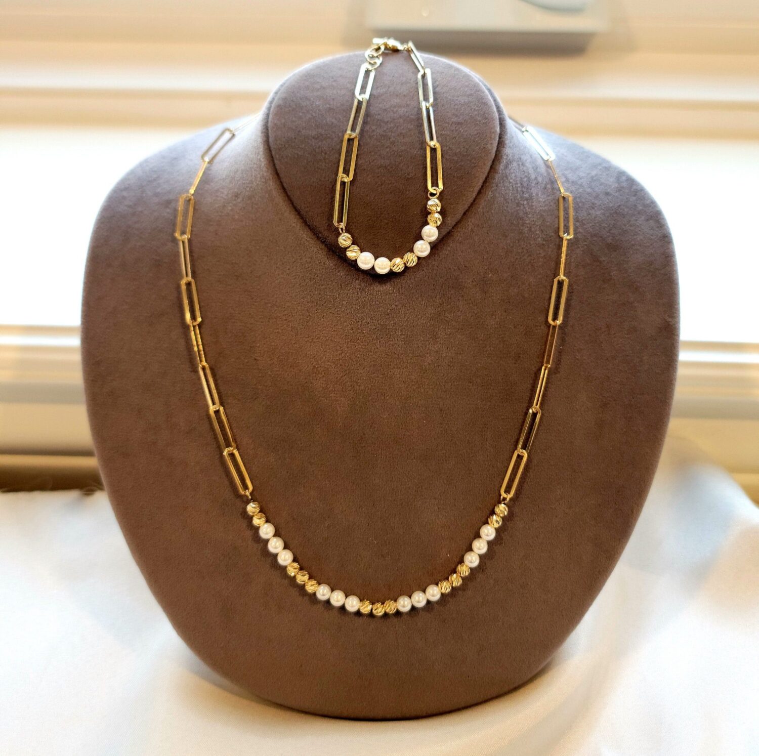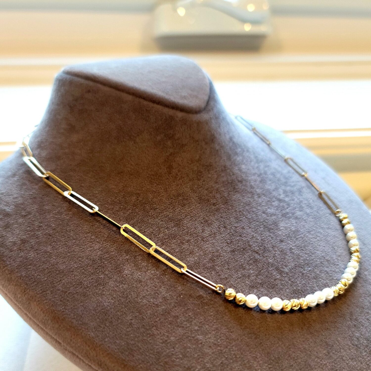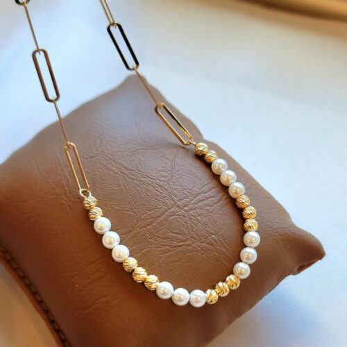 * Please be advised that the necklace is semi hollow but strong enough to wear it everyday and also the necklace is paperclip mixed with orb diamond cut beaded 18k and pearl.