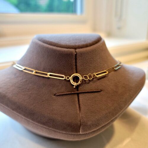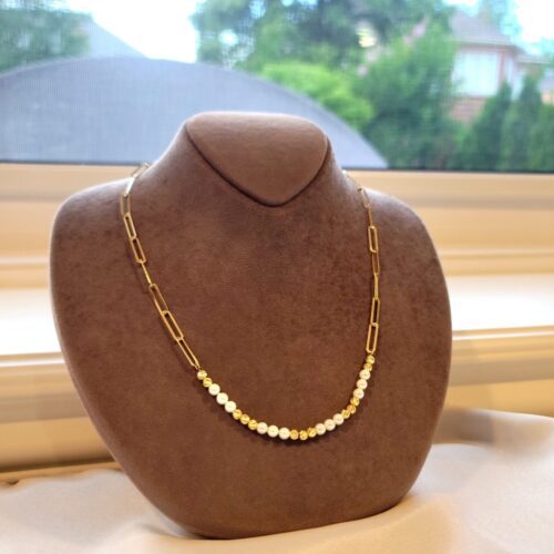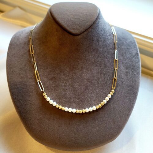 18k real Gold paper clip necklace with cultured pearls ,17.5″ “,4mm, 6.88 gr(weight of 18k gold only)