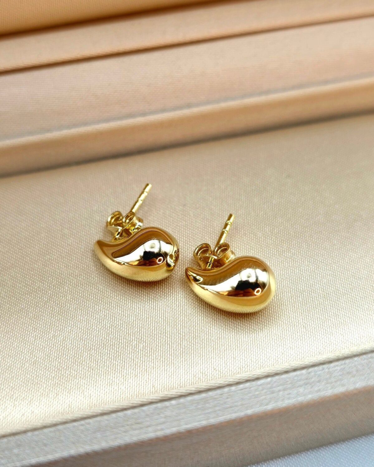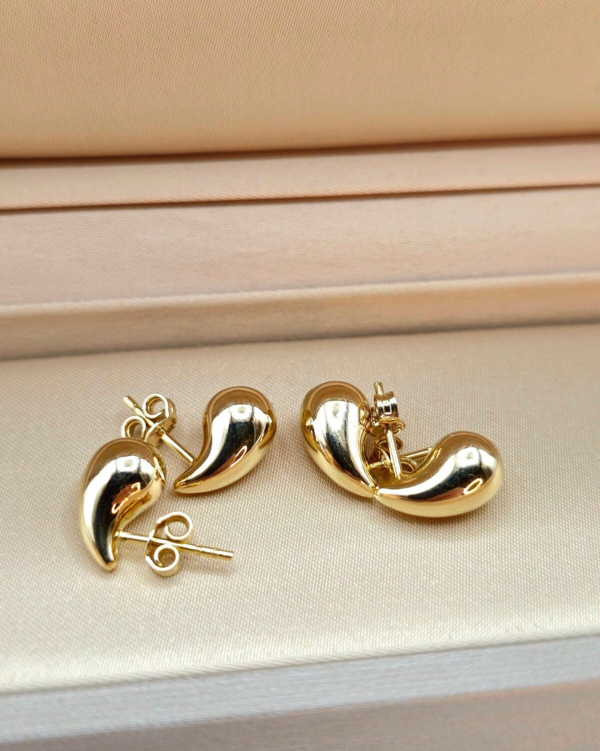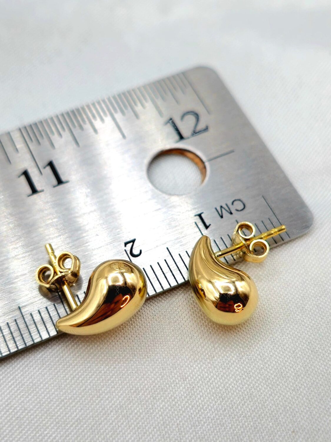 Handcrafted authentic 18K gold tear drop studs earrings. The perfect polish enhances the elegance of this piece, making it a beautiful and gorgeous accessory for everyday wear. A valuable gift idea for Weddings, Christmas, anniversaries, birthdays, or any occasion that deserves a touch of elegance and sophistication. The perfect gift for her! She’ll love it!
