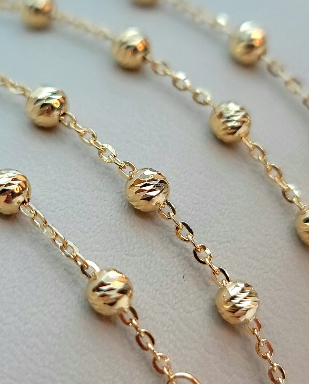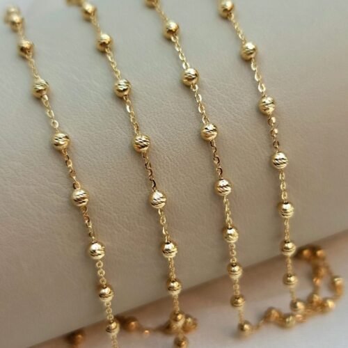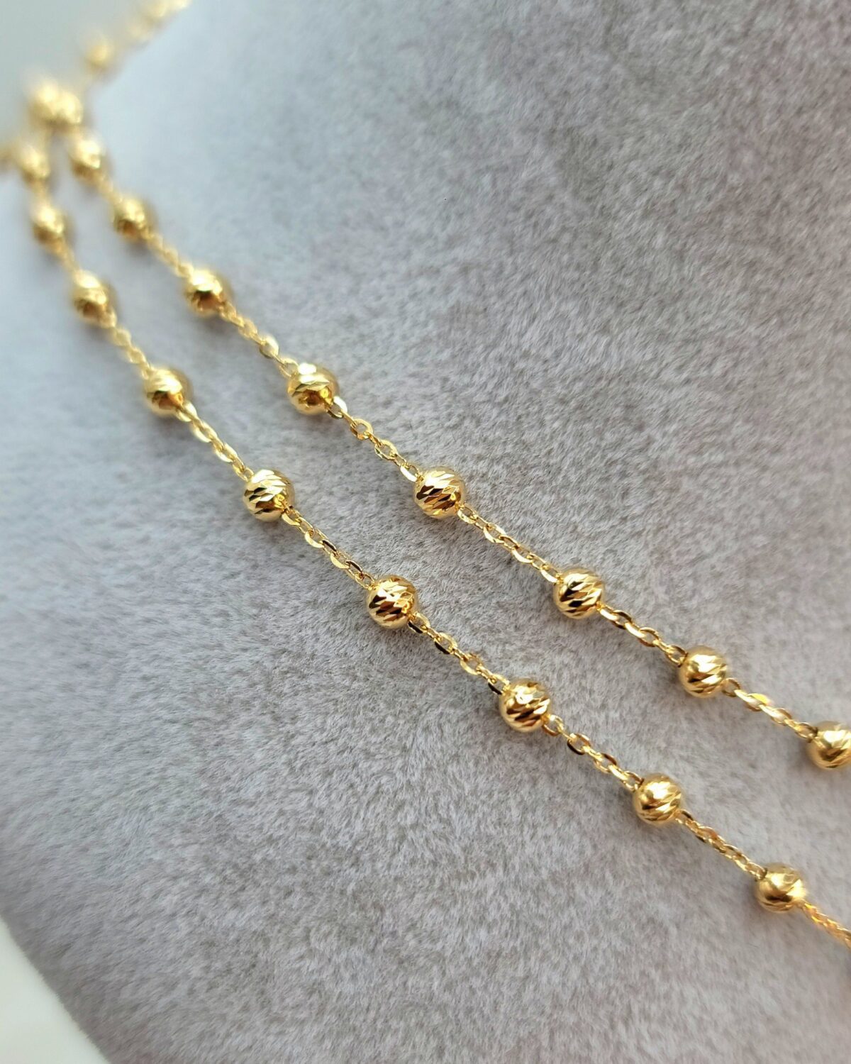 Style: Beaded Cable Chain Necklace – Diamond-cut – 18K Yellow Gold