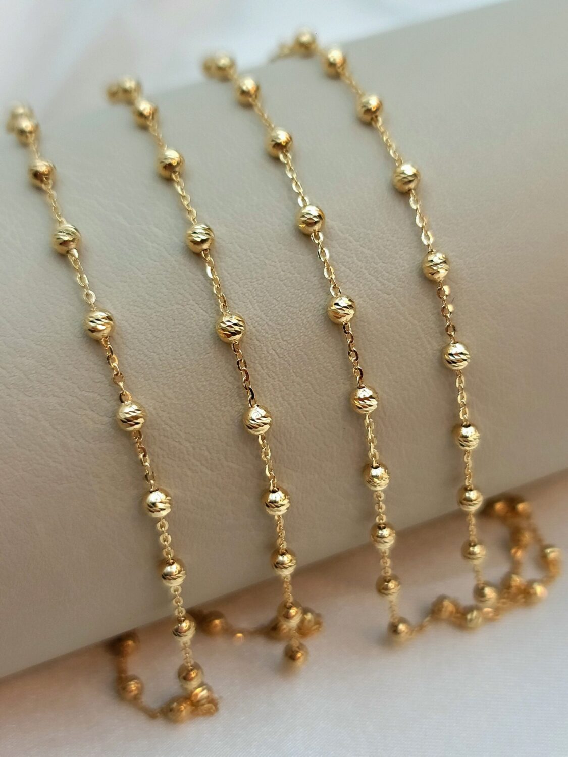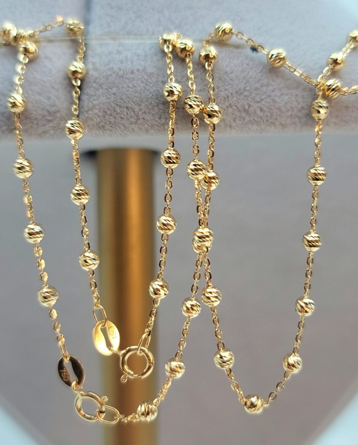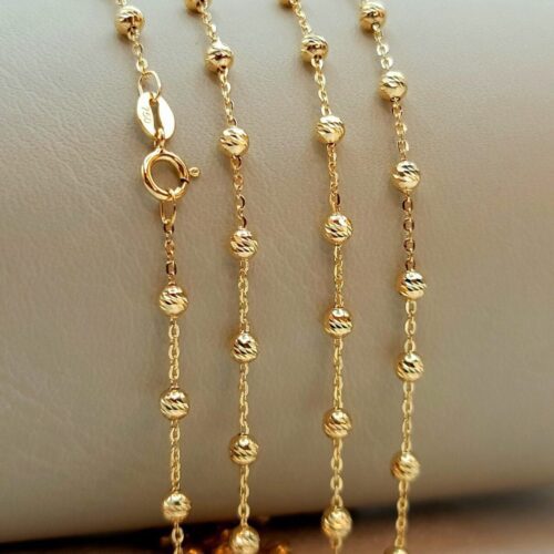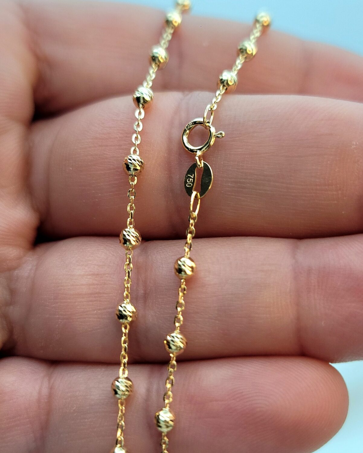 Style: Beaded Cable Chain Necklace – Diamond-cut – 18K Yellow Gold