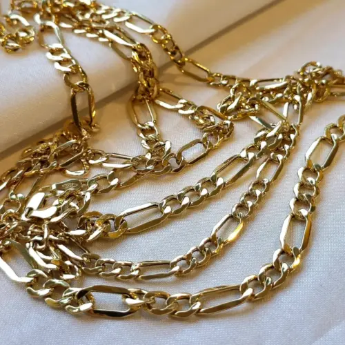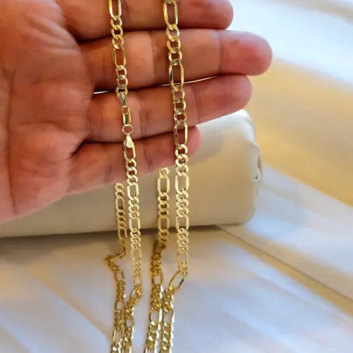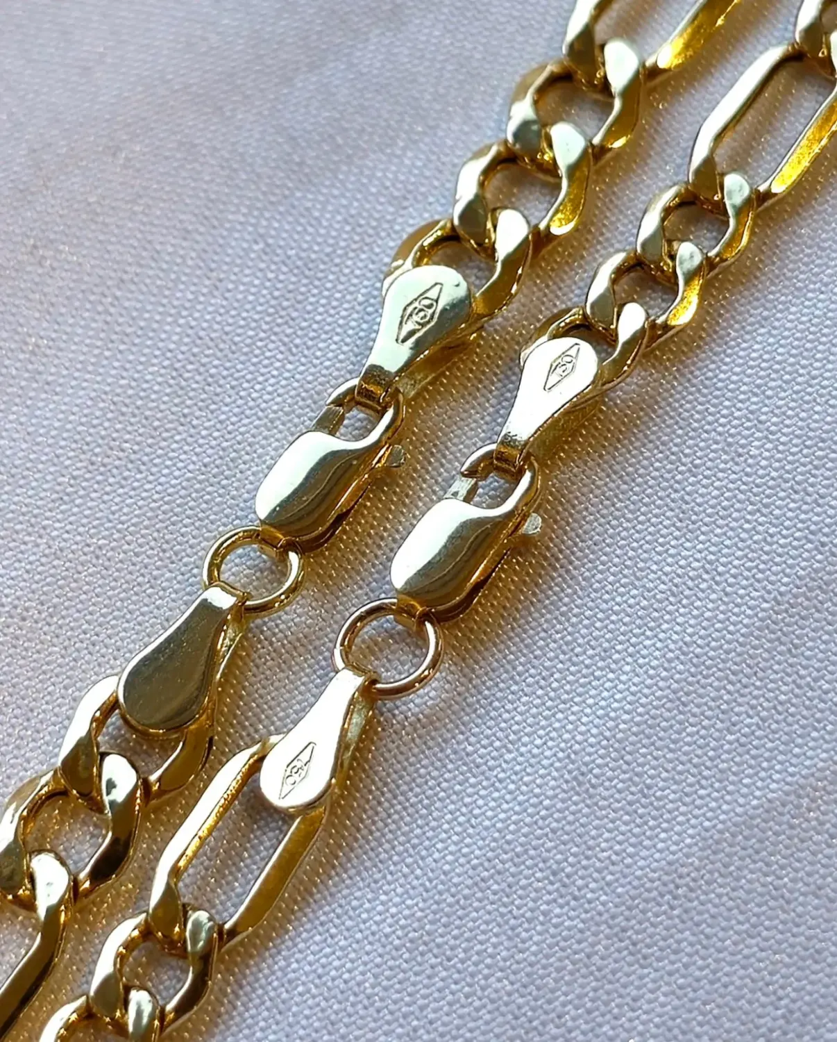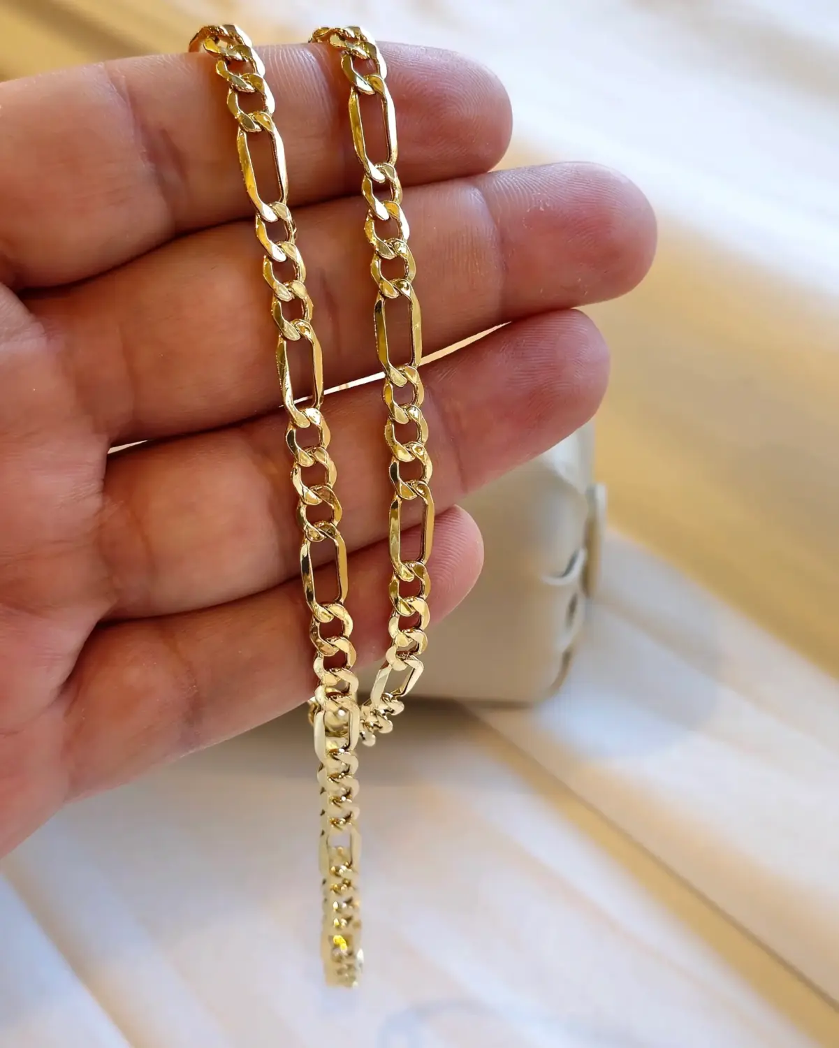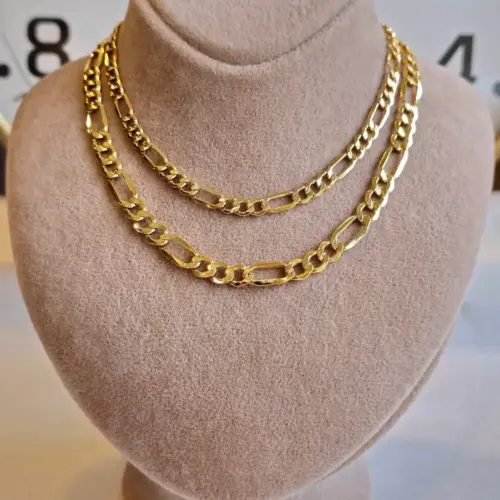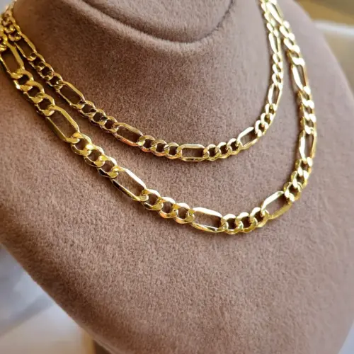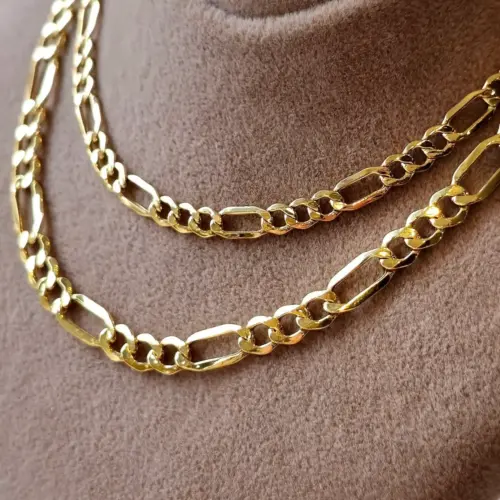 Elevate your style with our expertly handcrafted 18K real gold Figaro chains, combining skilled craftsmanship with luxury. We ensure unparalleled quality and attention to detail, while unbeatable pricing makes this real gold jewelry chain accessible to all. Perfect for everyday use and any occasion, making them a great gift idea for men and women. Christmas, anniversaries, or birthdays gifts! Experience the perfect fusion of style, and value with our premium 18K gold Figaro links chains.
