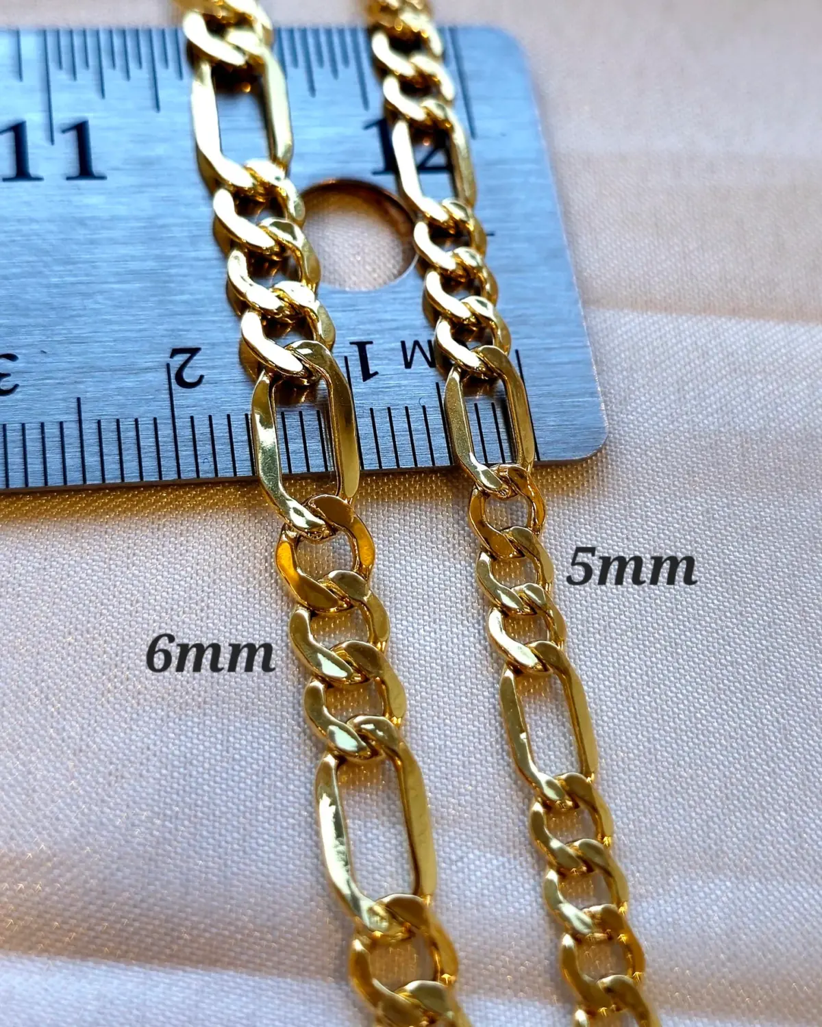 18K Real Gold Figaro Chain Necklace, Real 18K Yellow Gold Figaro Links Chain, 5mm_6mm Thick, Real Gold Chain for Men and Women, Gift!