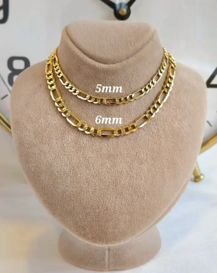 Elevate your style with our expertly handcrafted 18K real gold Figaro chains, combining skilled craftsmanship with luxury. We ensure unparalleled quality and attention to detail, while unbeatable pricing makes this real gold jewelry chain accessible to all. Perfect for everyday use and any occasion, making them a great gift idea for men and women. Christmas, anniversaries, or birthdays gifts! Experience the perfect fusion of style, and value with our premium 18K gold Figaro links chains.