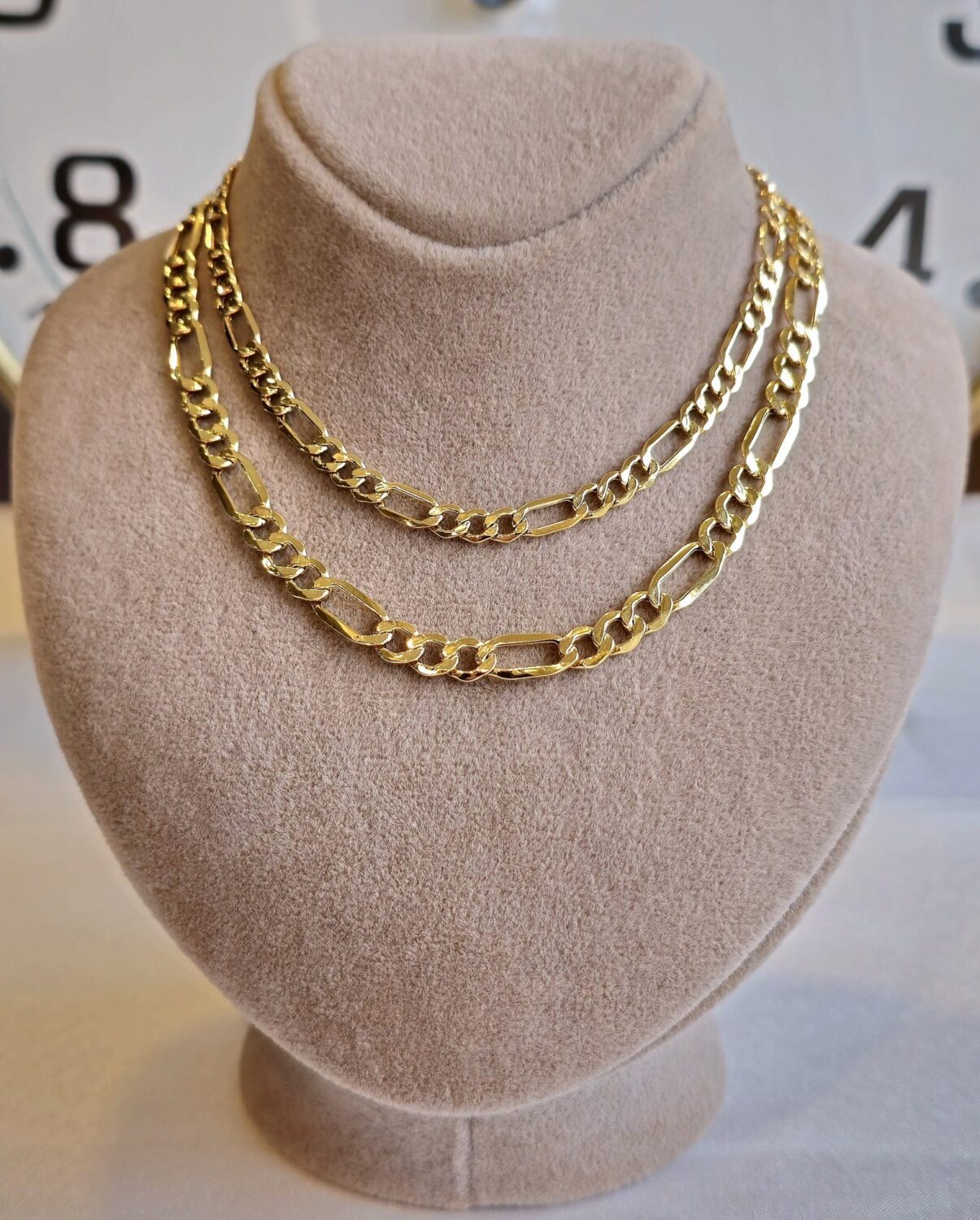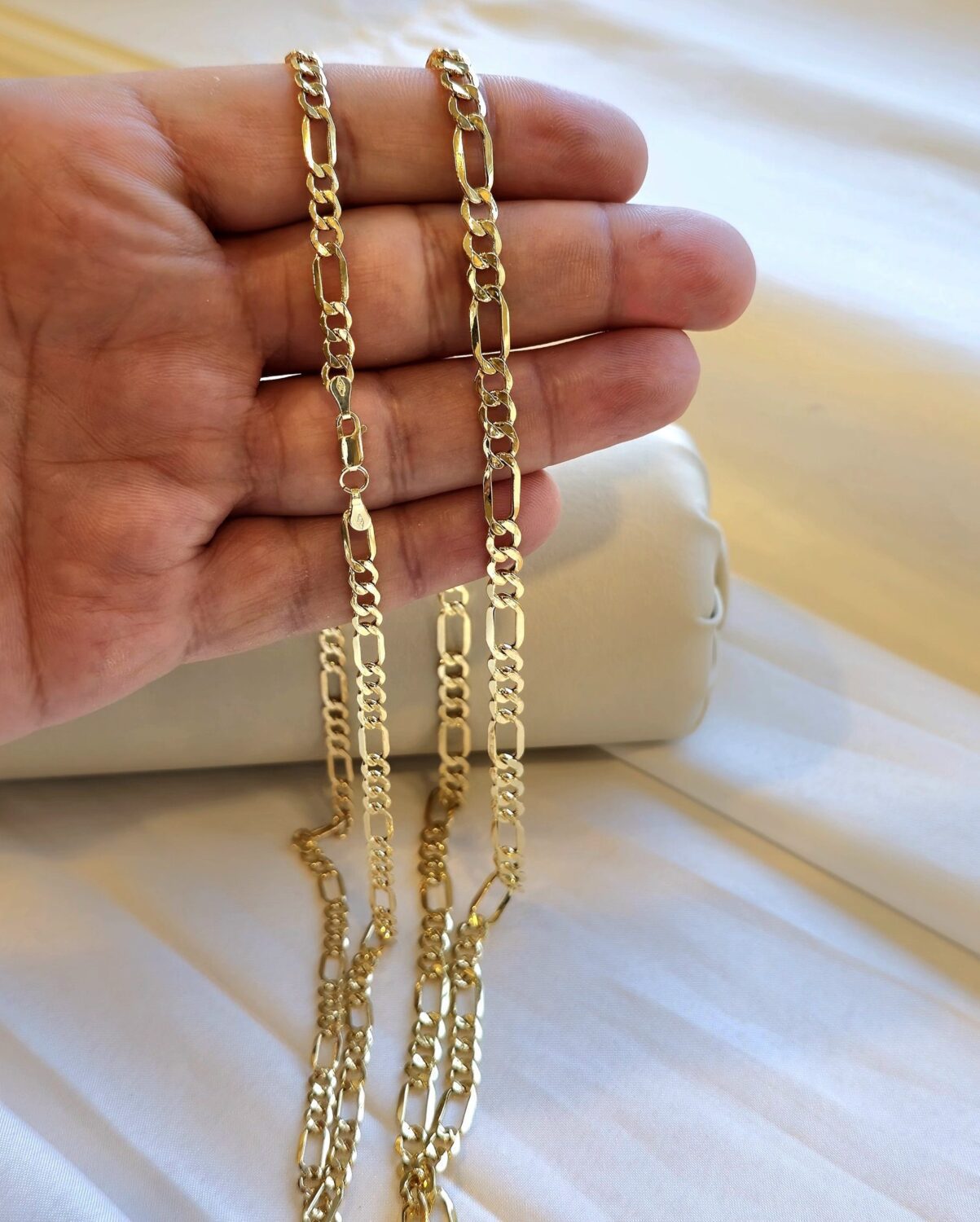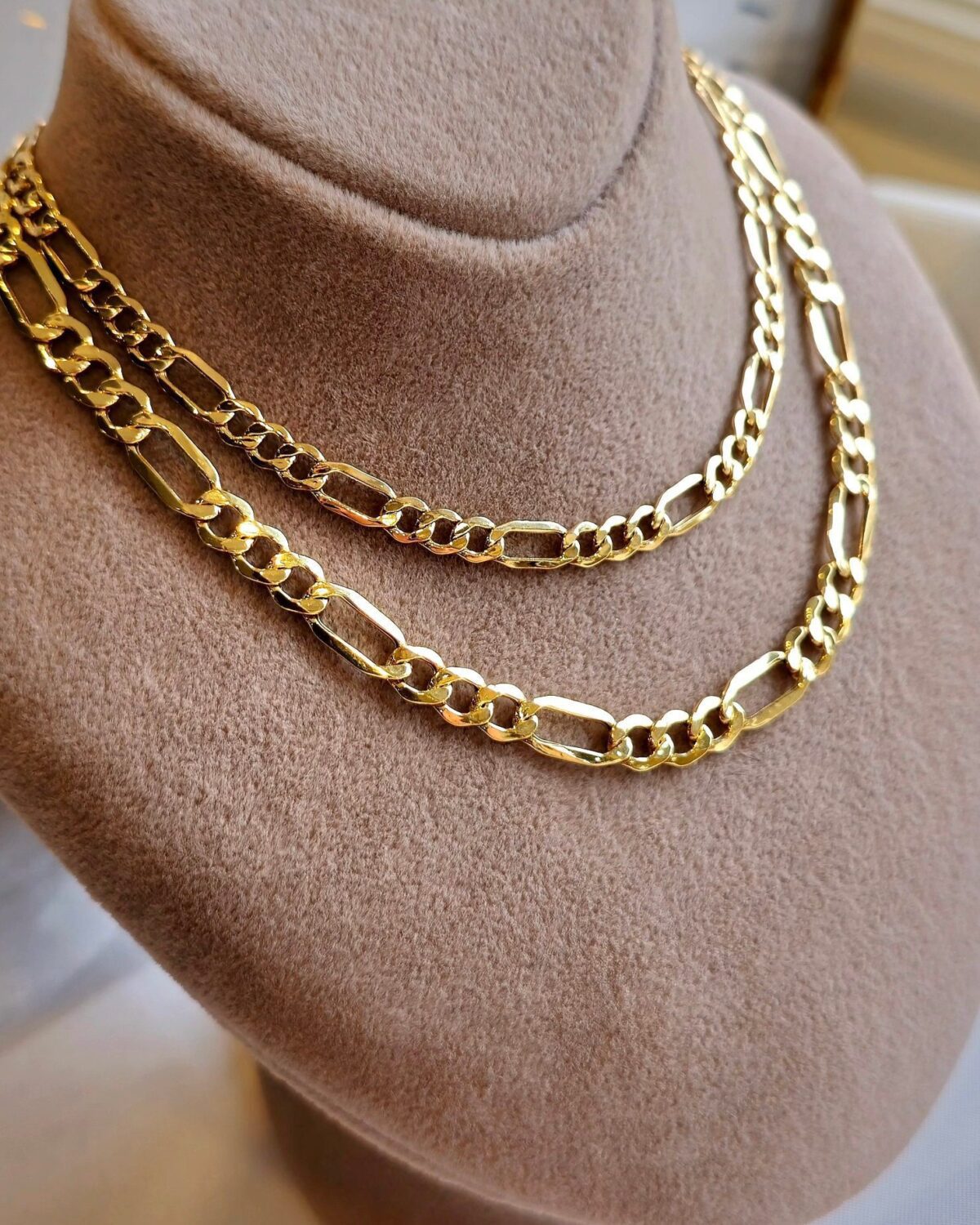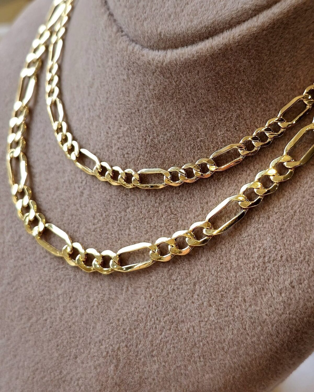 Elevate your style with our expertly handcrafted 18K real gold Figaro chains, combining skilled craftsmanship with luxury. We ensure unparalleled quality and attention to detail, while unbeatable pricing makes this real gold jewelry chain accessible to all. Perfect for everyday use and any occasion, making them a great gift idea for men and women. Christmas, anniversaries, or birthdays gifts! Experience the perfect fusion of style, and value with our premium 18K gold Figaro links chains.