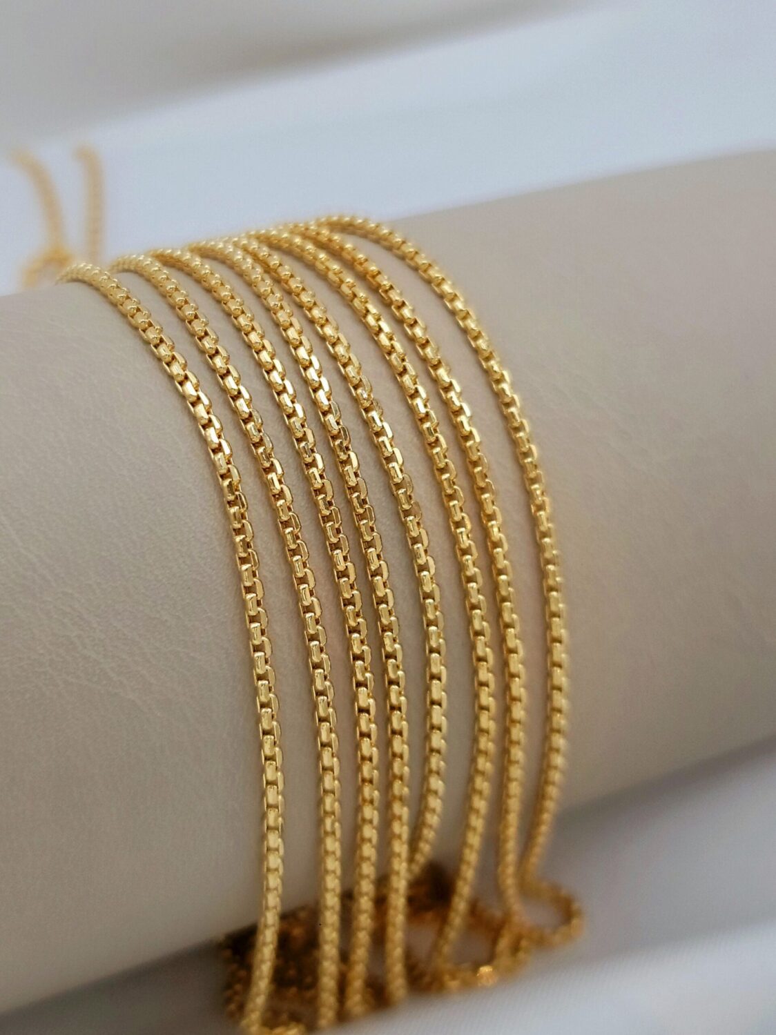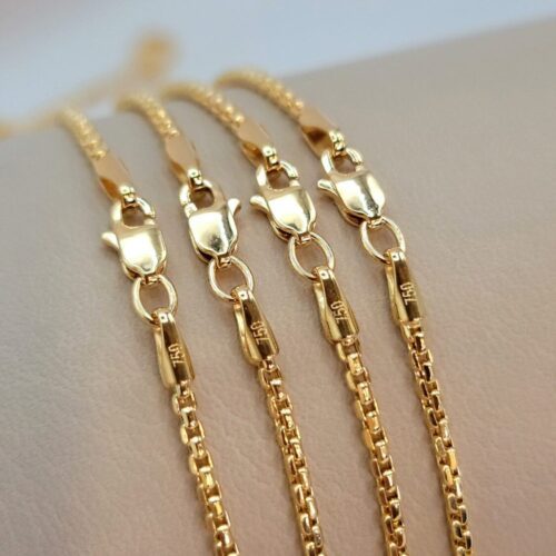 Elevate your style with our expertly handcrafted 18K real gold Box chains, combining exceptional craftsmanship with high-end quality and durability. We ensure unparalleled quality and attention to detail, while offering unbeatable prices that make this real gold chain accessible to all. Strong to hold your favorite pendant, charm or ring. Perfect for everyday use and any occasion, ideal for men and women. A thoughtful gift idea for Christmas, anniversaries, birthdays, and other special milestones. Experience the perfect fusion of style, sophistication, and value with our premium 18K gold Box links chains.