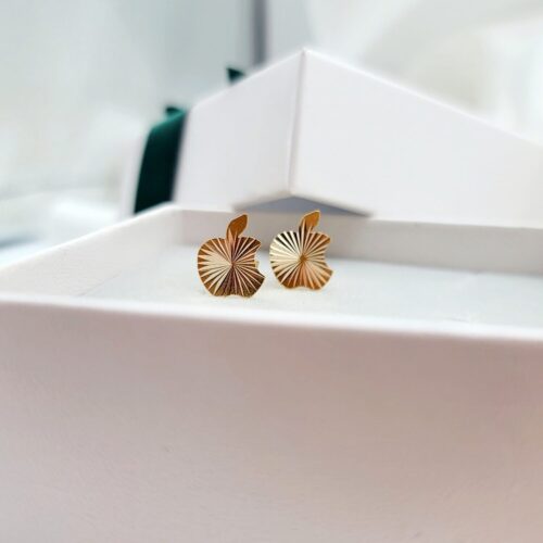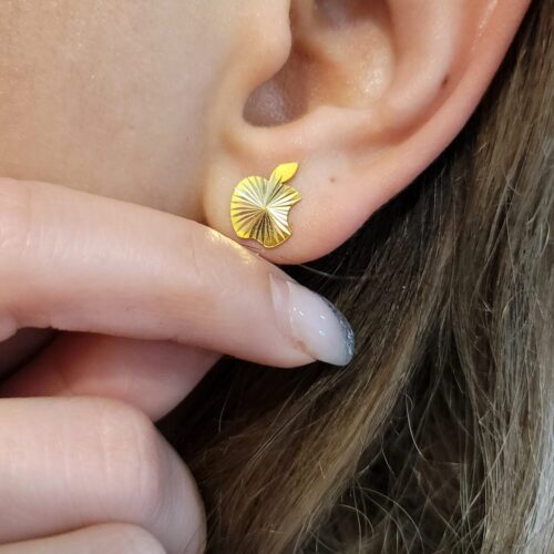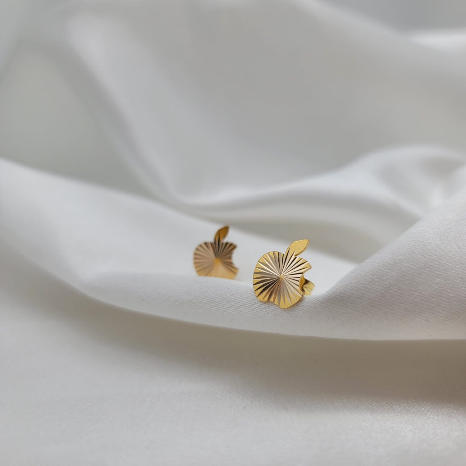 Exclusive 18KT solid gold diamond cut apple earrings. A combination of craftsmanship and beauty. Elegantly handmade and diamond cut with so many details. This perfect jewelry makes you become the center of attention.