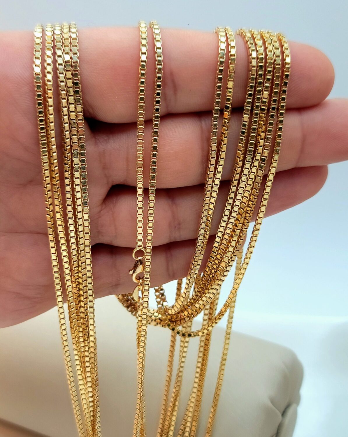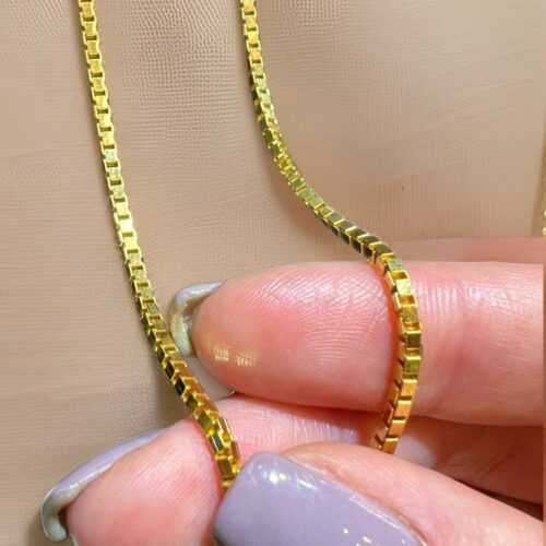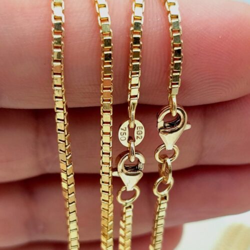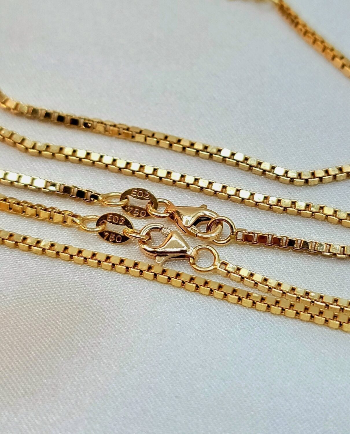 Elevate your style with our expertly handcrafted 18K real gold Box chains, combining skilled craftsmanship with luxury. We ensure unparalleled quality and attention to detail, while offering unbeatable prices that make this real gold jewelry chain accessible to all. Perfect for everyday use and any occasion. Strong to hold your favorite pendant or ring, making them a great gift for men and women. Christmas, anniversaries, or birthdays gifts! Experience the perfect fusion of style, sophistication, and value with our premium 18K gold Box links chains.