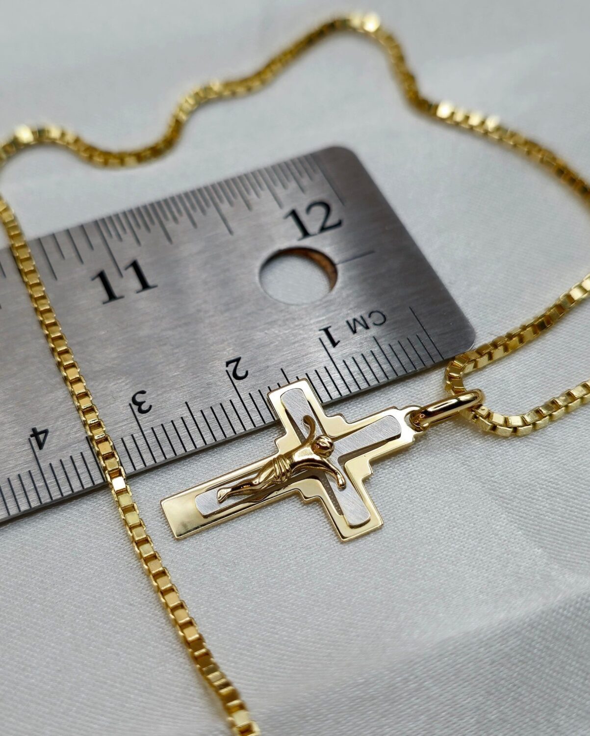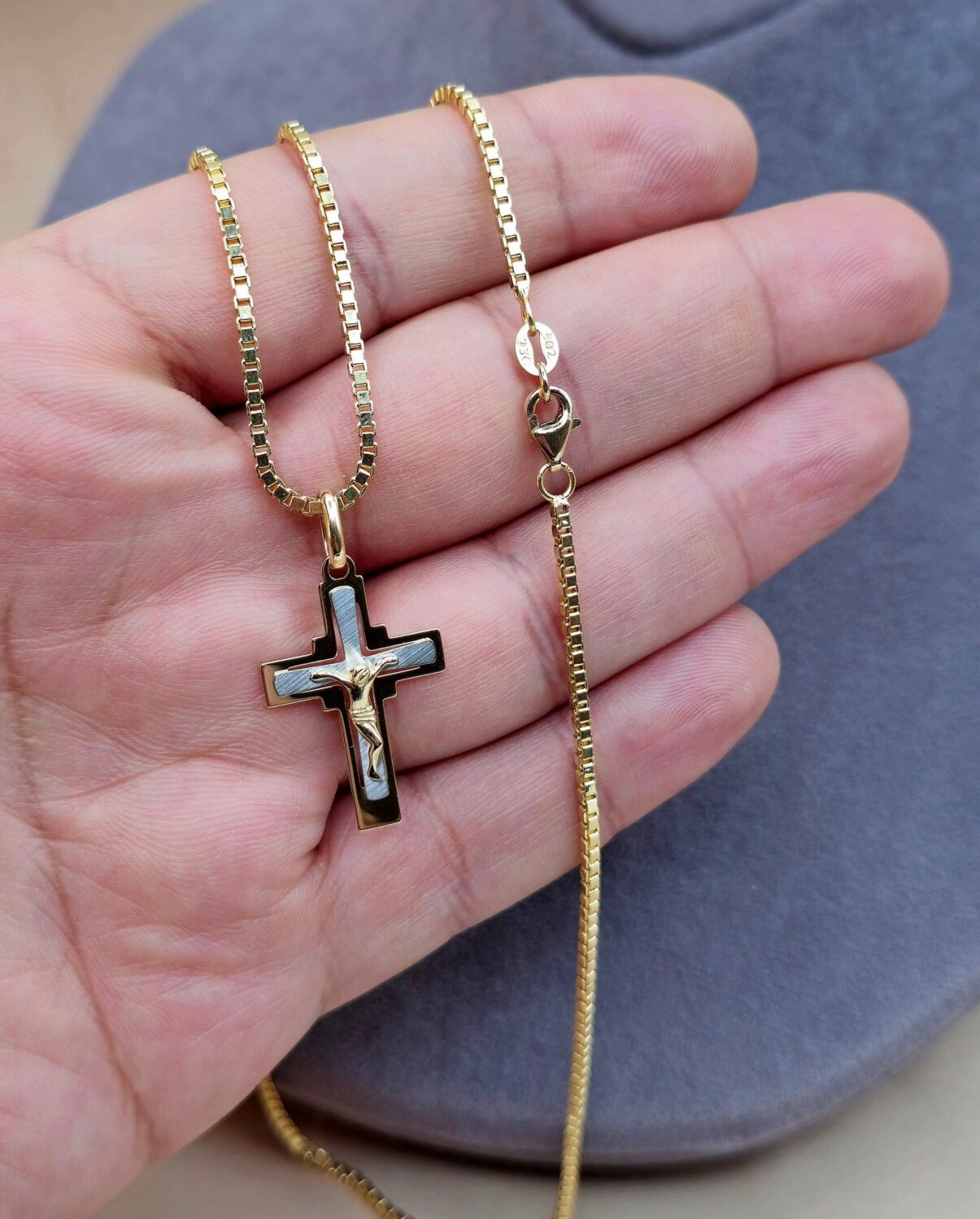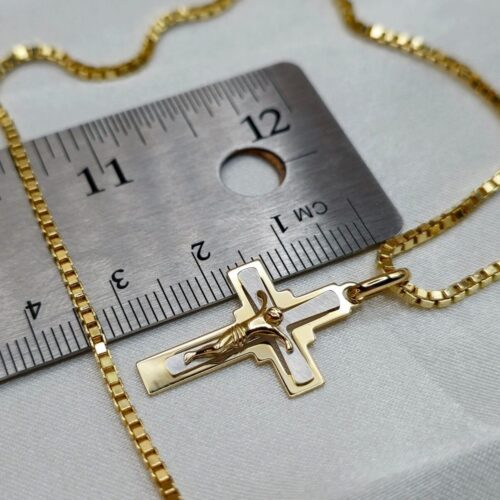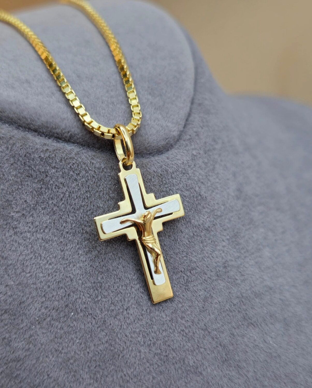 18K Solid Gold Cross Necklace, Real 18K Gold Jesus Cross Necklace for Men/Women, 18K Gold Cross Pendant with Gold Box Chain, Birthday Gifts!