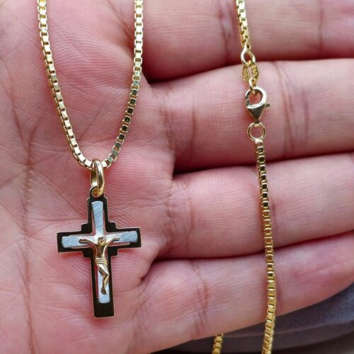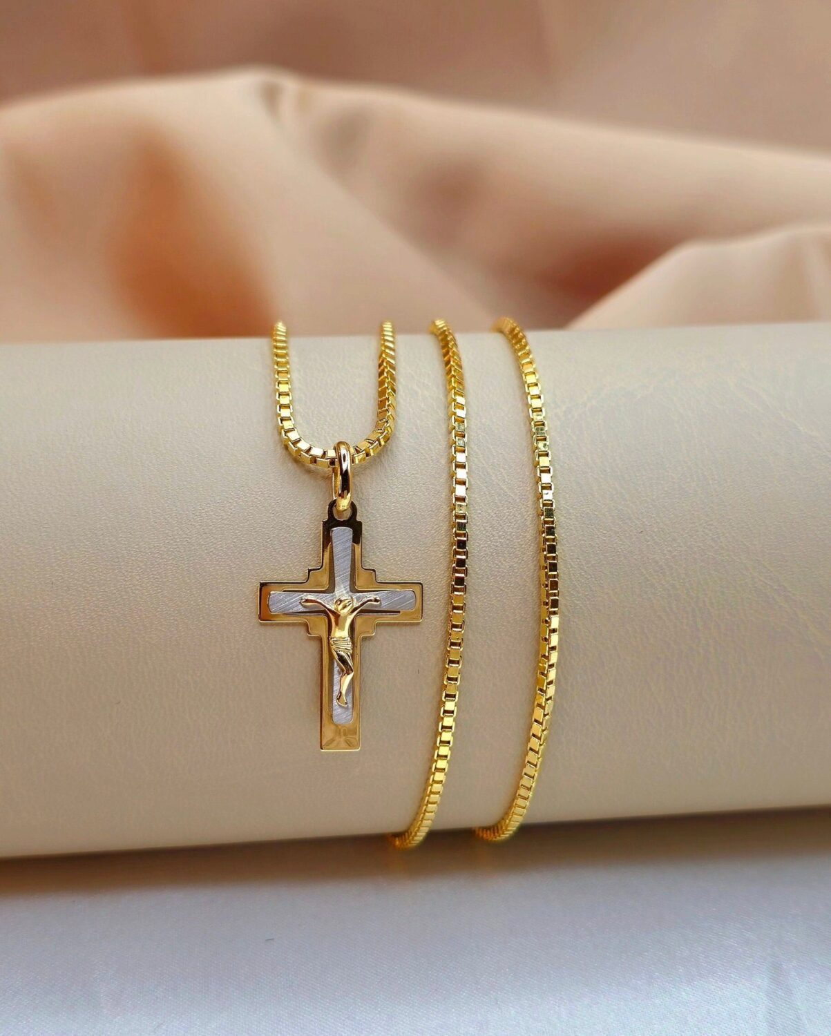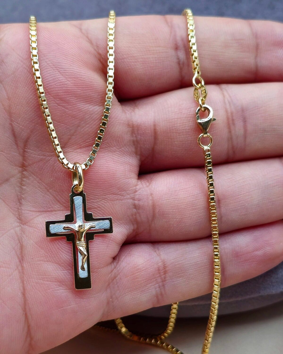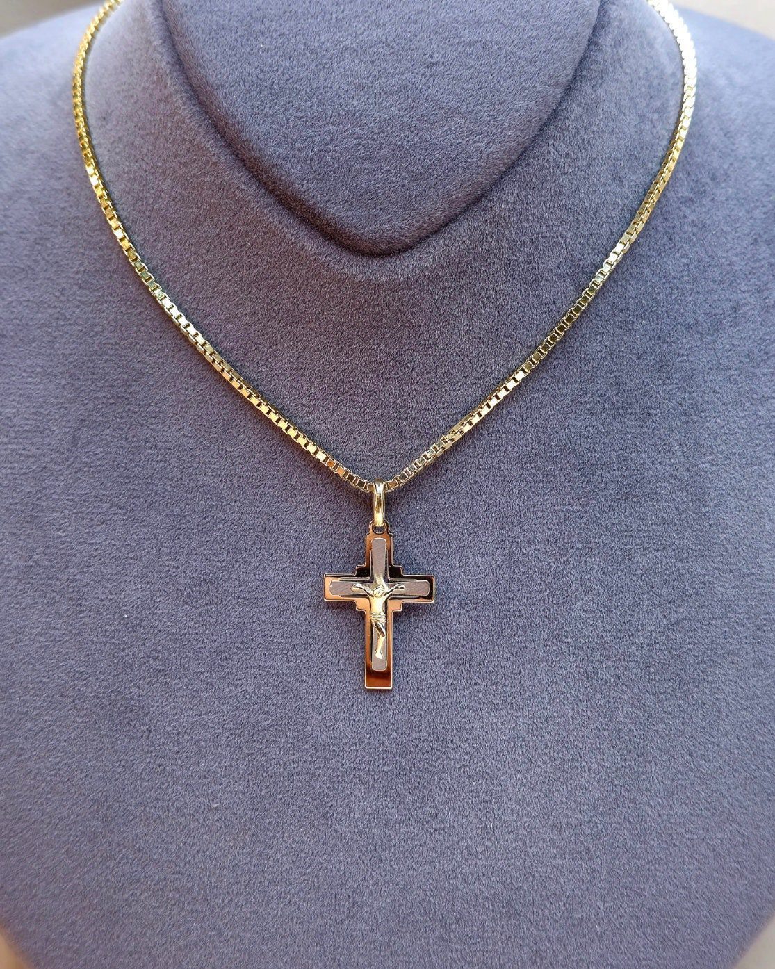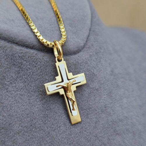 18K Solid Gold Cross Necklace, Real 18K Gold Jesus Cross Necklace for Men/Women, 18K Gold Cross Pendant with Gold Box Chain, Birthday Gifts!