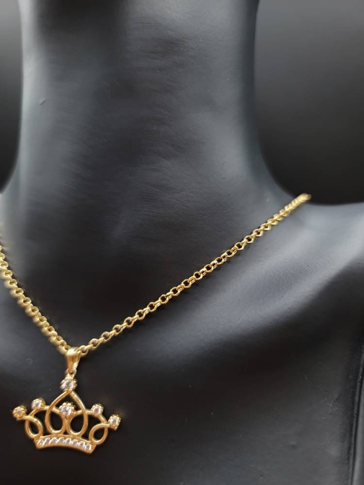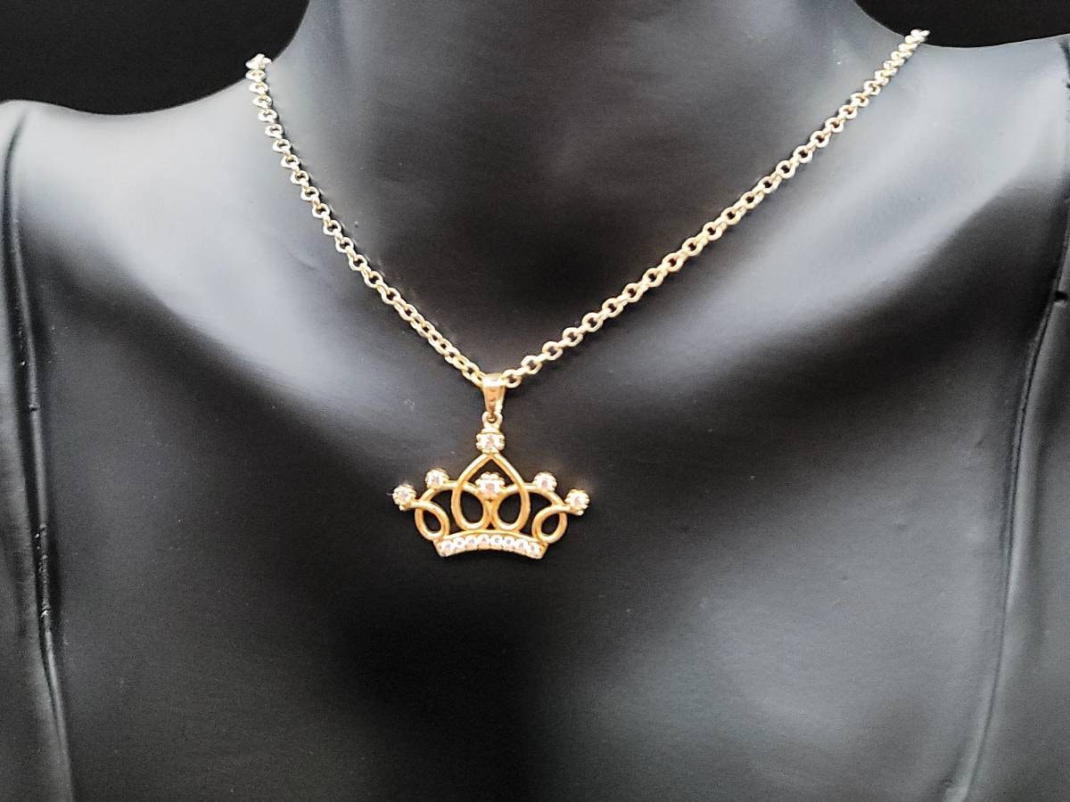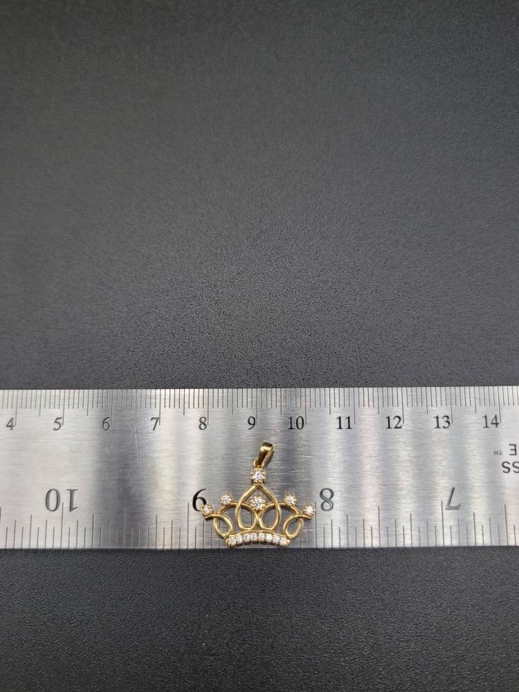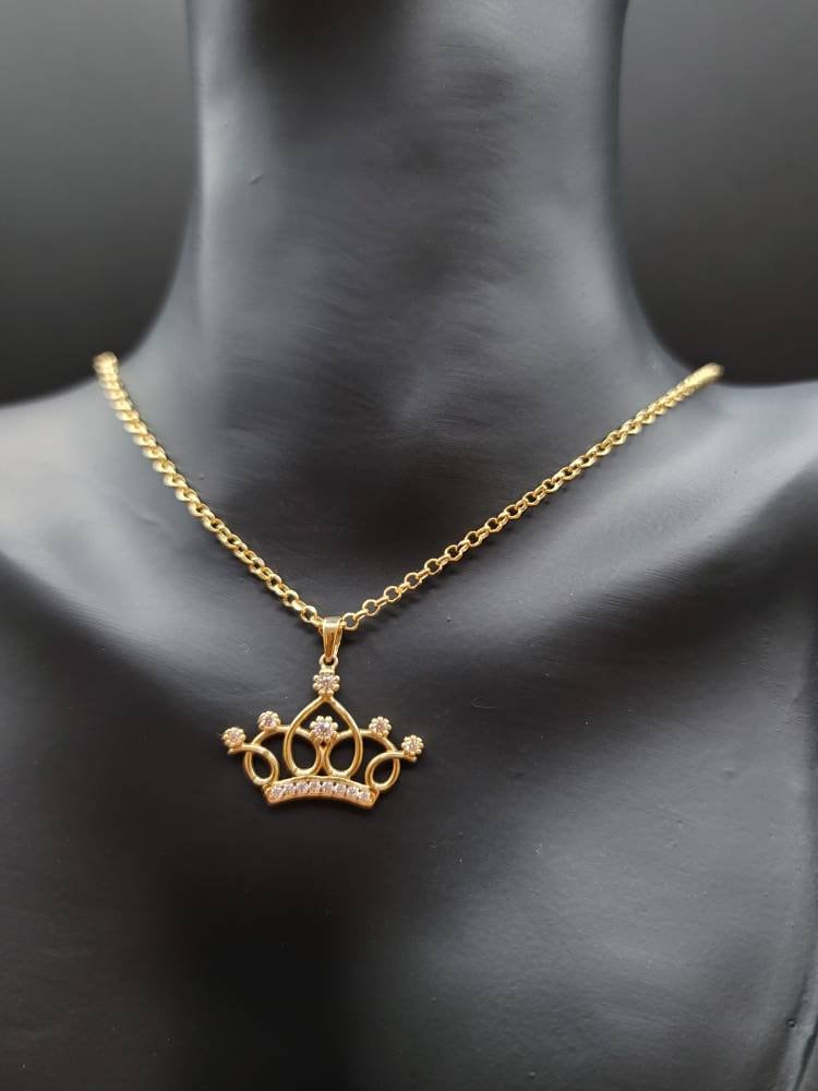 18K Solid Gold Crown Necklace. Flat Cable Chain With The Charming Stone Dimond Cut Pendant. Just Shine On With It! Total Weight: 4.22g